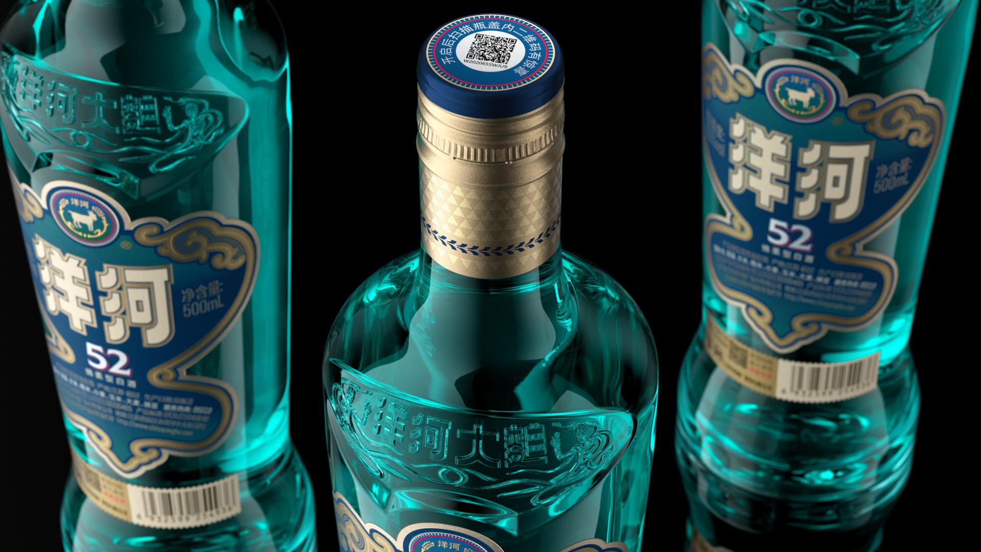 In addition, the bottle features a three-dimensional embossing process that meticulously renders the four characters “Yanghe Daqu.” The typography is refined yet retains its cultural soul, ensuring strong brand recognition. The industrial-grade texture comes vividly to life, allowing consumers to sense the product’s quality and craftsmanship at first glance.