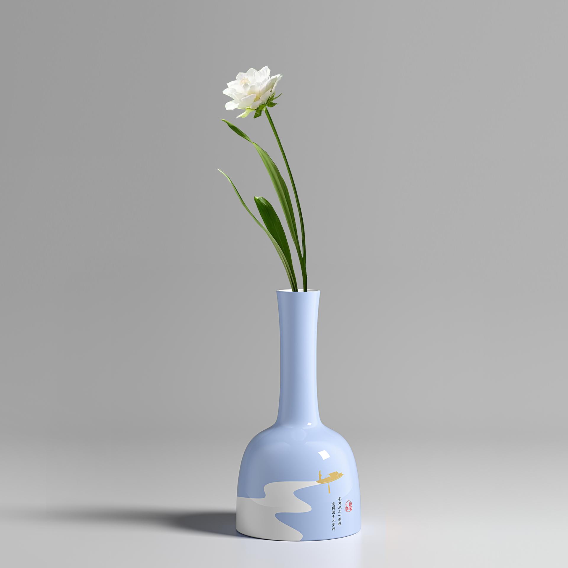 Taking water as the soul: All four models are connected by dynamic water elements such as ripples, reflections, and ripples, echoing the regional characteristics of Shaoxing's "water town wine source"; Each bottle is individually designed with the following elements: Wupeng boat, ancient stone bridge, white crane, lotus flower - each element is a cultural birthmark of Shaoxing, making the product a "memory of the Jiangnan water town that can be taken away", achieving deep binding of regional culture; Color aesthetics: Purple (moon), Blue (porcelain), White (cloud), Pink (lotus); The light macaron color scheme conveys the elegant temperament of Shaoxing. Each bottle is matched with two ancient poems, complementing each other and creating a sensory experience of "poetry in the bottle, painting in poetry". The overall design breaks through conventional wine vessels, imitating the neck and wide belly design of Song porcelain vases, allowing empty bottles to naturally transform into flower vessels. When drinking, one can read poetry and appreciate patterns, and when arranging flowers, one can reproduce the reflection of water waves, practicing the sustainable philosophy of "finishing wine and creating art", achieving secondary utilization, and concretizing environmental value.