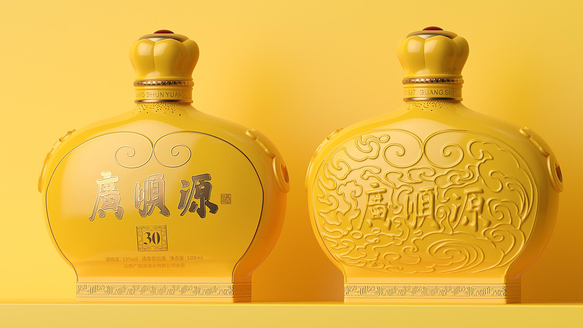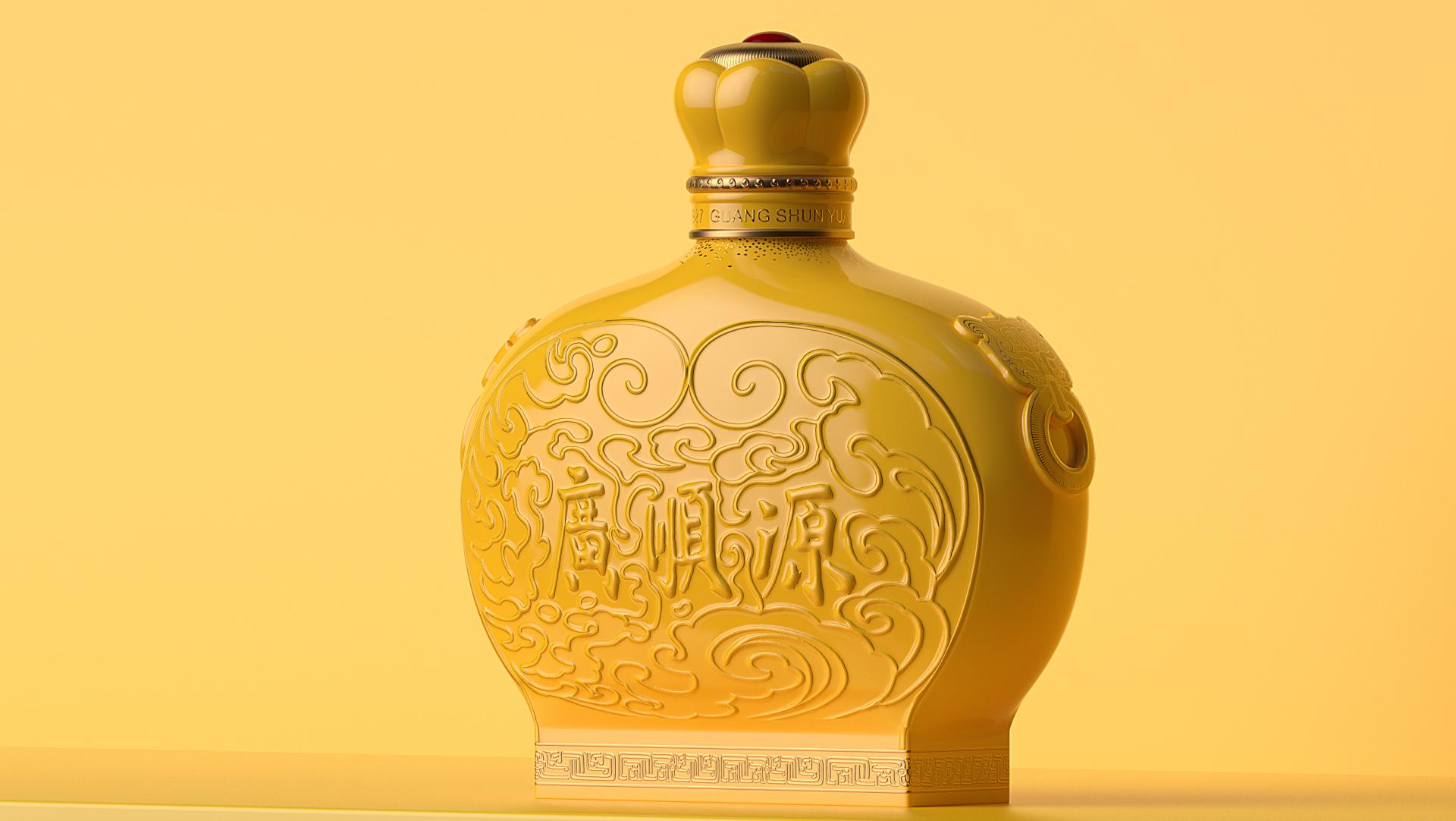 Guangshun Yuan Liquor, rooted in the "wine town" of Wenshui, Shanxi, is a century old brand. Its design aims to deeply rejuvenate the brand, inspired by the Han Dynasty bronze garlic pot from 2000 years ago in China, to create a powerful visual symbol. Garlic Crown Cover "- The top is inlaid with a brilliant ruby, resembling a noble crown, which not only strengthens the brand's original genes, but also symbolizes power, nobility, and the auspicious sign of" good luck at the forefront ". The bottle body is full and round in shape, and its smooth contour cleverly blends with the Eastern Han Ruyi pattern, forming a unique and exclusive brand image asset. The majestic Han Dynasty dragon patterns, circular patterns, and imperial jade patterns vividly showcase the cultural charm of the Han Dynasty; On the side, the mysterious Taotie pattern is presented in three-dimensional relief gold craftsmanship, conveying the meaning of attracting wealth, warding off evil, and safeguarding wealth and power; On the back, water and cloud patterns blend together in relief, enveloping the product name 'Guangshun Yuan'. The bottom of the bottle is engraved with seals and jade patterns, and the front is inscribed with calligraphy names, conveying the imprint of time and cultural heritage. The overall design reconstructs the treasures of the Han Dynasty with modern aesthetics, creating a contemporary wine vessel model with a strong Eastern charm through three super symbols: garlic caps, auspicious bottles, and royal decorations.