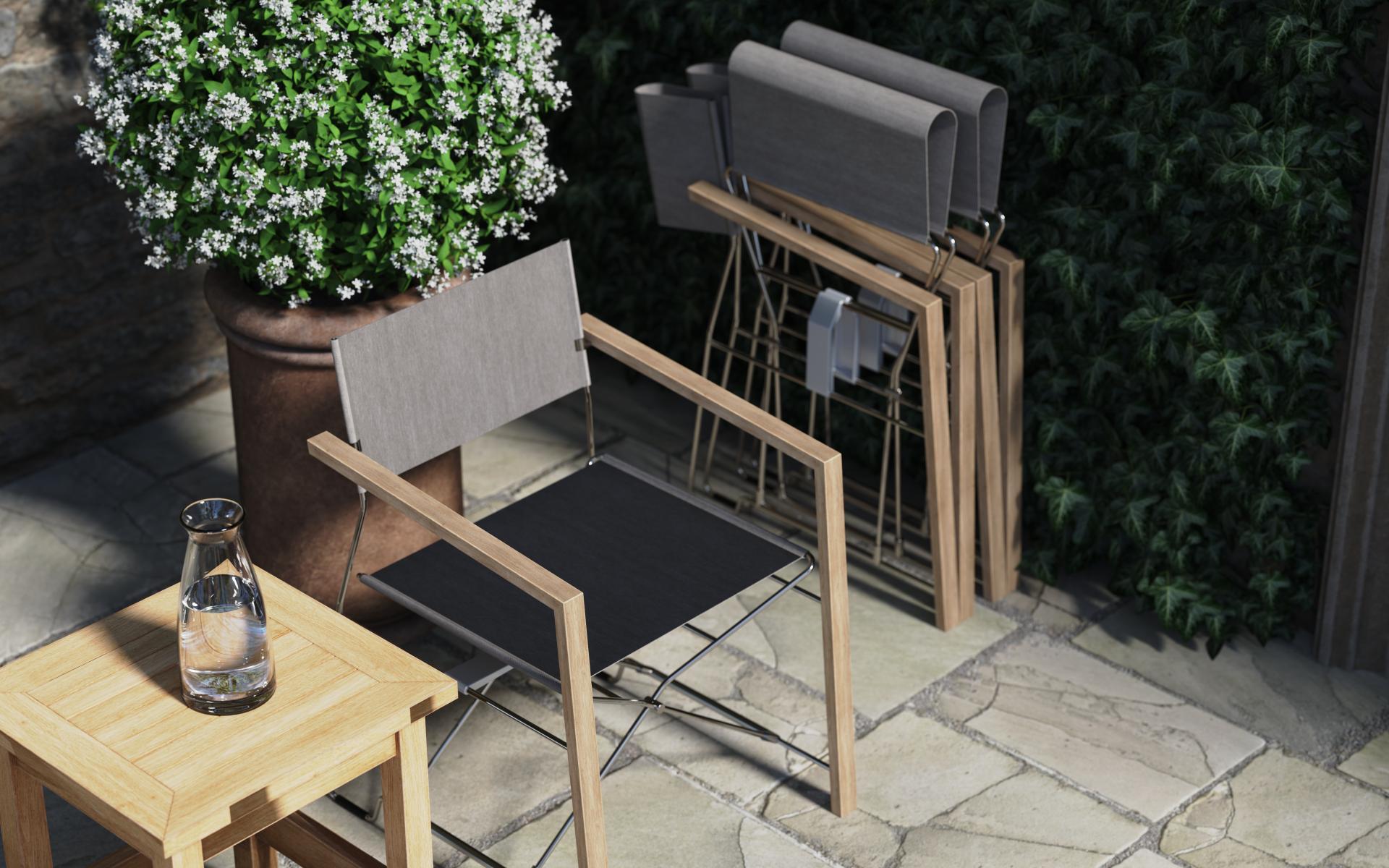 For over a millennium, the classic director's chair has remained steadfast in design and purpose. The DirecTi Chair reinvents the classic...for today. Warm teak provides a structural foundation and tactile comfort, while aerospace-grade titanium rods create an impossibly light yet strong folding mechanism. Titanium's natural corrosion resistance ensures the chair adapts seamlessly to any environment, from poolside to studio. This thoughtful pairing results in a chair that feels both grounded and weightless.
