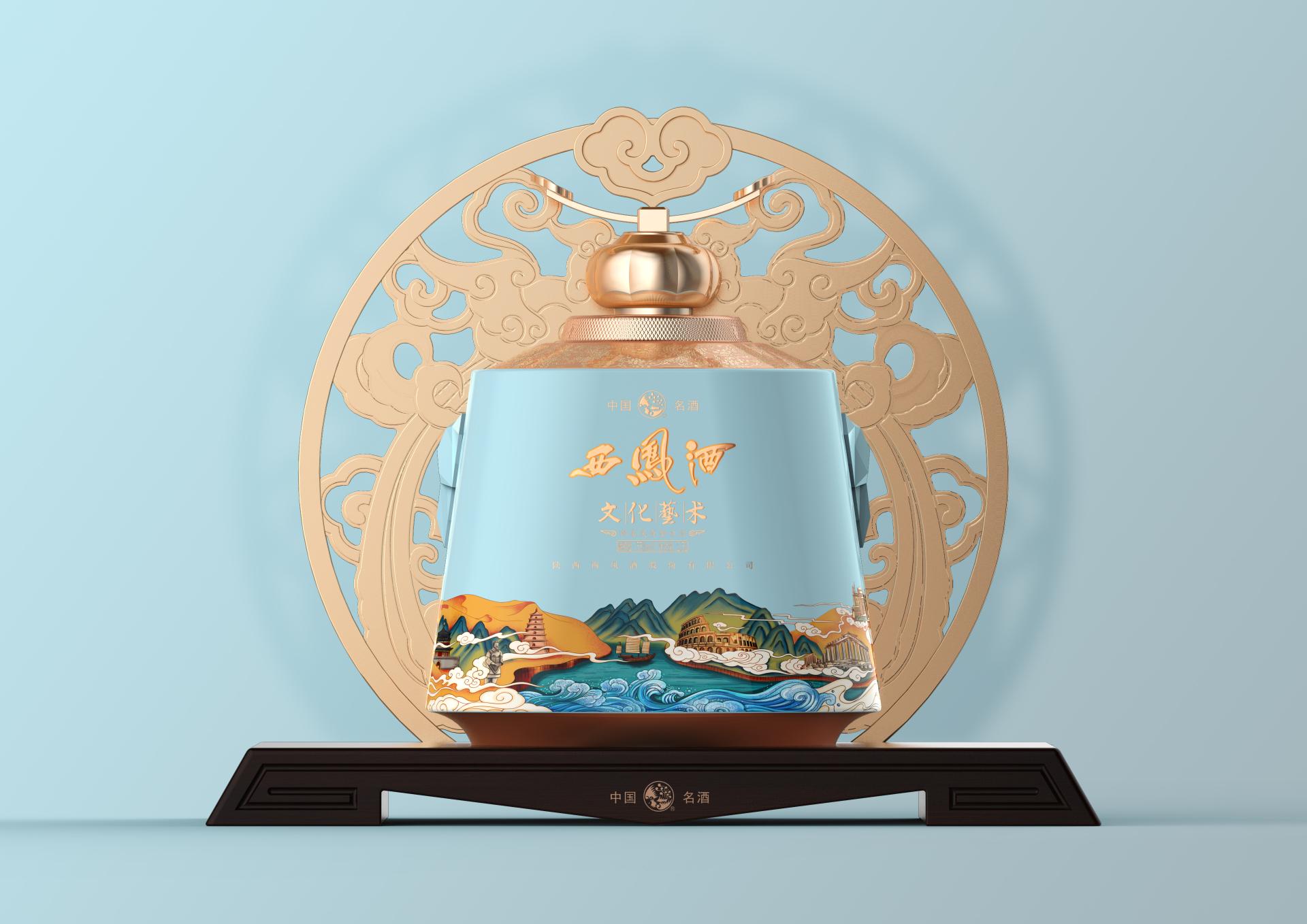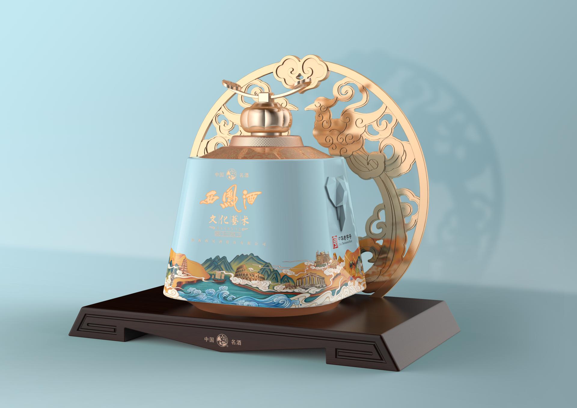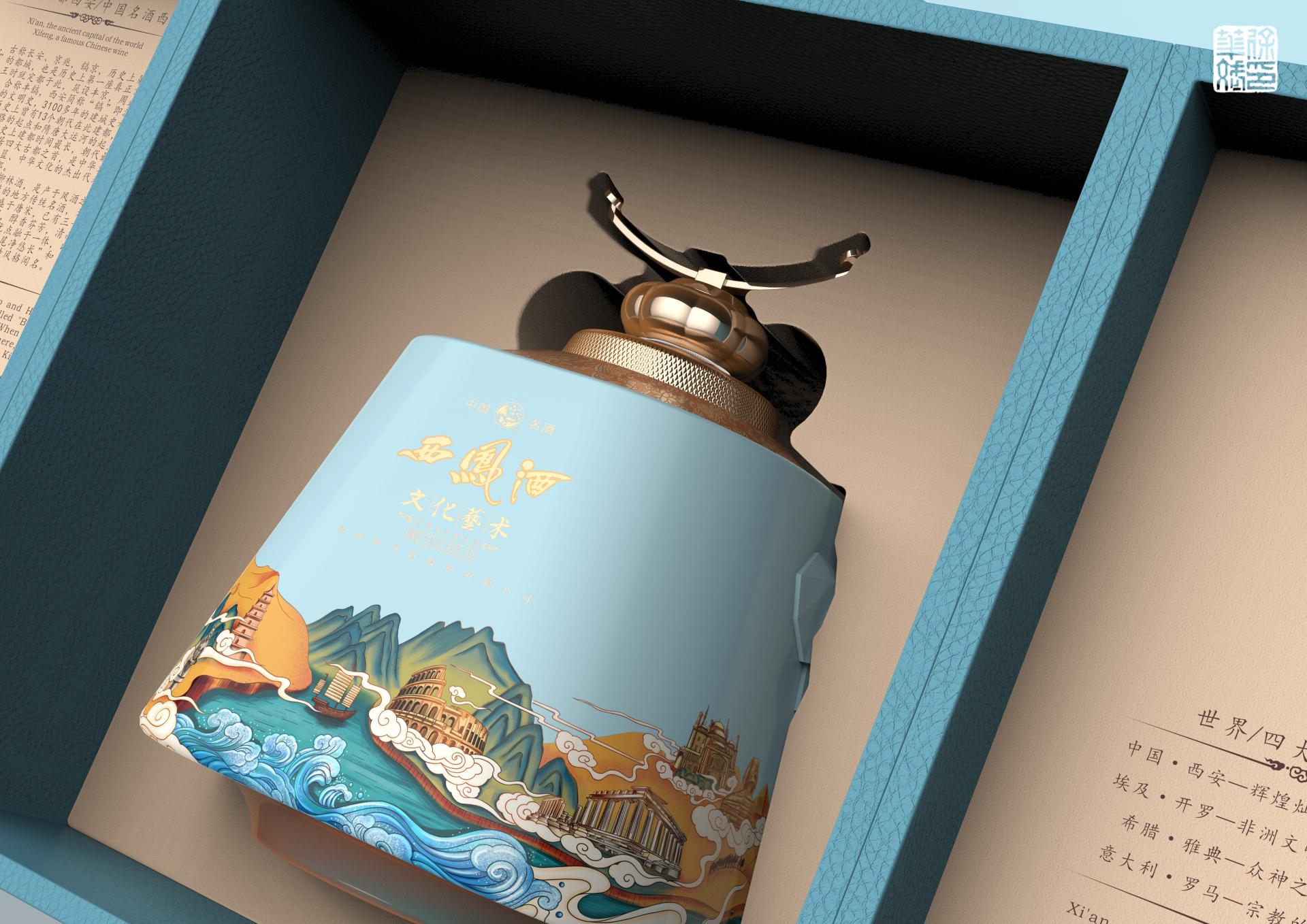 The bottle resembles the upright sitting posture of figures during royal banquets in the Qin and Han dynasties; the cap brings to mind the elegant ‘yunbin’ (soft and fluffy hair like clouds on both sides of a woman’s temples) of queens in the Qin and Han dynasties, featuring a unique curved top with both sides slightly upturned—conveying royal solemnity and grandeur. The body is depicted with typical elements from four ancient capitals of civilization—Xi’an, Rome, Cairo, and Athens—including the Terracotta Warriors and the Roman Colosseum, vividly demonstrating the significant historical role of Chang’an as a hub connecting the world through the ancient Silk Road. The double-door outer box ingeniously echoes the gate of the Weiyang Palace. This makes users feel as if opening the door to a golden age when they open the box, creating a majestic atmosphere and paying homage to drinking rituals in the Qin and Han dynasties. Moreover, the exquisite phoenix relief applied to the box is derived from the patterns on the screen in the Weiyang Palace, highlighting Xifeng Liquor’s premium quality and upscale position.