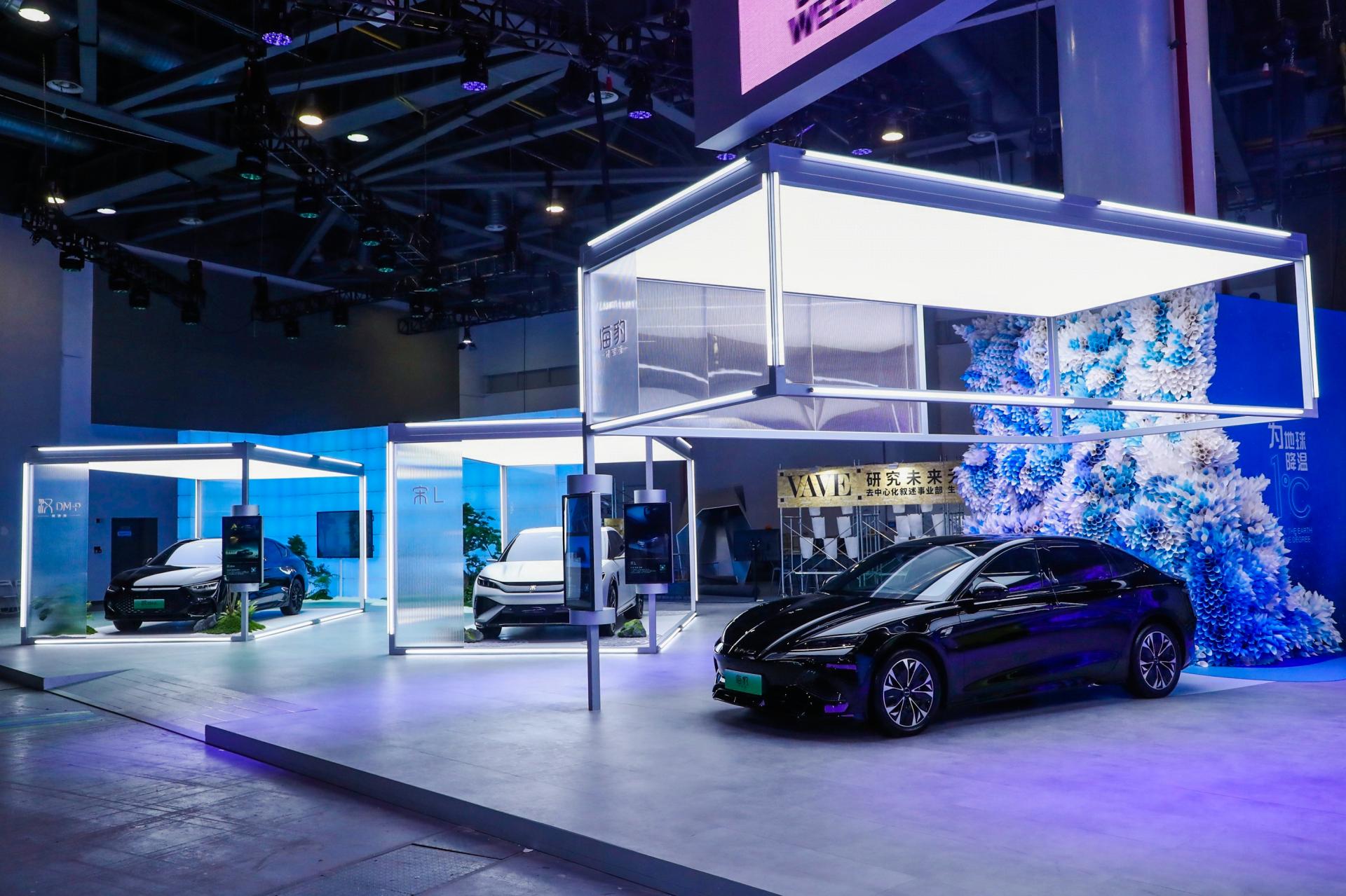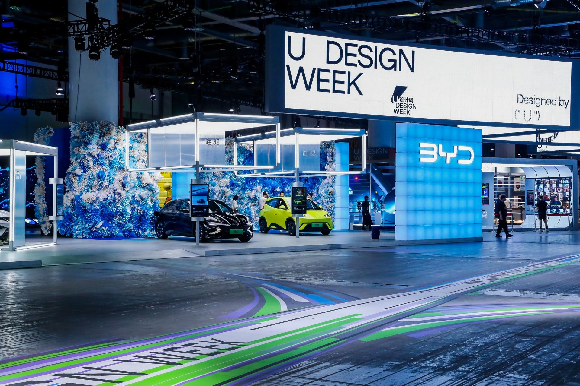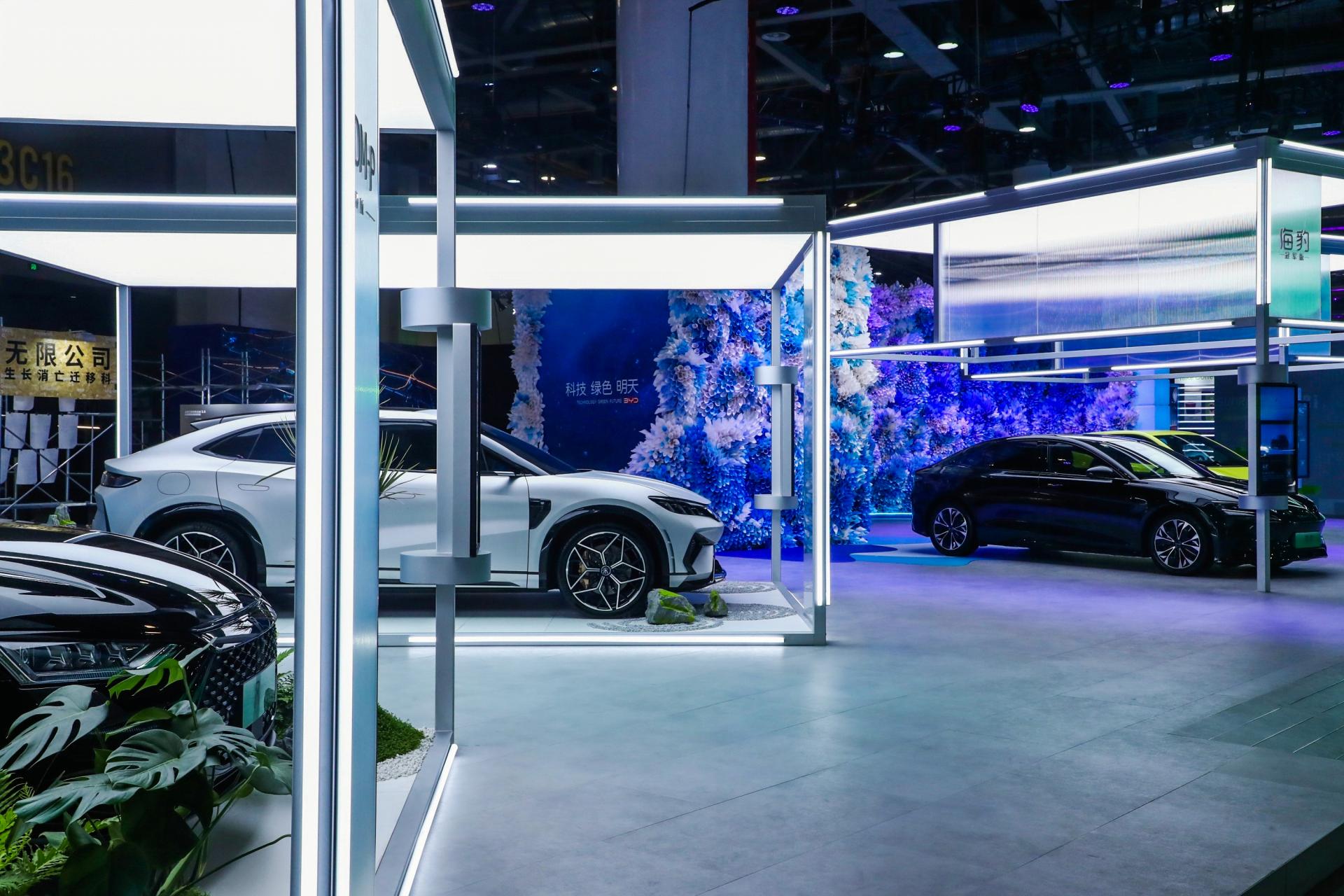 This exhibition space, designed for BYD under the theme “Future Samples, Artistry of Mountains and Seas,” blends technology, art, and culture. Using origami and ice bricks, it creates a pure, crystalline vision of the future, emphasizing low-carbon and sustainable values. Four “future samples” combine technology and art, forming a spatial narrative of mountains and seas. The design immerses visitors in the aesthetic and emotional impact of technology, sparking new visions of future lifestyles. The exhibition adopts a dual-axis layout, creating a dialogue between mountains and seas. The Dynasty series, centered on “landscape artistry + technological mountains and rivers,” features display points for the Han and Song L models. The Ocean series, incorporating “origami art + ice brick spaces,” revolves around the Seal and Dolphin display areas. The visitor flow integrates a consultation desk, interactive gene installations, and eight check-in points, forming a seamless, immersive experience with a continuous and varied circulation path. Breaking from traditional car exhibition models, the design redefines the brand-user relationship through an artistic spatial language. Nine thousand origami pieces and 320 ice bricks create a striking installation landscape, enhanced by AI digital simulations and interactive ice screens, delivering a unique multi-sensory experience. The approach shifts the focus from “product-centric” to “experience-centric,” using artistic storytelling and digital interaction to deepen emotional resonance and strengthen brand recall. The design uses lightweight, recyclable materials. The origami art zone employs recyclable paper, and the 320 ice brick installations are reusable, symbolizing a pure future. Digital screens and AI simulations reduce printed materials, minimizing resource consumption. The setup prioritizes detachable structures to meet short-term exhibition needs while lowering the carbon footprint. Through subtle advocacy, the design conveys the low-carbon message of “cooling the Earth by 1°C,” aligning with sustainability goals. The lighting design aligns with the brand’s vision, reflecting the “Artistry of Mountains and Seas” theme. For the Dynasty Series’ “Technological Landscapes,” sharp, cool-toned lights highlight the grandeur of mountains and technological strength. In the Ocean Series’ “Origami Art,” soft, diffused lighting evokes the sea’s vastness and purity, filtering through 90,000 origami pieces for a shimmering, dreamlike effect.