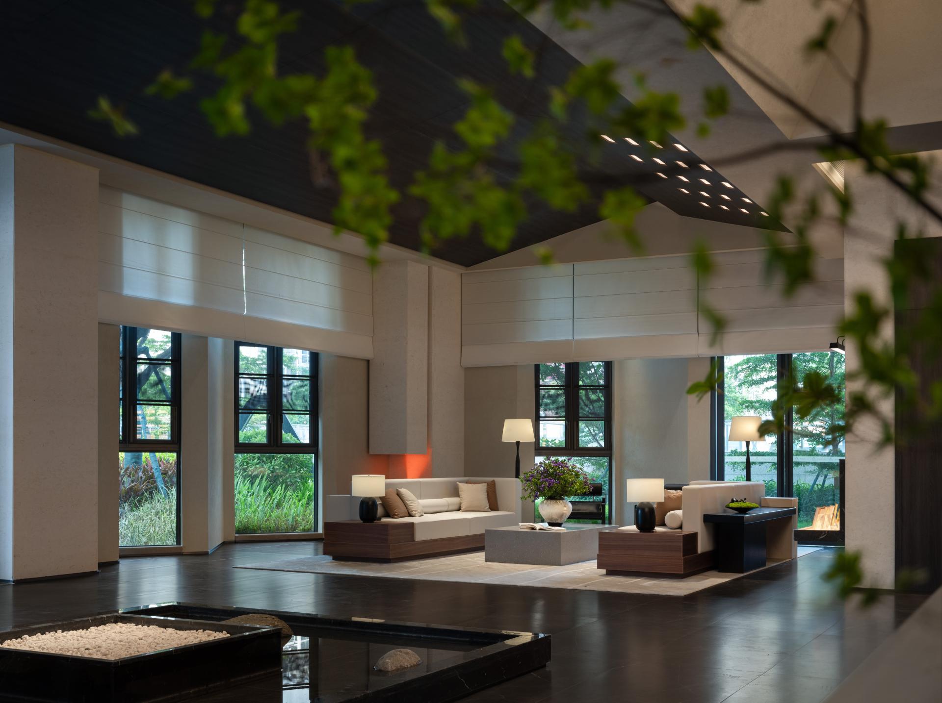 The design is anchored on four core principles: humanity, ecology, comfort, and art. Rooted in Fuzhou’s rich cultural heritage, it integrates modern minimalist design with tactile warmth and visual poetry. The lobby features the “Bamboo House” library, where customized book walls engraved with Fuzhou lacquer patterns interact with immersive AR photography experiences, while a layered scent system blends jasmine, white tea, and cedar to evoke local memory and serenity. Public and semi-public spaces are designed to foster social interaction and cultural discovery, allowing guests to experience the city’s rhythm within the hotel.
