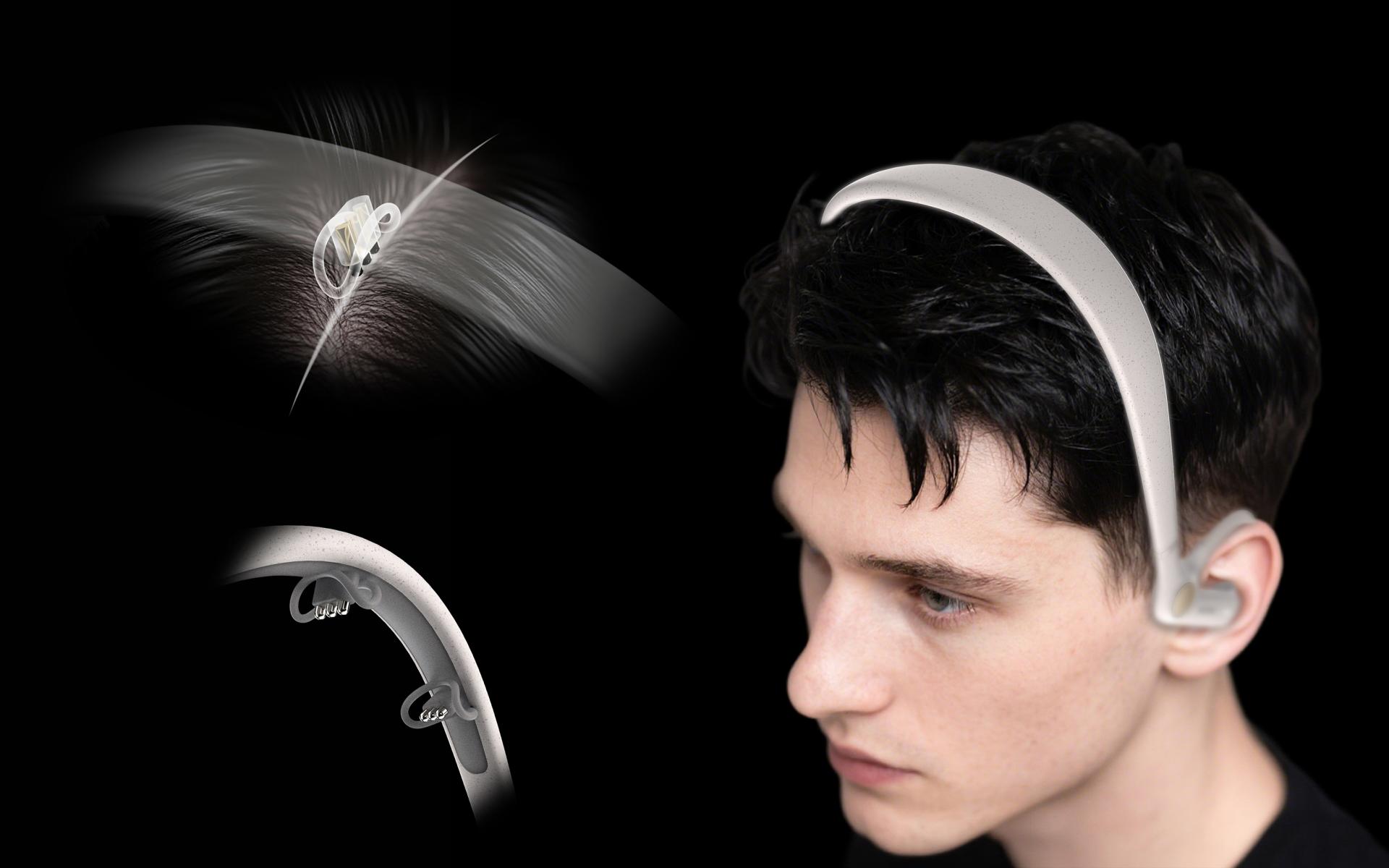 Moosic embodies seamless wearability with thoughtful designs: Its unique electrodes effortlessly penetrate hair for stable contact, while cushioned zones reduce pressure and a floating headband minimizes hair indentations—making technology vanish into daily life. The touch-sensitive button serves as both a visual centerpiece and a canvas for personalized hand-drawn patterns or natural textures, transforming the device into an emotional art piece. Featuring quick-release electrodes for adjustable sizing, it masterfully blends practicality with convenience.