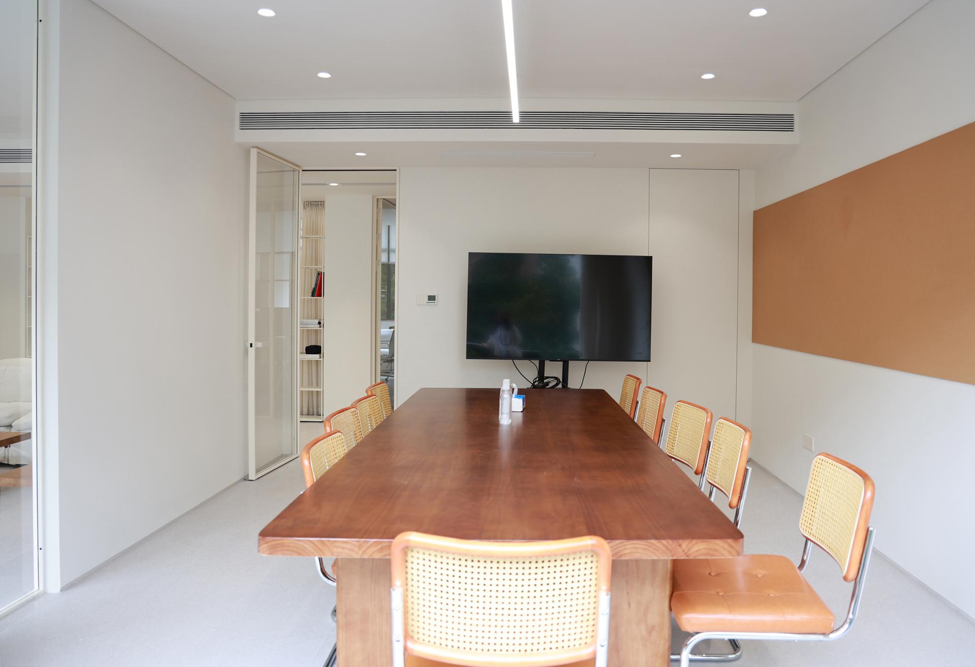 Adaptable Infrastructure: Custom movable perforated panels merge display and storage functions with modular furniture, enabling flexible, professional-yet-artistic composite spaces.