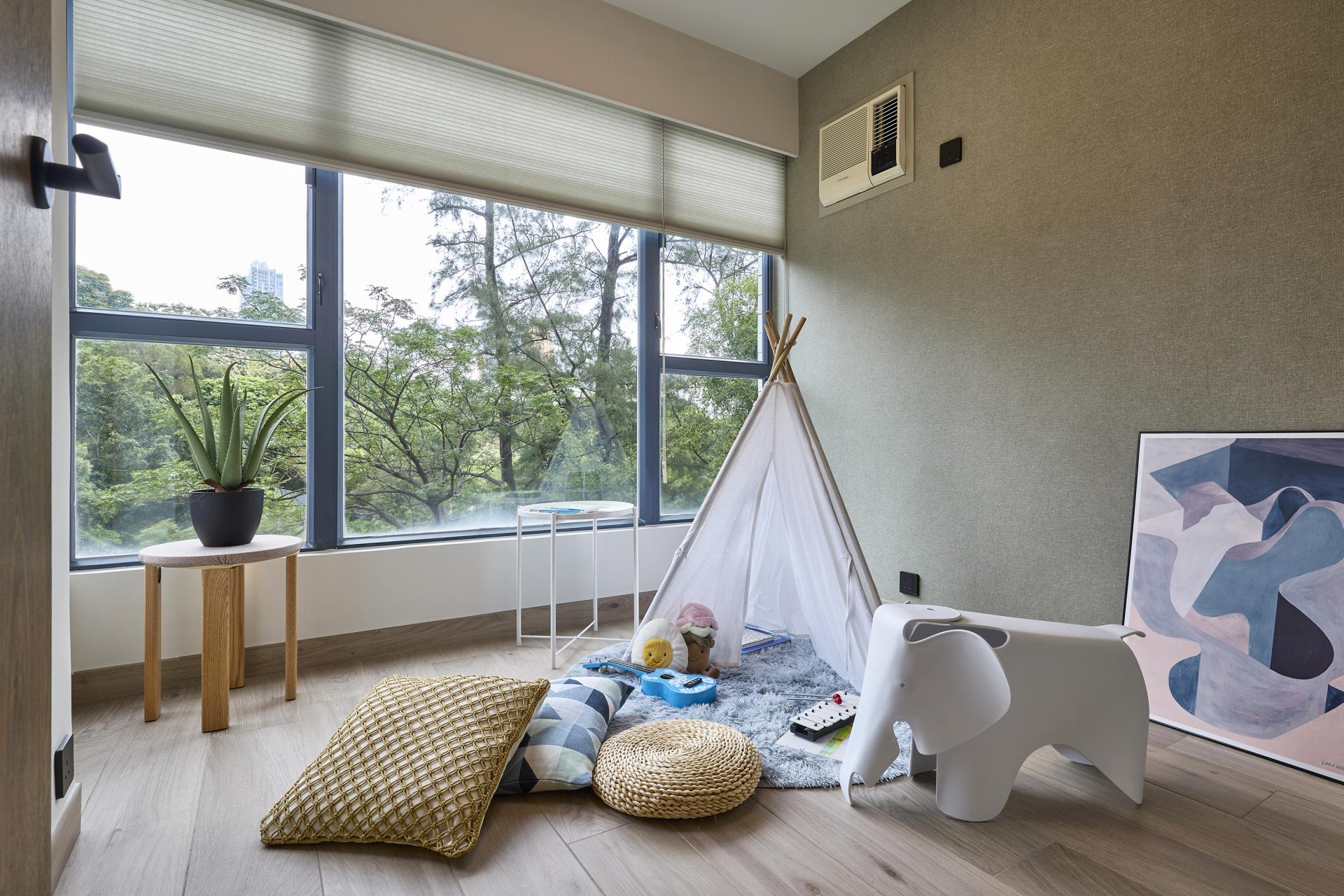 This project is designed for a young couple Mr. & Mrs Chan, knowing that they are about to start their new family in this peaceful condo. They don’t have children yet while it’s always in their planning to have kids in the future. Apart from the master bedroom, the other 2 rooms would like to keep it simple & flexible so they can assign different usage to these rooms according to their living style and pattern.As they are preparing to grow their family in this apartment with more new members to come, vast amount of storage spaces are needed while we also wanna keep the spaces flexible & sustainable, so they could be easily transformed & evolved, to match with the living routines in the years to come.