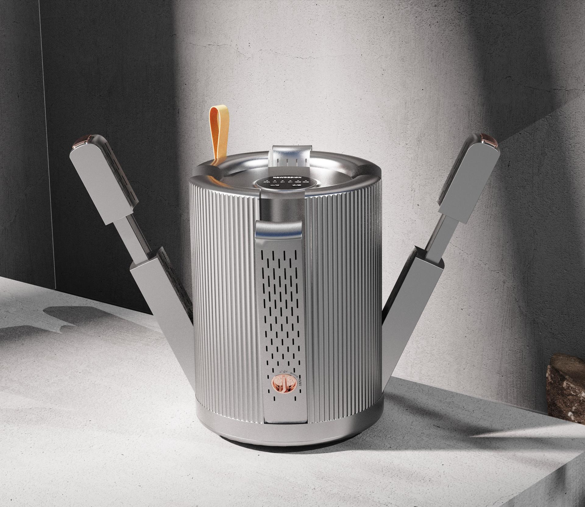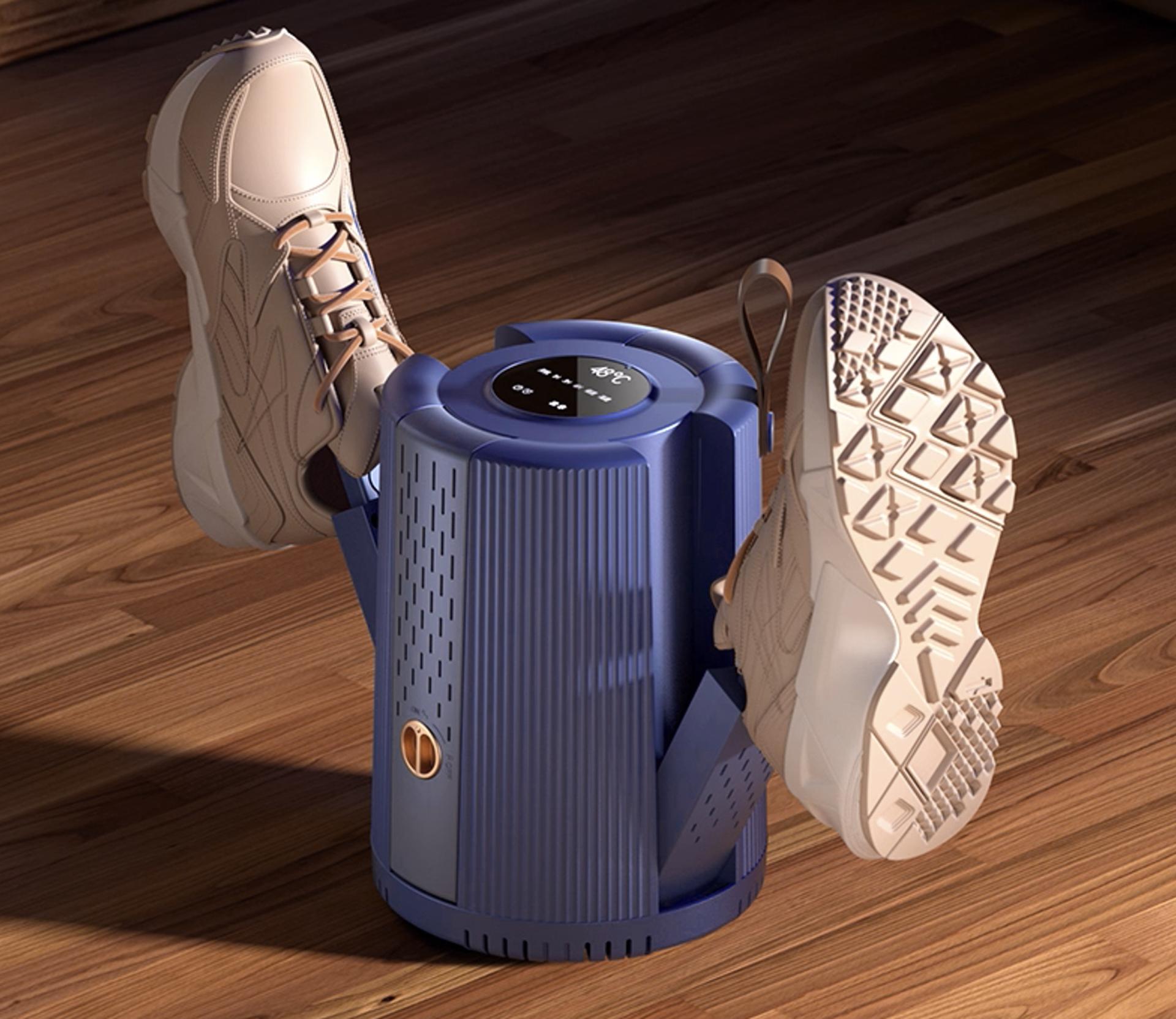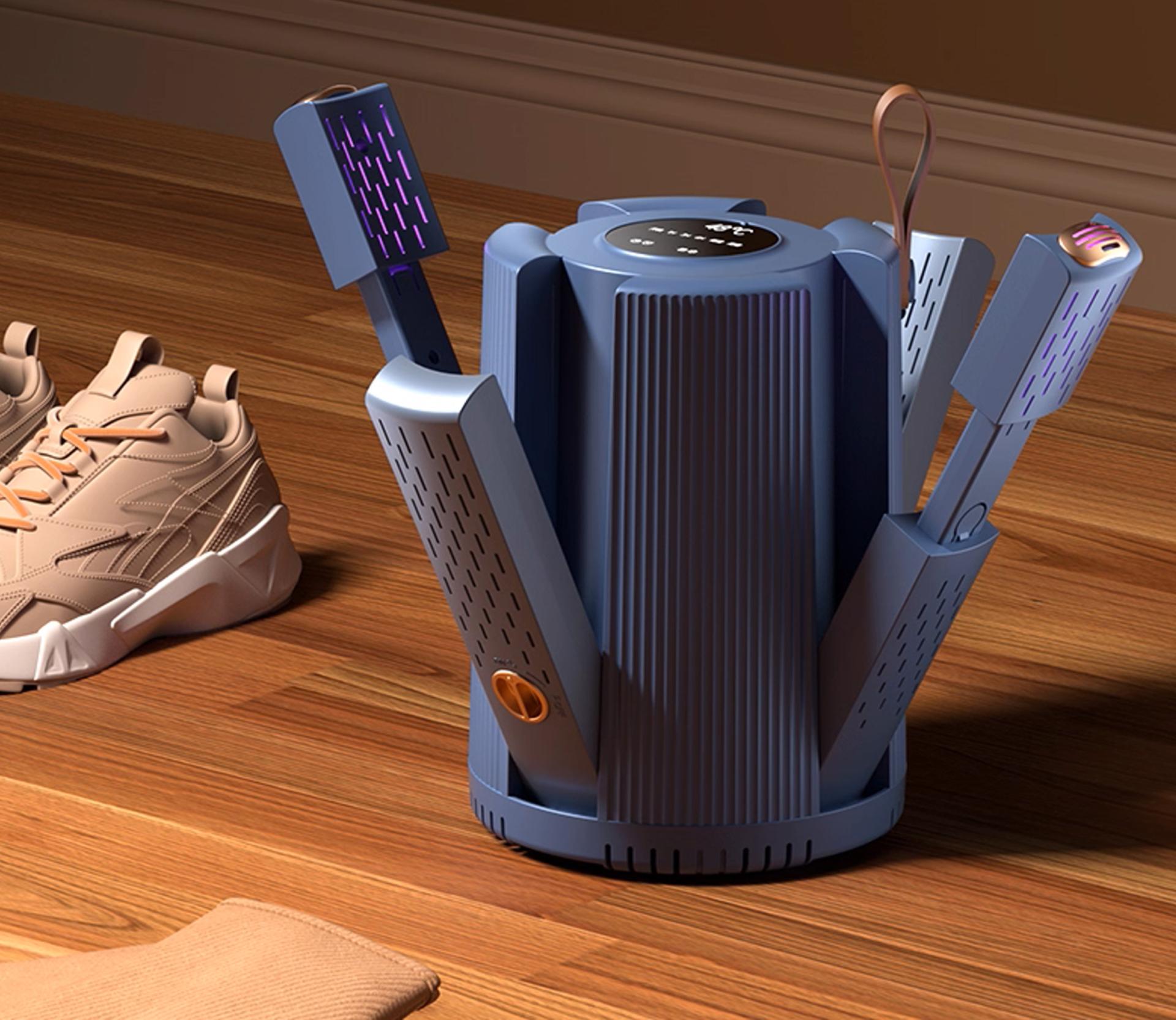This smart shoe dryer reimagines functional hardware as a piece of geometric art: a minimalist cylindrical form that radiates quiet tech appeal. Four hidden air columns—its core innovation—deploy or retract with a simple push. Two of the columns telescope outward, allowing two pairs of shoes to be dried simultaneously while still occupying a remarkably small footprint.