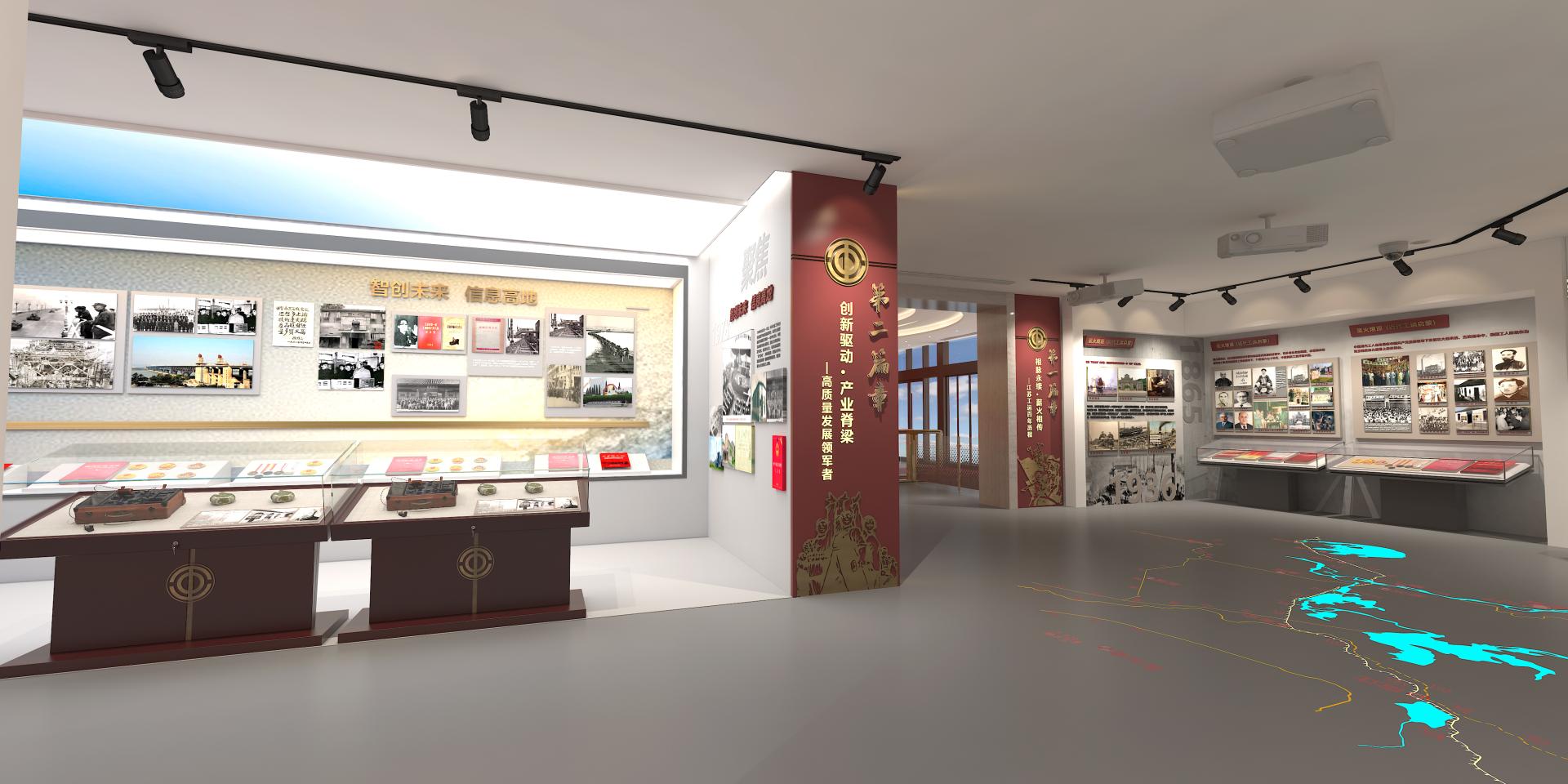 Design elements integrate symbolic, regional, and craftsmanship motifs. Abstract hands represent skill, perseverance, and labor as a creative force. Gears and wheat signify the harmony of industry and agriculture, while structural “spines” and bridges convey strength and continuity. Regional characteristics—flowing water, Jiangnan architecture silhouettes, moon gates, and garden-inspired window patterns—anchor the space in Jiangsu’s cultural and geographical context. Craftsmanship is further expressed through the evolution of tools, from traditional hand instruments to precision modern devices, and through iconic products and achievements visualized via models, enlarged components, and data-driven displays.
