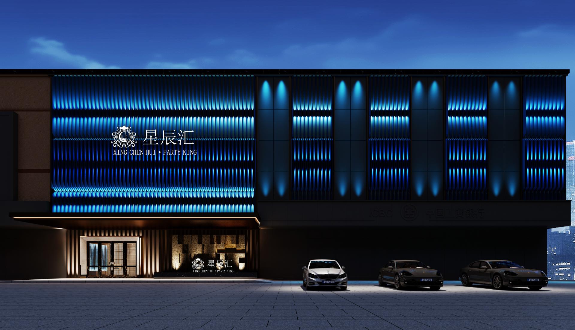 The Jinhua Xingchen Hui City Reception Hall represents a fusion of modern luxury and futuristic technological aesthetics, creating a distinctive nightlife experience in Jiangnan’s urban core. Conceptually, the project transforms the conventional KTV business model into an immersive, multi-sensory environment, where architecture, lighting, materials, and technology converge to engage the visitor on visual, auditory, and emotional levels.