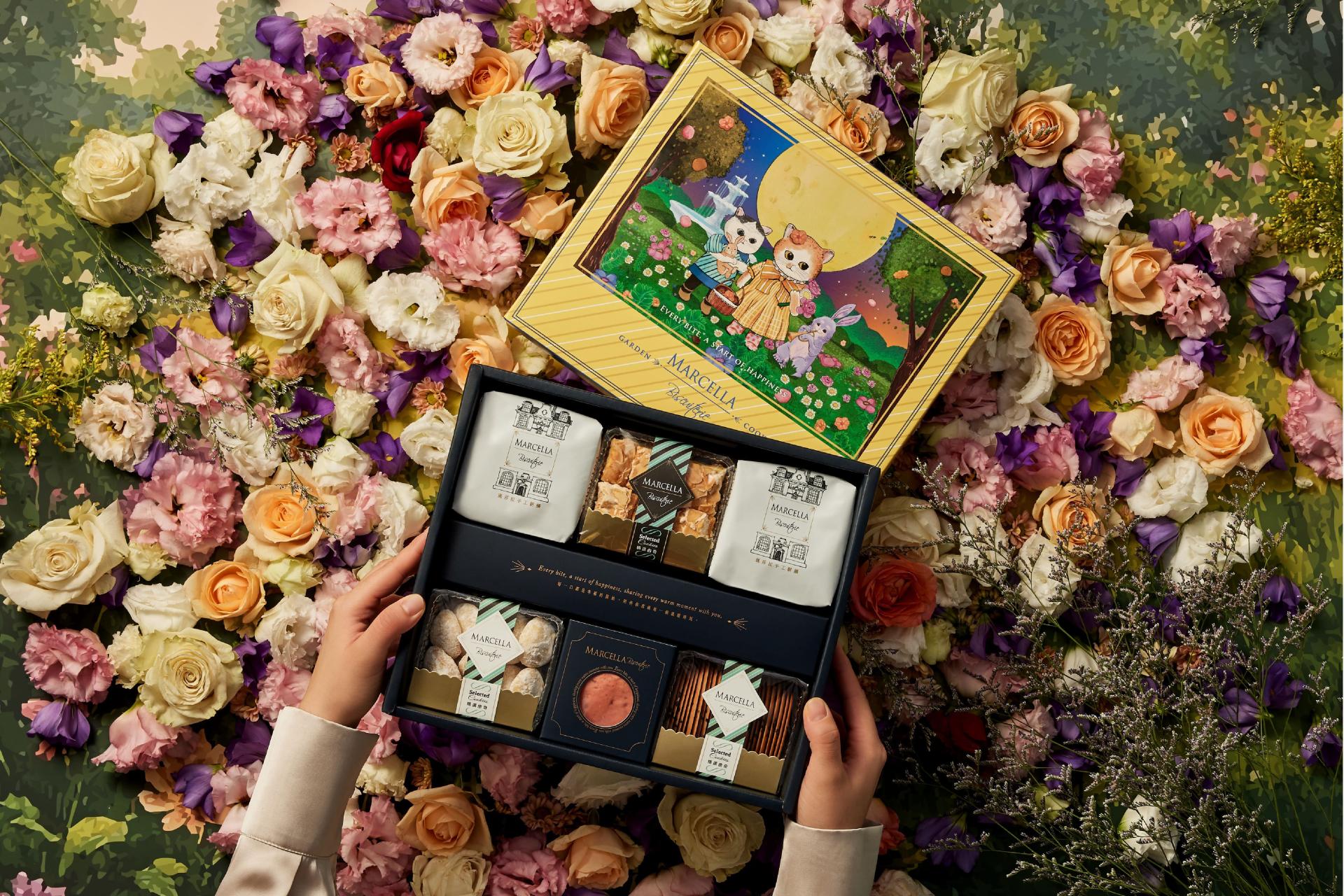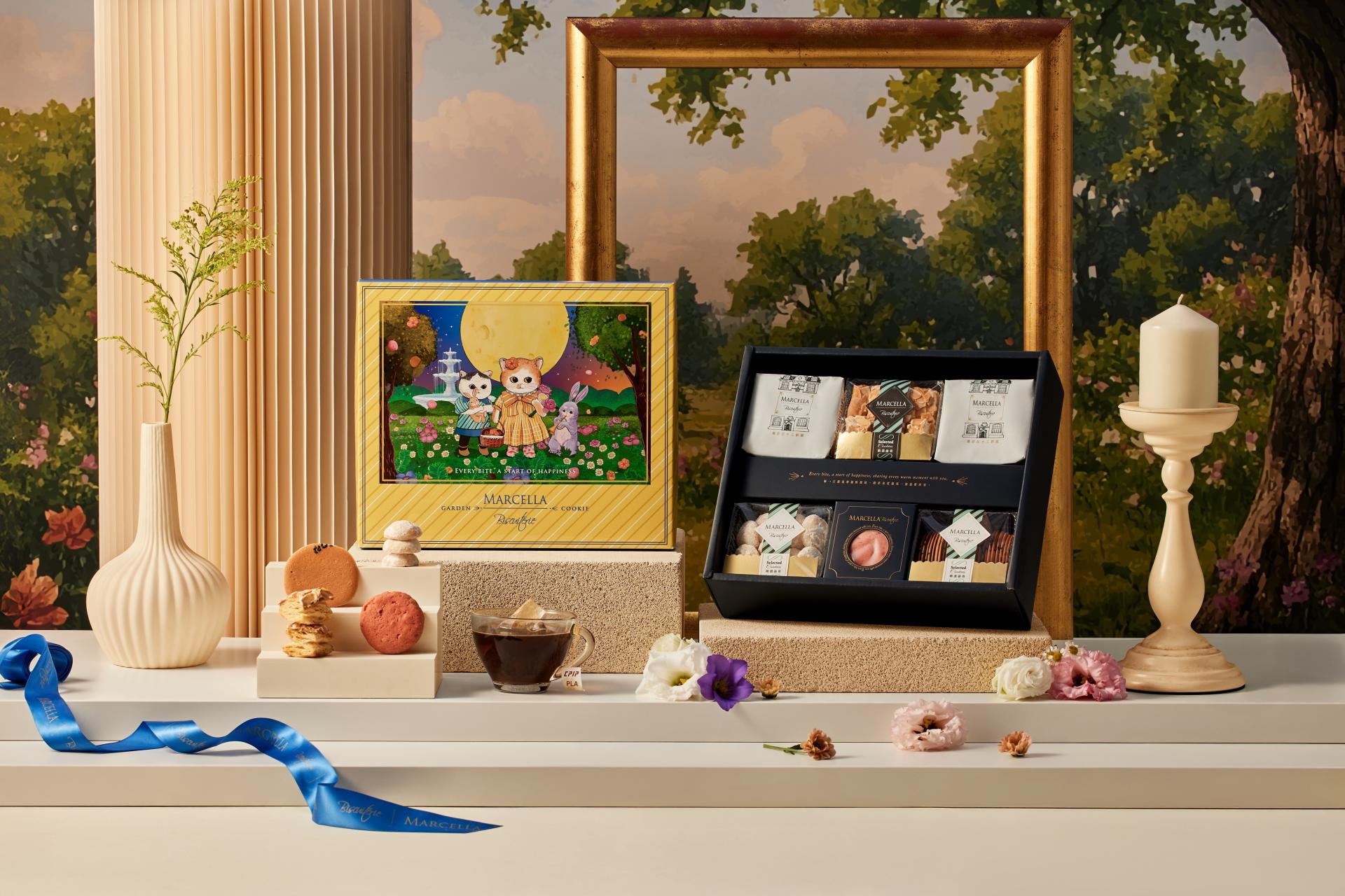 The box also includes Almond Mille-Feuille, five types of handmade cookies, and berry- and floral-infused coffee—creating a complete, elegant tea-time experience for gatherings.