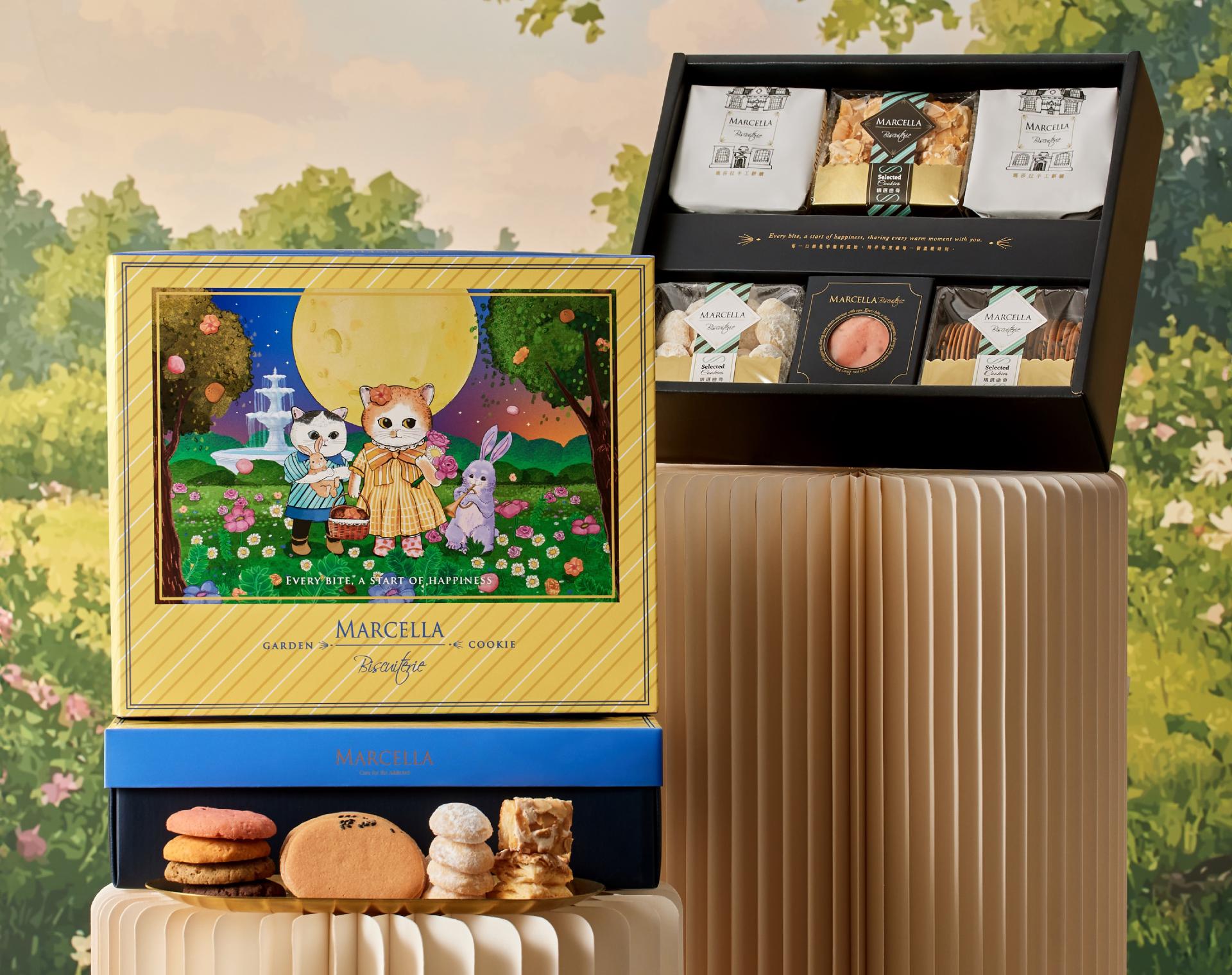 Marcella Biscuiterie specializes in French handmade cookies. For the Mid-Autumn Festival gift box “Moonlight Versailles,” we aimed to blend traditional Chinese festivity with European elegance. The name evokes both the poetic imagery of moonlight and the refined aesthetic of the Palace of Versailles.