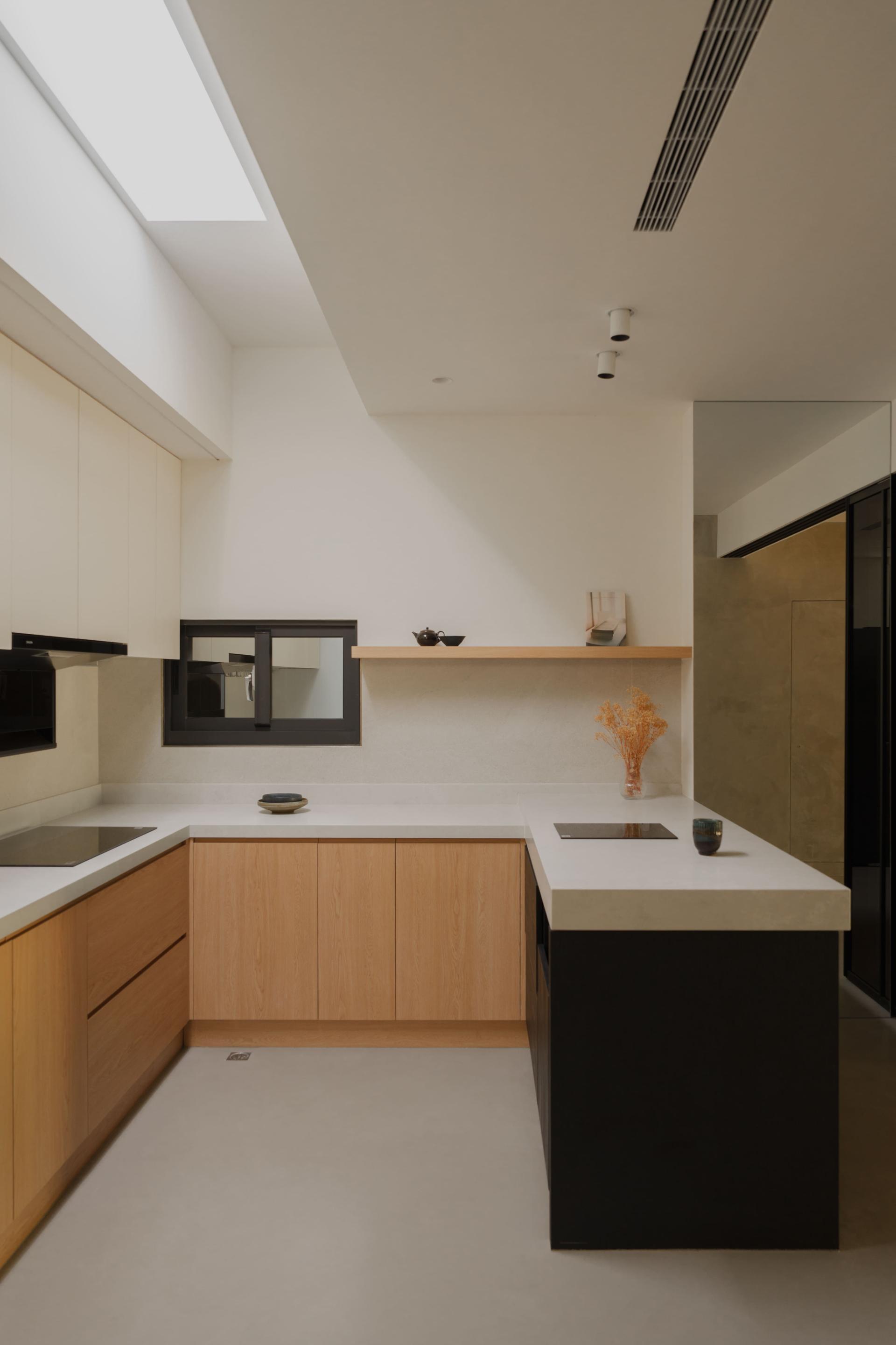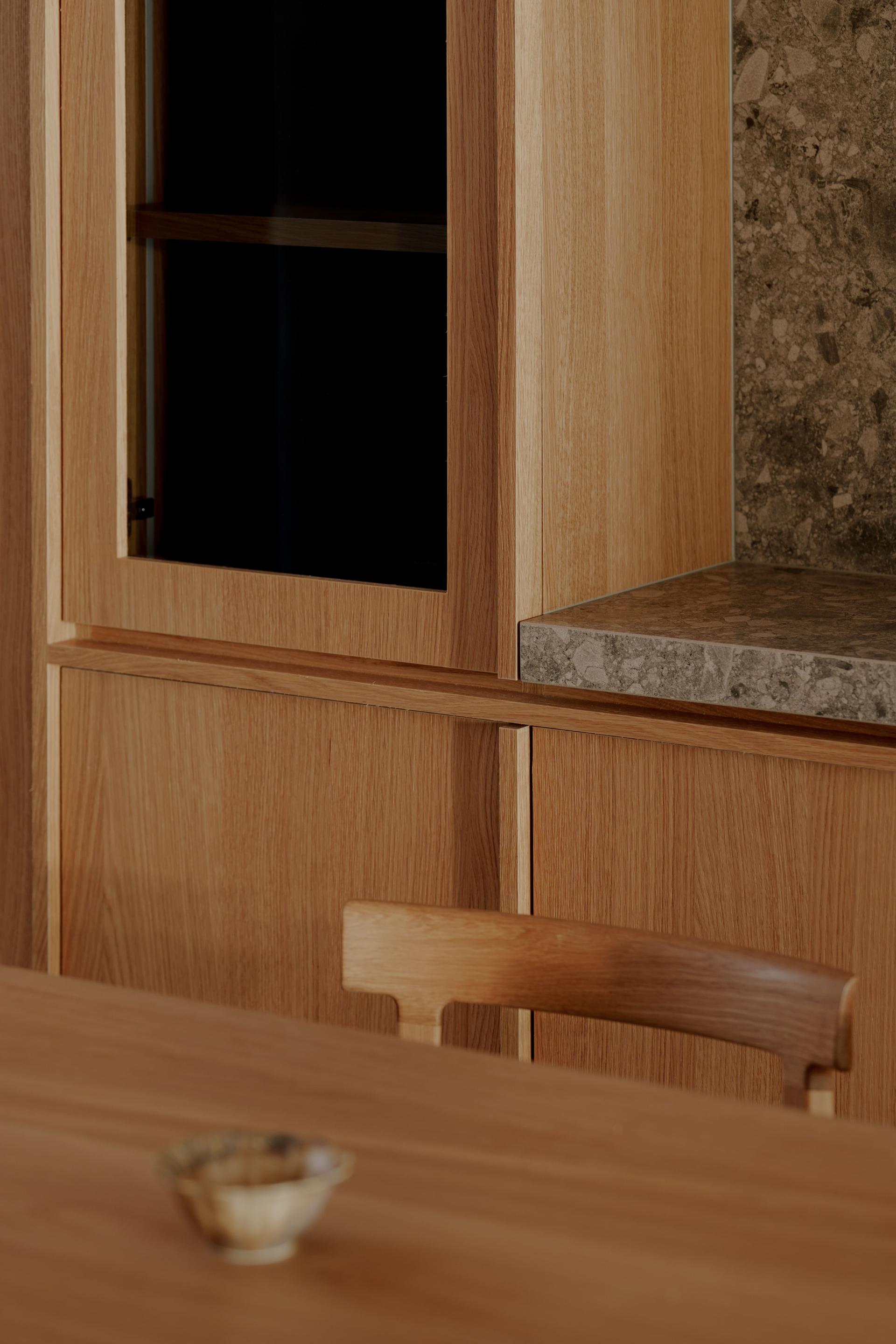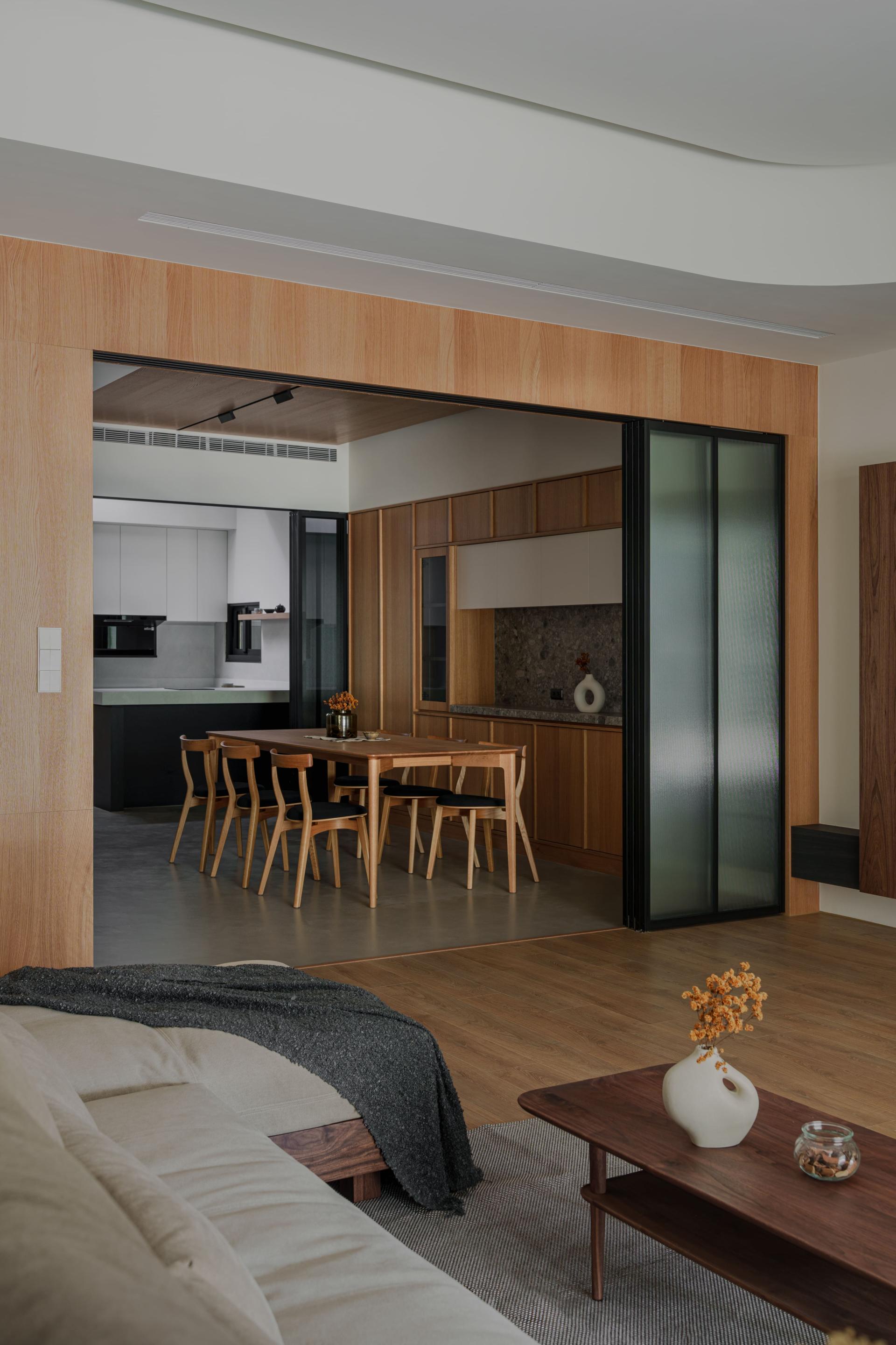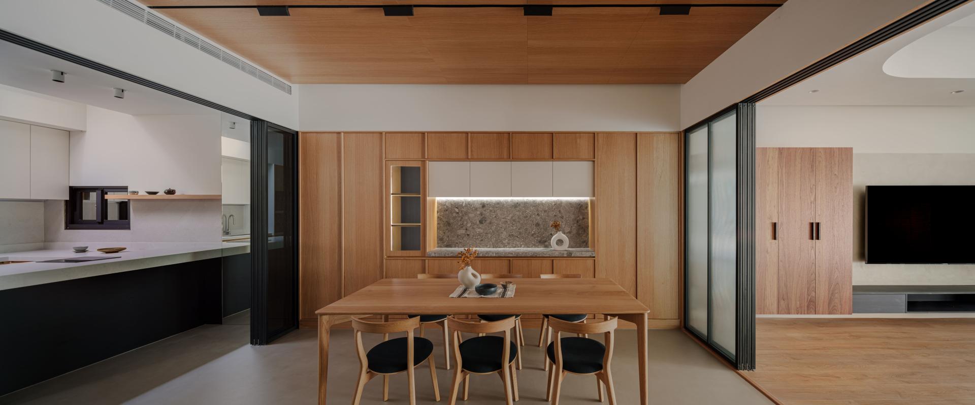 Inspired by Japandi aesthetics, the palette combines natural oak and walnut veneers for warmth, accented by black steel and aluminum for rhythm and structure. Precision in cabinetry edges, corner junctions, and furniture proportions reflects a philosophy of balance and restraint—allowing light, material, and proportion to shape the experience.