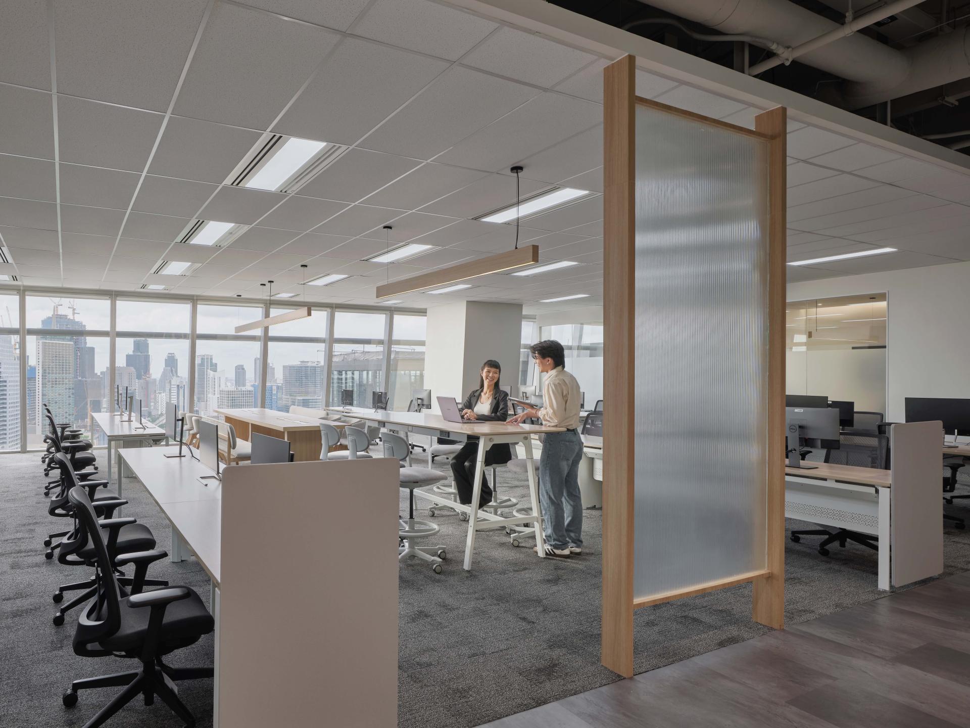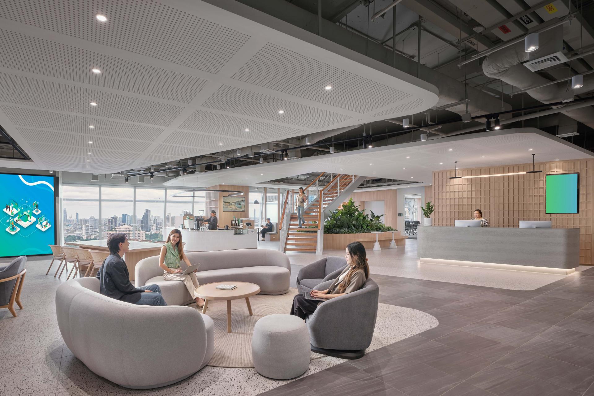 Equally important was grounding the headquarters in cultural authenticity. Thai craftsmanship and artistry were reinterpreted in modern finishes across textiles, wall treatments, and furniture, creating a dialogue between heritage and innovation. This cultural resonance ensured that the space would not feel like a generic tech office but instead reflect national pride and identity.