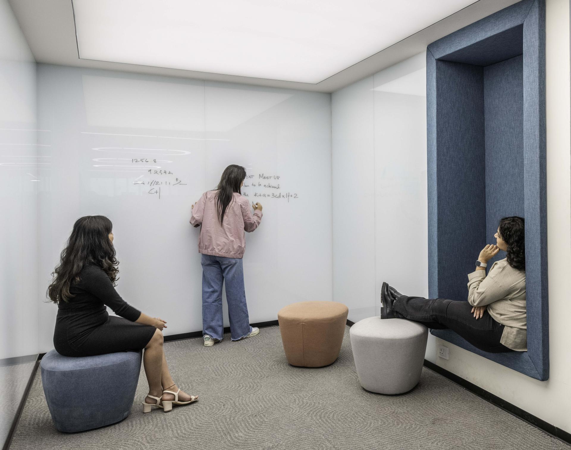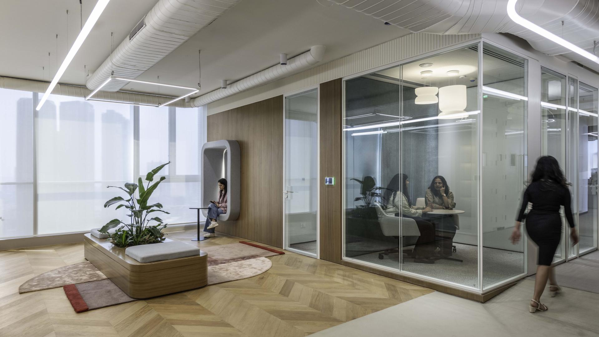Materiality and biophilic interventions were chosen to enhance well-being while ensuring simplicity and longevity. Warm finishes, clusters of greenery, and tactile surfaces contribute to a sense of comfort and authenticity, creating an environment that feels both aspirational and grounded. Quiet rooms balance the vibrancy with dedicated spaces for deep work, ensuring the office supports the full spectrum of employee needs.