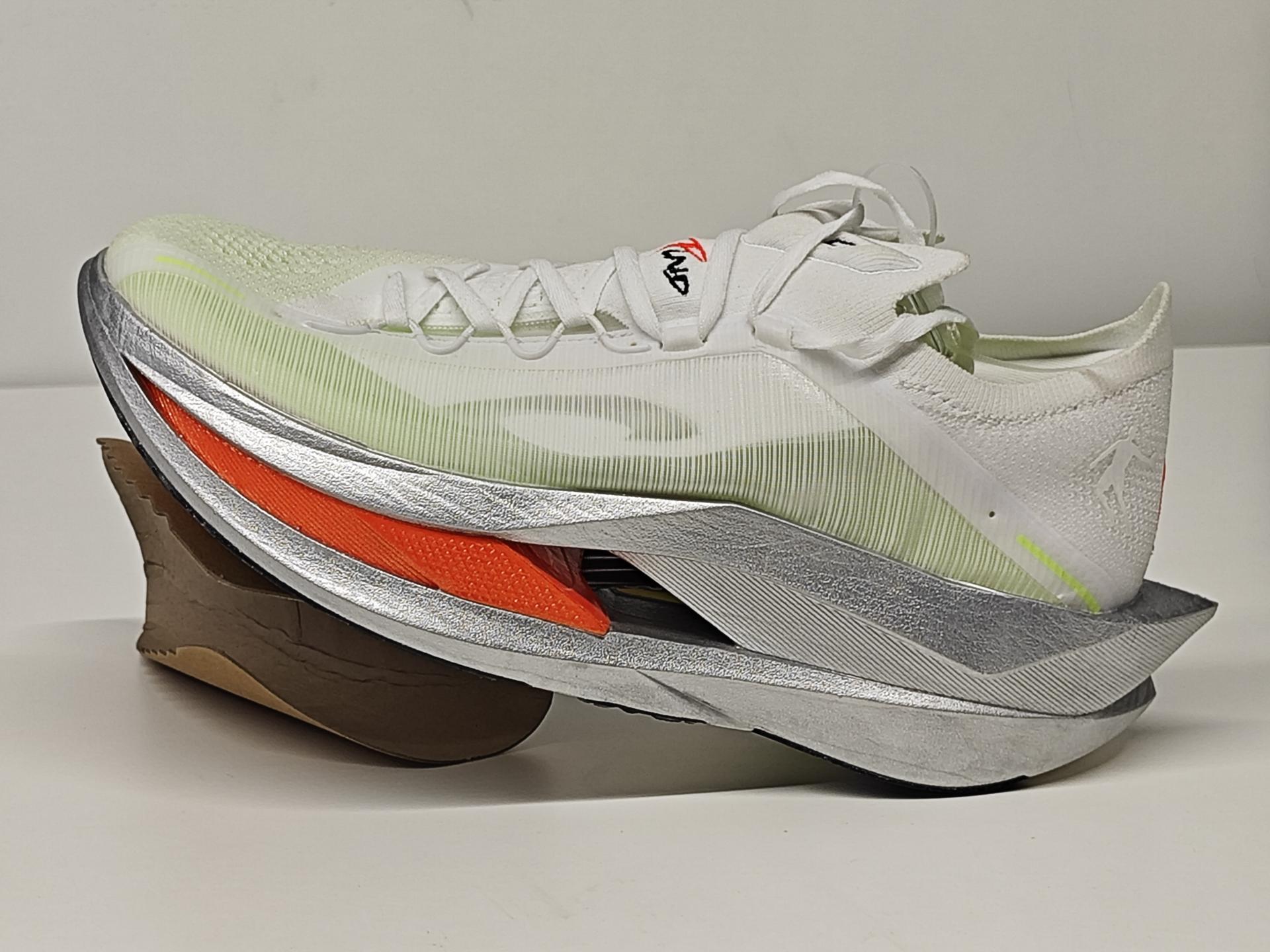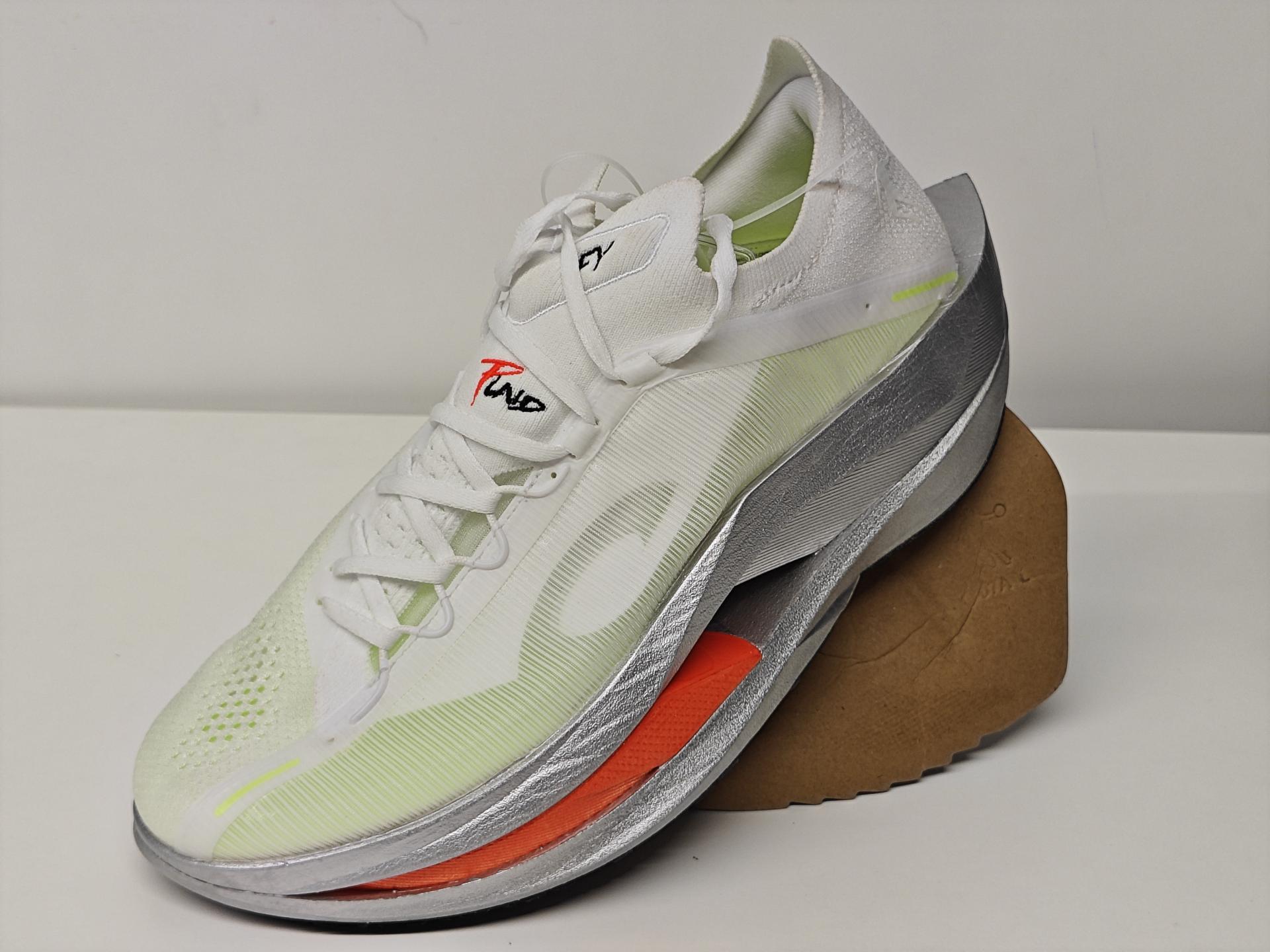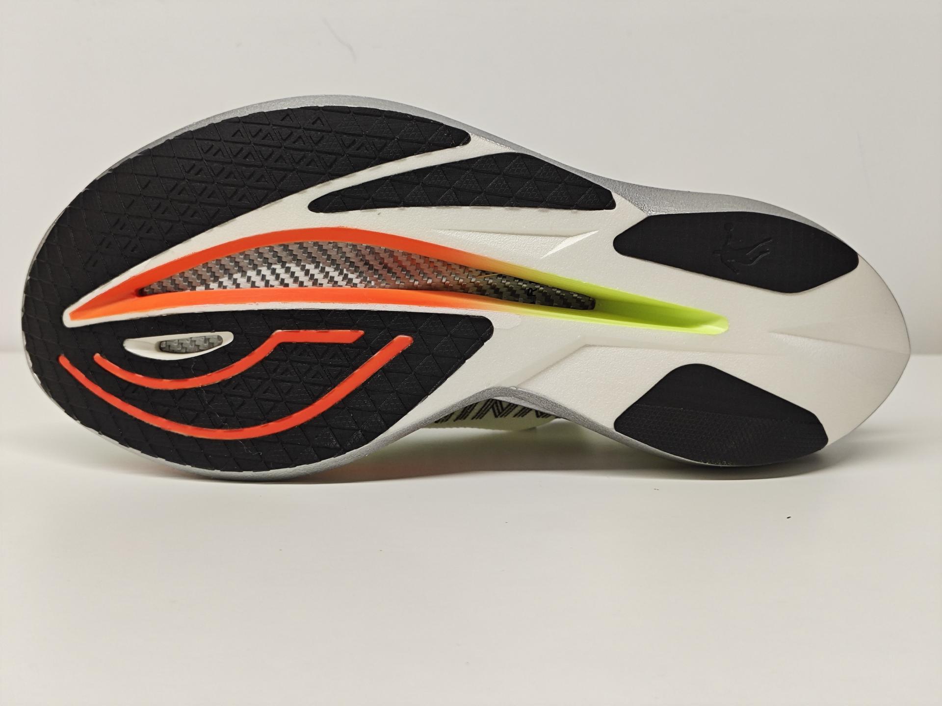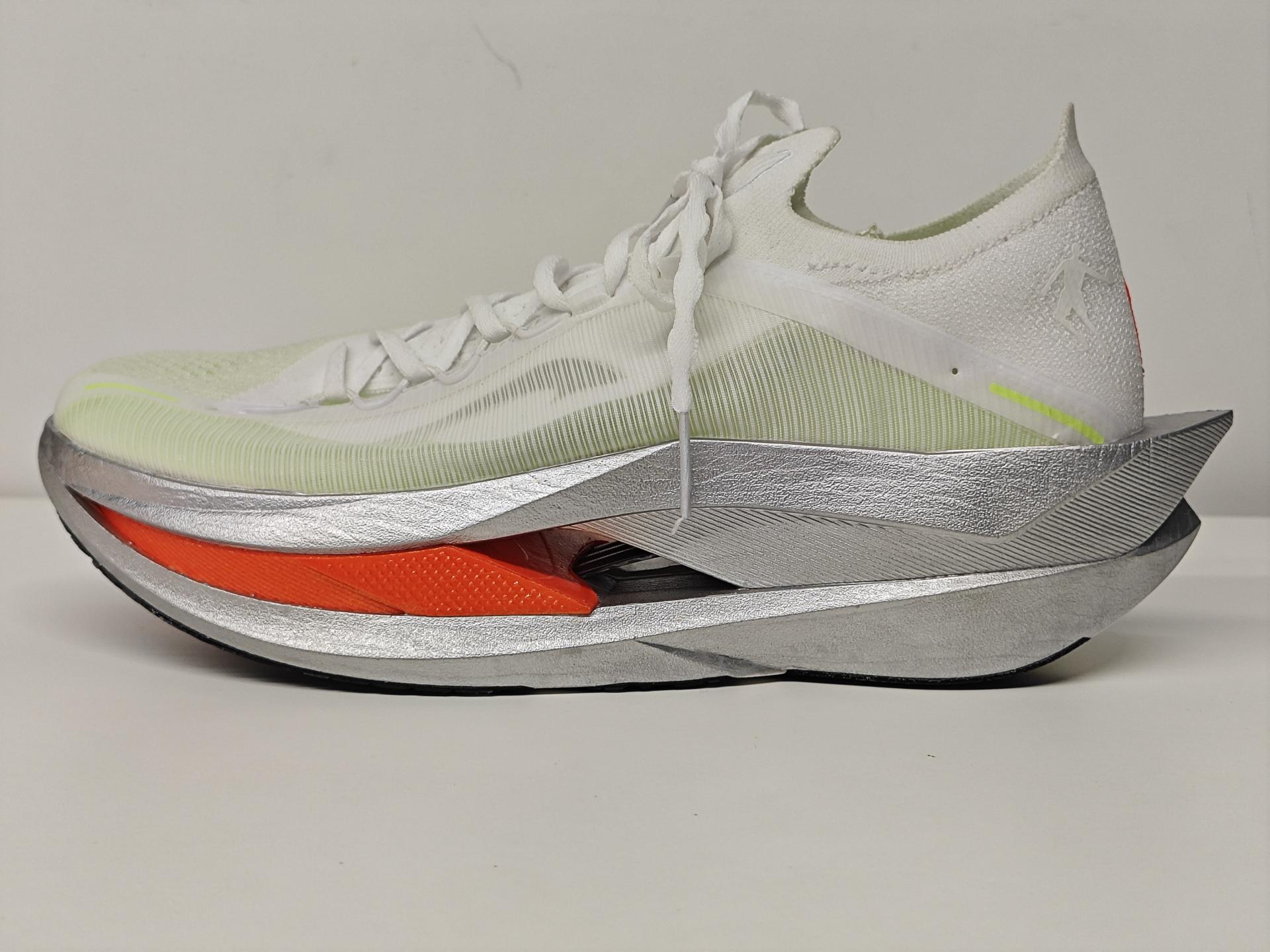 Feiying PLAID 3.0 is a flagship competition carbon running shoe that provides high-level athletes with the ultimate effortless running experience. The shoe innovatively designs a suspended carbon plate structure at the midfoot position, which can effectively increase the deformation space of the foam in the forefoot position during the energy storage stage. A three-layer midsole structure is designed at the forefoot position, combined with a high elasticity PEBA foam that is soft in the middle layer and hard in the upper and lower layers, to provide more elastic release during the stepping process of the forefoot during the pushing stage, thus achieving the effect of saving effort.The shoe upper is made of recyclable and environmentally friendly yarn, which is easier to recycle than traditional yarn, bringing a more sustainable future to the earth. The shoe upper is more elastic and comfortable, providing a soft wrapping experience for runners.