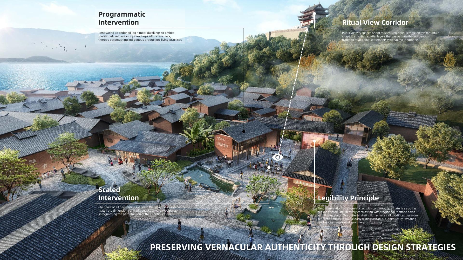 3. Preserving and Reviving Living Scenes: For the Dazu Ancient Village section in the south, we adopted a low-intervention approach to maintain authenticity. Selected abandoned and collapsed Muleng wood houses were restored and repurposed with functions like craft workshops, local product markets, and a living heritage exhibition hall. This aims to preserve and showcase traditional productive and living scenes.