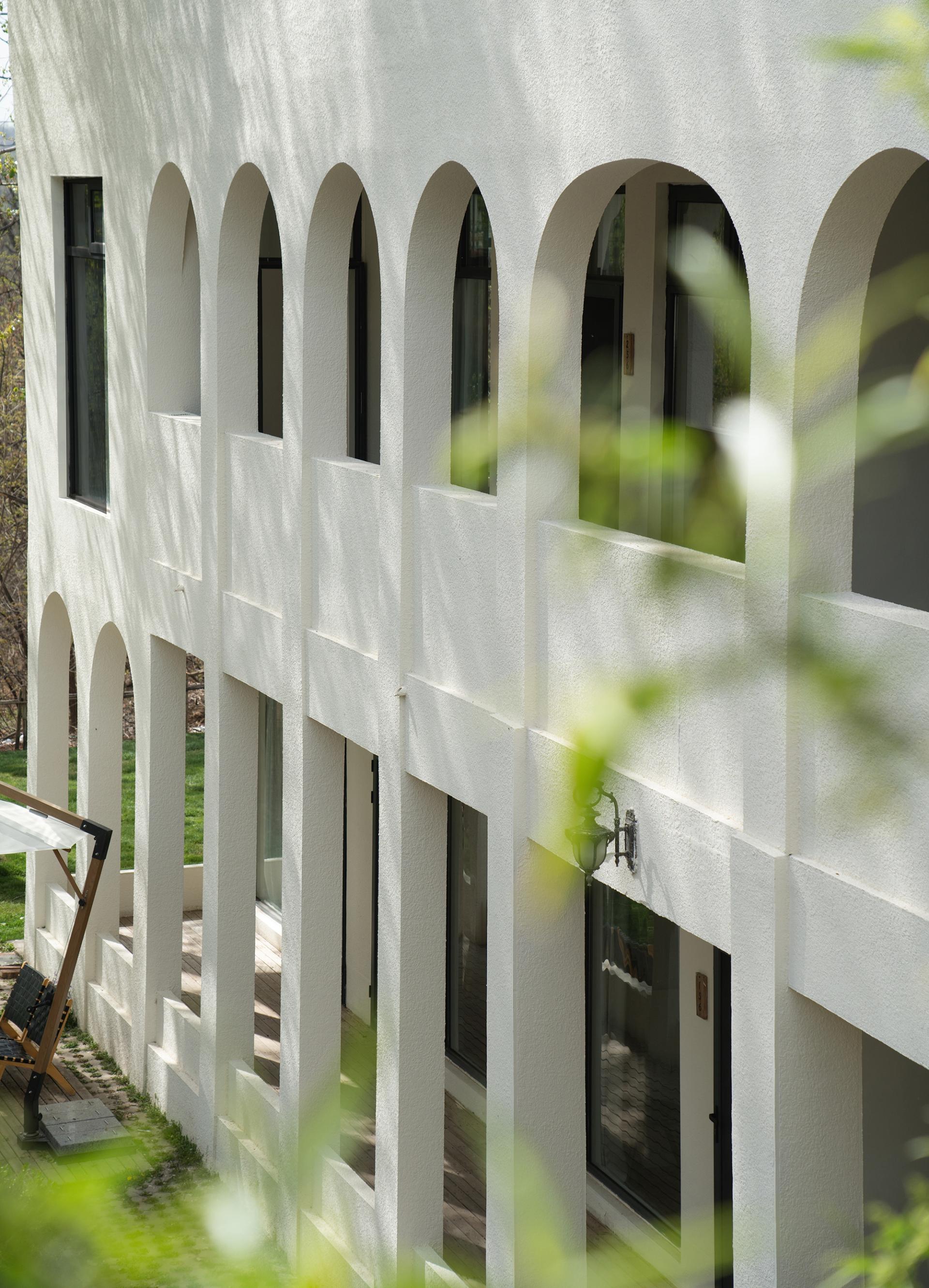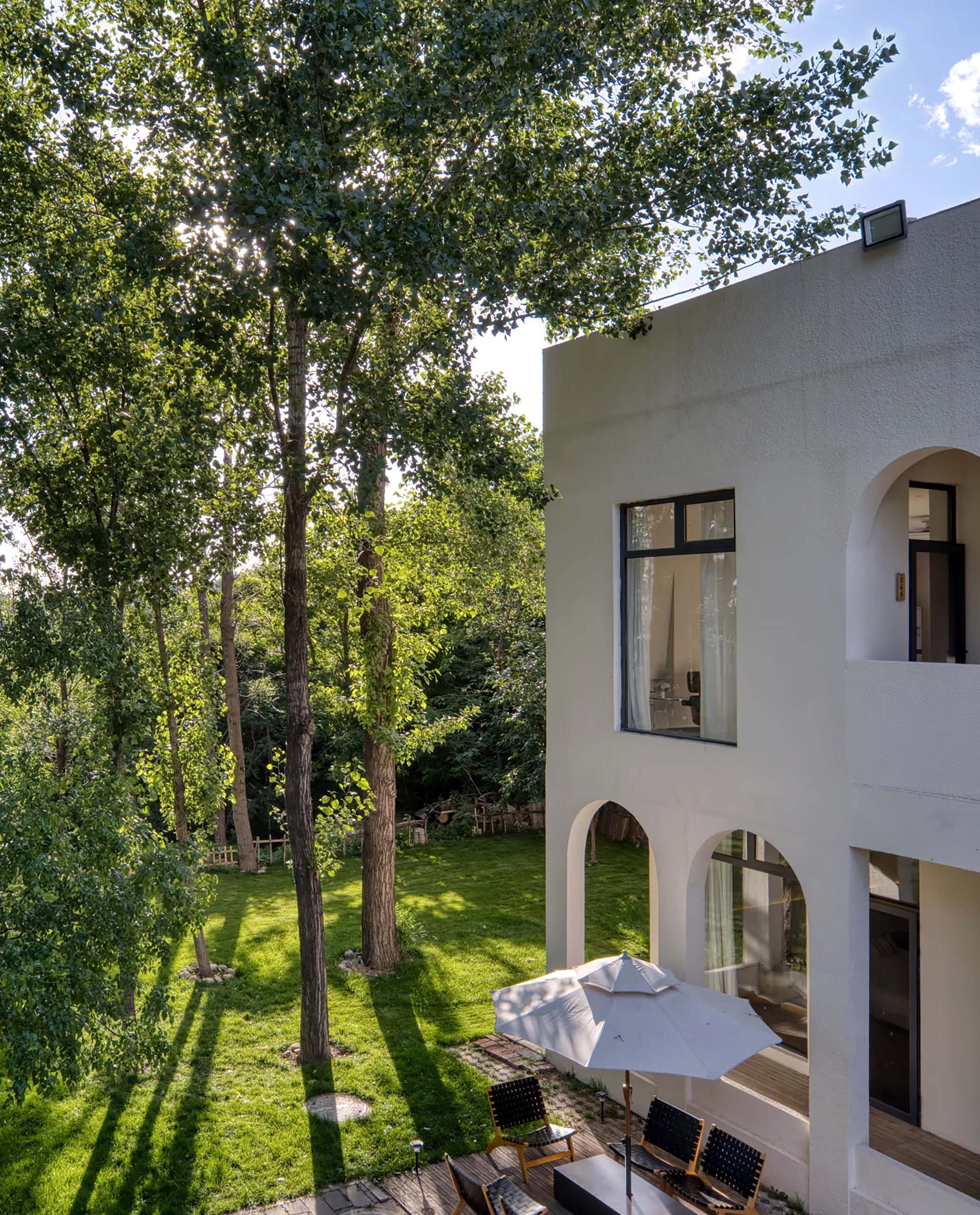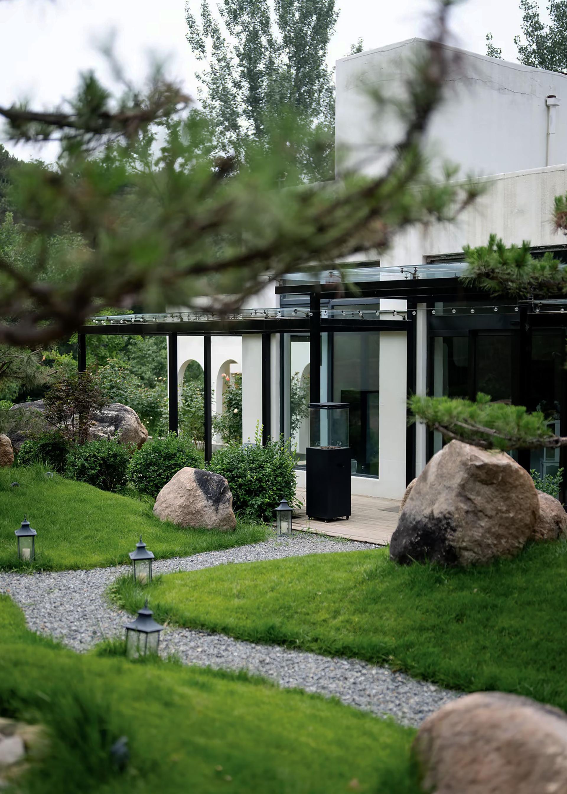 Cradled within a verdant forest near the shimmering Miyun Reservoir and set against a dramatic mountain backdrop, the site is a sanctuary of stillness and natural beauty. Here, architecture does not impose — it listens. The Zen room opens effortlessly into the front yard, where light, breeze, and silence flow freely between indoors and out, dissolving the boundaries between built form and the living landscape.