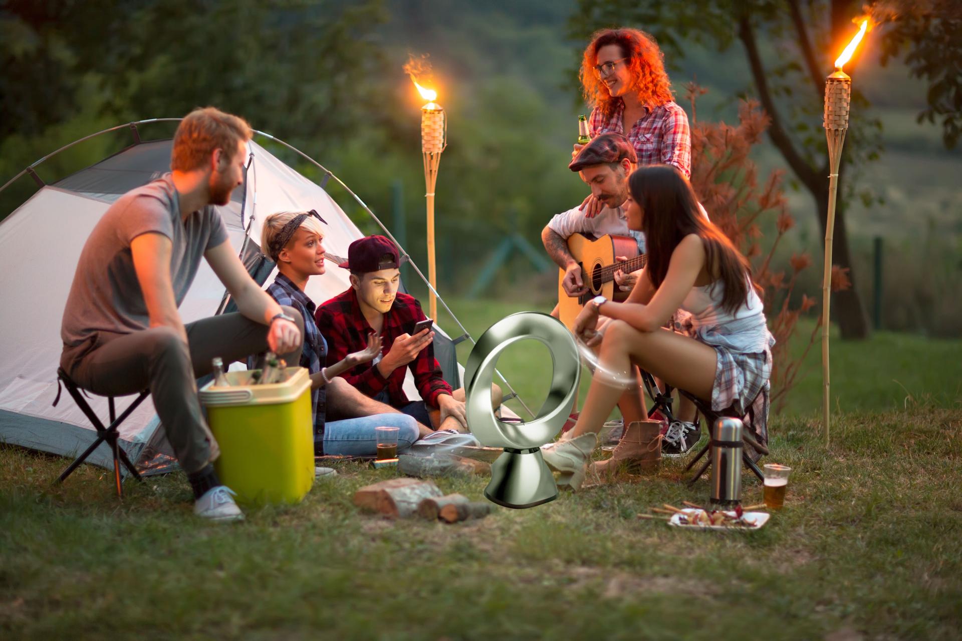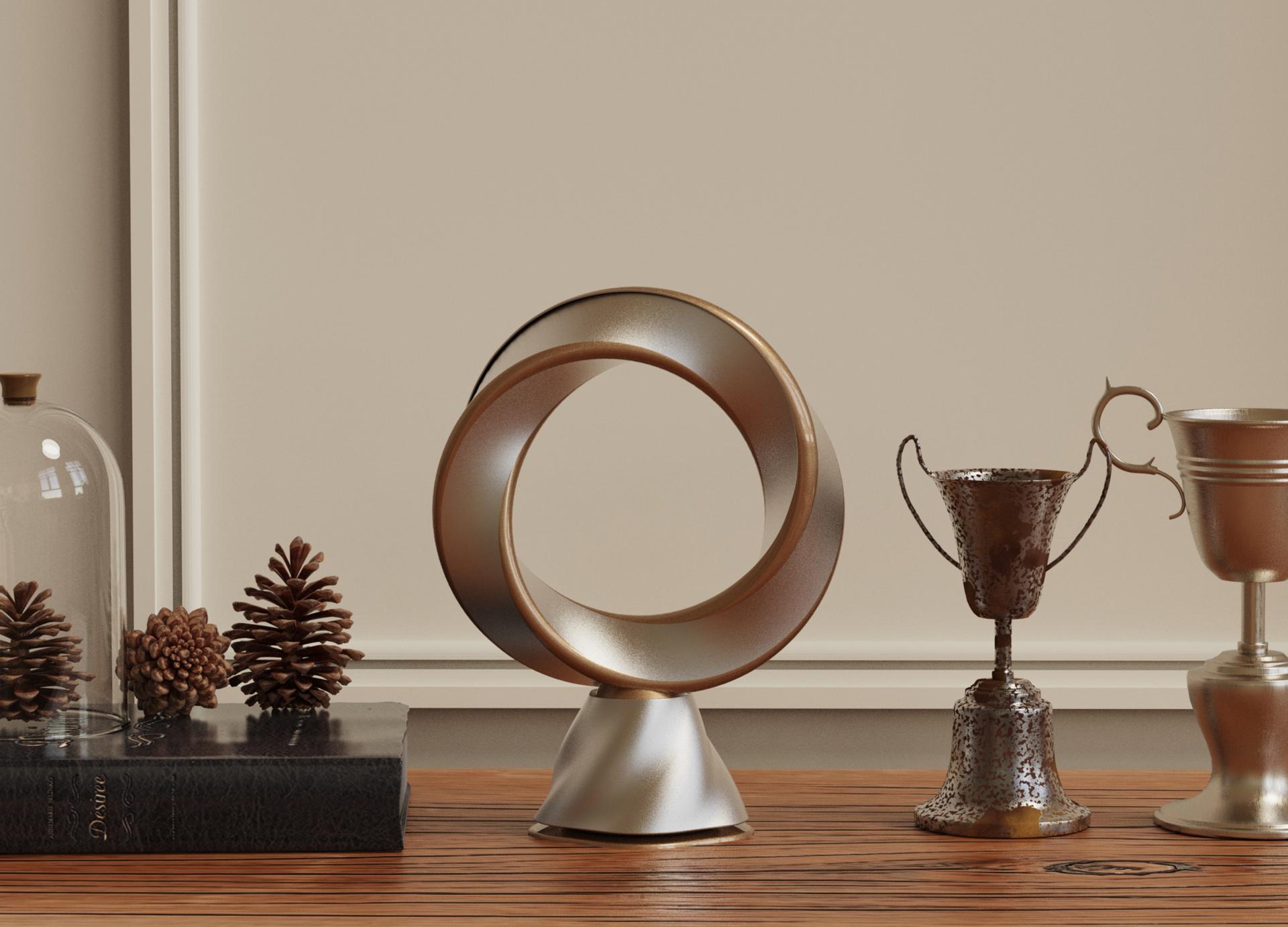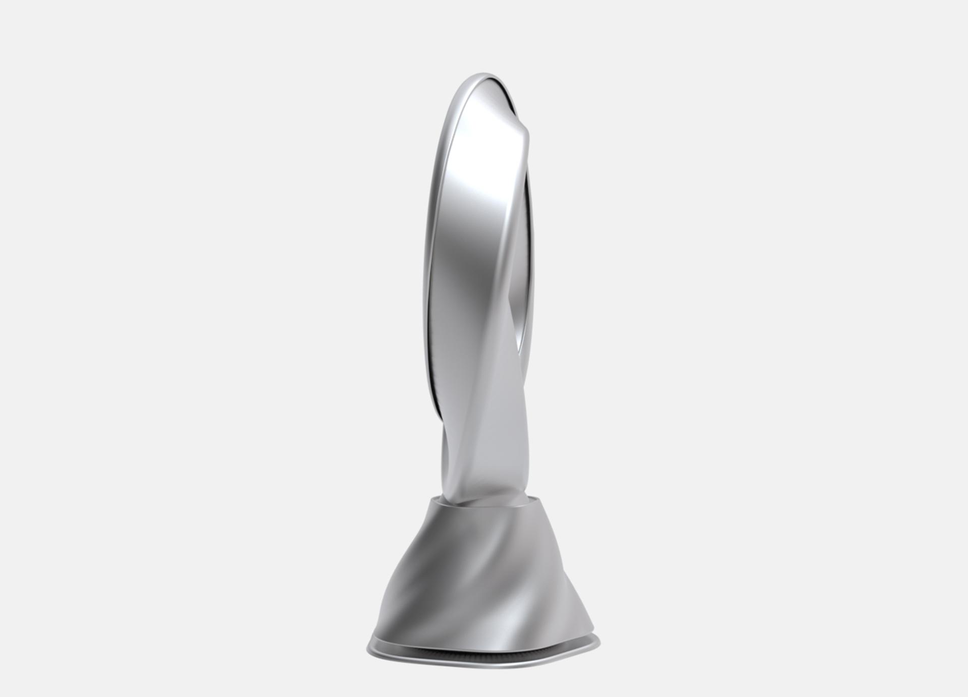 This design is inspired by the Möbius ring, using the twisted form feature of the Möbius ring to set up the air outlet, realising the simultaneous airflow in different directions of 360 degrees, instead of the existing more restricted oscillating head function. This product is suitable for multi-person occasions such as camping. Technically with the help of Bluetooth and human presence sensor linkage, through the millimetre wave radar, accurately identify the human body position and automatically control the air outlet to achieve smart home solutions.