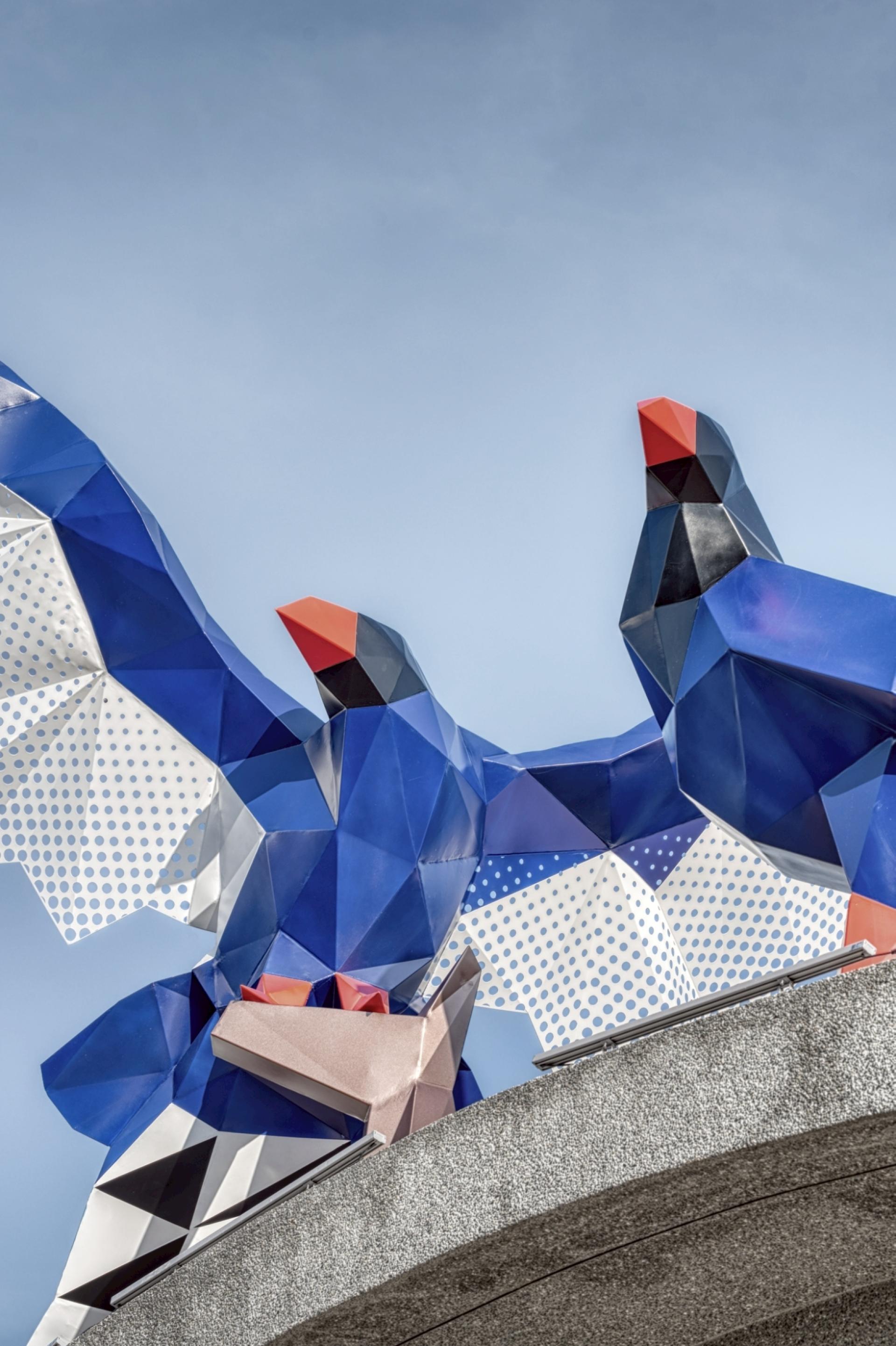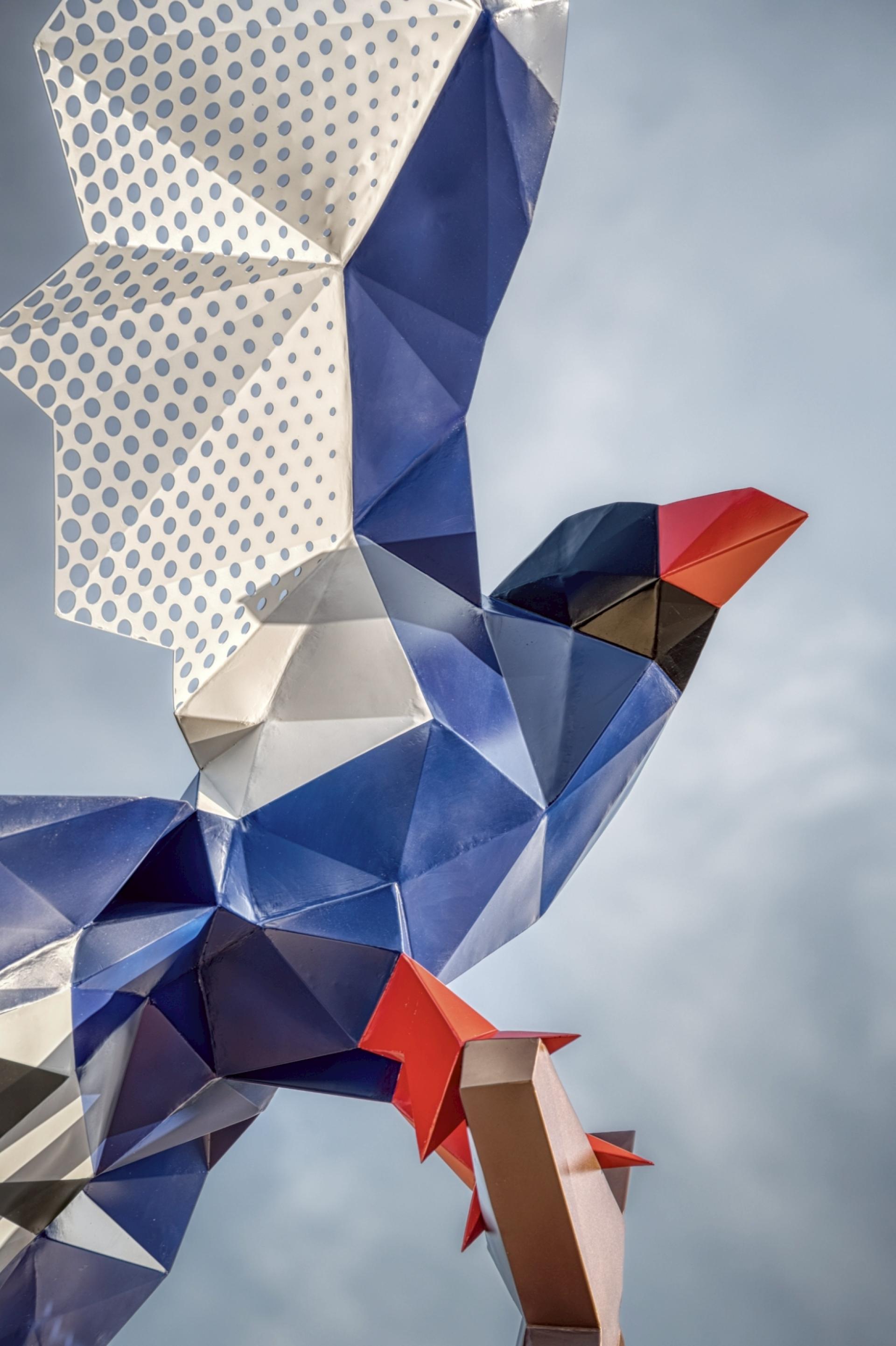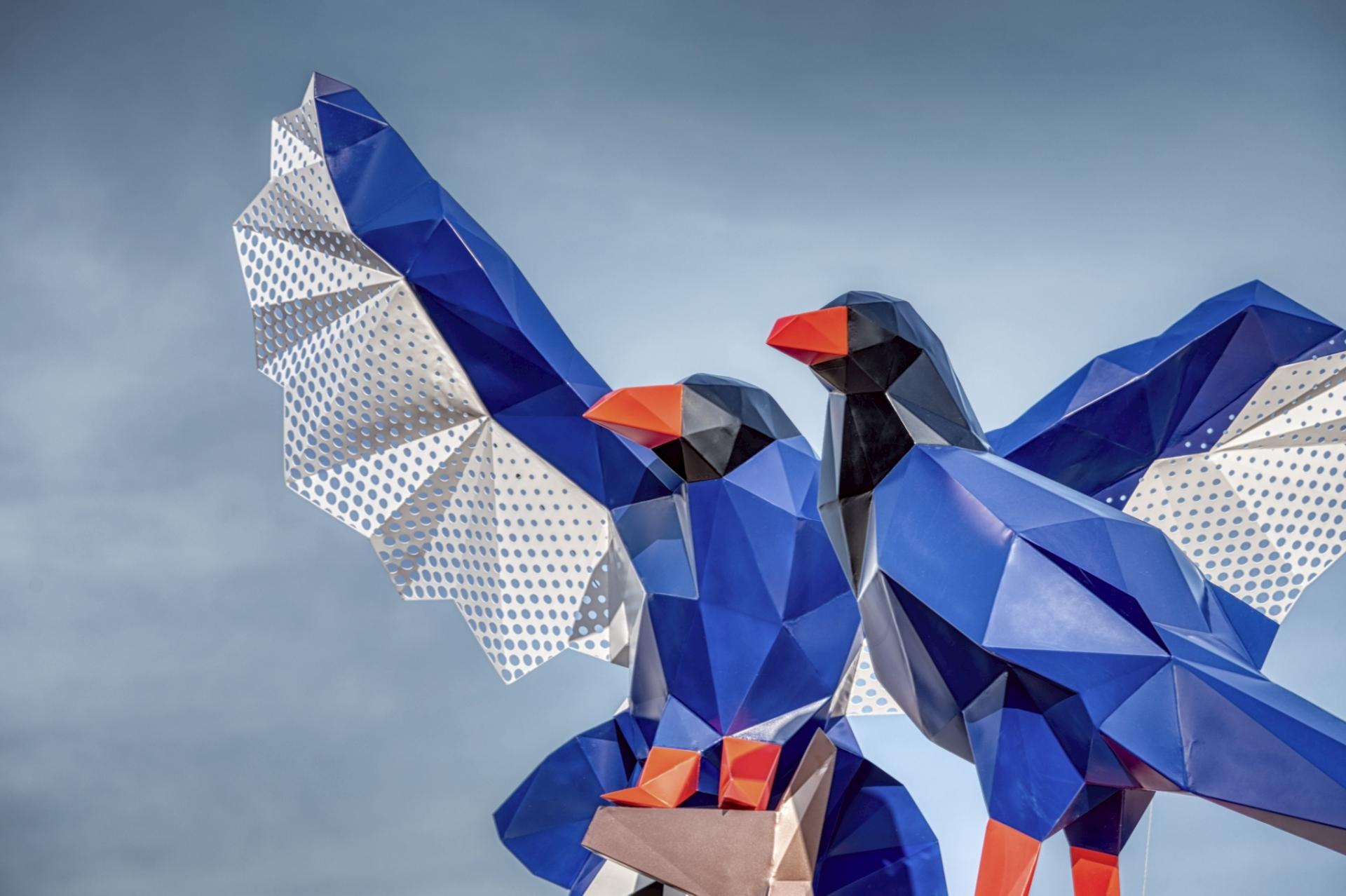 The graceful Formosan blue magpies are often spotted in Baoshan Township. These birds have a strong family bond and sense of guardian duty toward their homeland. Inspired by their charm, this piece depicts two birds flying together in harmony, symbolizing their protection of this treasure-like land. Every blade of grass and leaf reflects life’s vitality, while each brick and tile records the area’s history and culture. This work conveys heartfelt wishes for Baoshan Township’s prosperity and happiness.