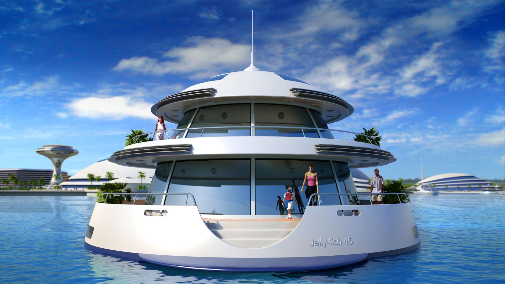 To the smaller floating platforms will be anchored 80 floating suites 350 sqm each, called Jelly-fish with underwater views within the artificial reef. It’s a really floating house for six people, 16m in diameter and 9m high, realized like a superyacht in aluminium and reciclable materials, make it 90% recyclable and energy self-sufficient, thanks photovoltaic surface on the roof and special electric generator with hydrogen fuel cells system, that extracts hydrogen from seawater. At 3m below the sea level, will find the core of the suite, the underwater globe in hi-resistante acrylic surface, the most intimate living room where you can admire the wonders of the sealife into artifical reef.