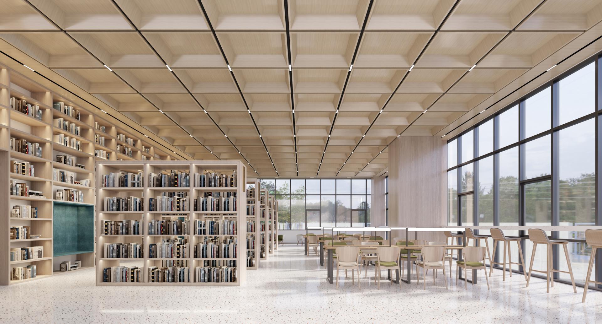 3. Functional Zoning: The building’s functional layout naturally organizes the southern section as an active zone and the northern section as a quiet zone. The southern area houses activity-intensive spaces: music and dance classrooms as well as table tennis rooms on the first floor, with ball courts on the second floor. The north zone accommodates quieter spaces, including a library on the first floor, art and practical skills classrooms on the second floor, and technology classrooms on the third floor. A central large space serves both as a buffer between active and quiet zones and as a circulation hub.