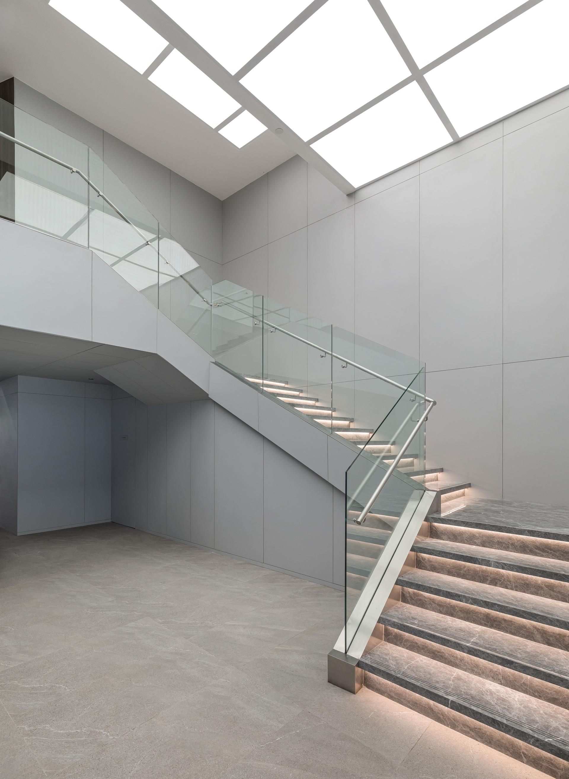 To reinforce this vision, ceiling and wall treatments are composed of lightweight materials in a natural, muted palette, enhancing both visual and tactile delicacy. Careful consideration was given to site constraints, with particular attention to the proportional relationship between ceiling and wall paneling. This meticulous calibration allows the gallery to maintain a controlled ceiling height to achieve continuous, undulating space.