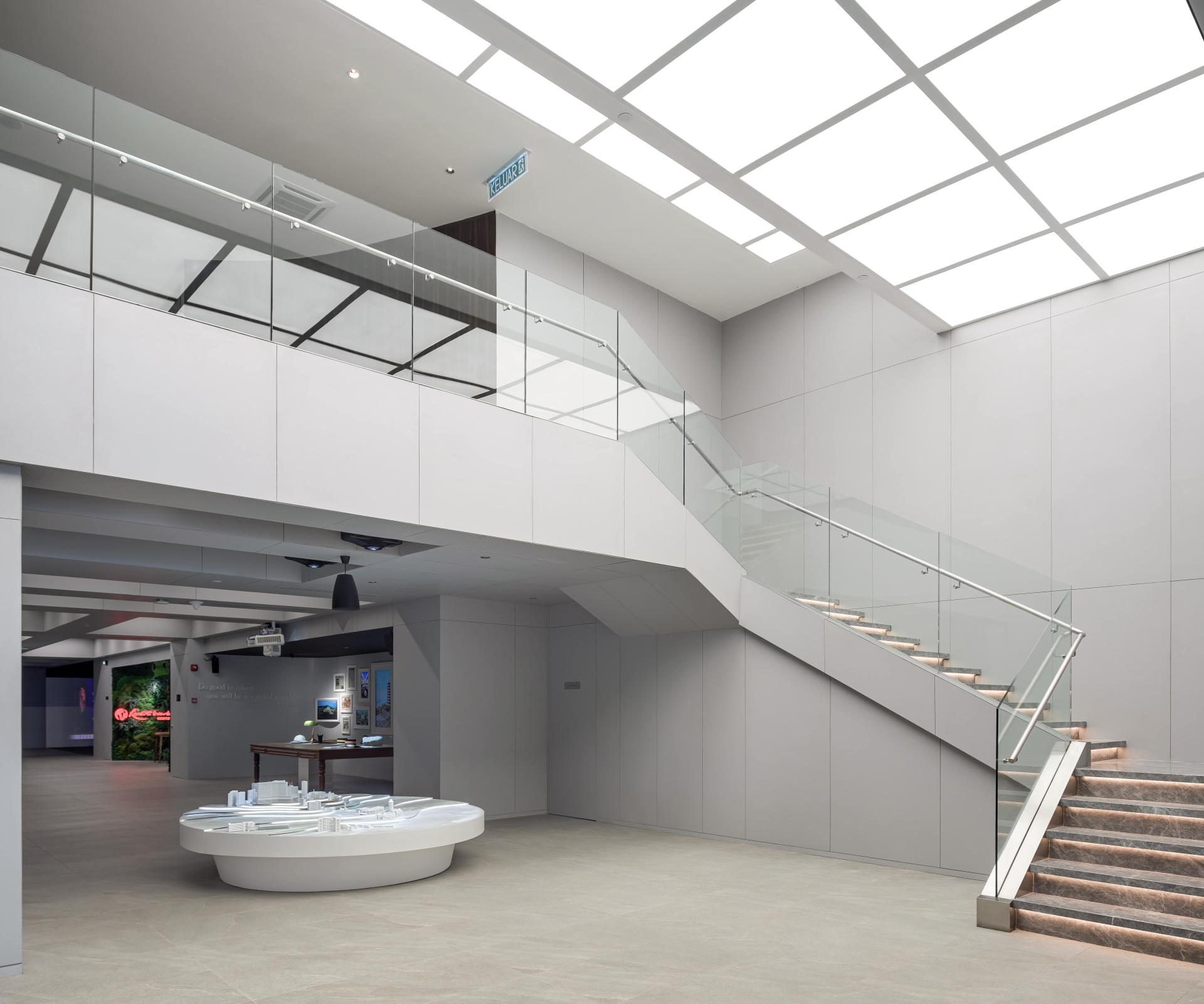 Visitors are greeted by a cloud-like chandelier paired with an interactive digital display. Lighting is choreographed to diffuse softly throughout the gallery, emulating sunlight filtering gently through cloud layers, immersing guests in a calm yet dynamic atmosphere.