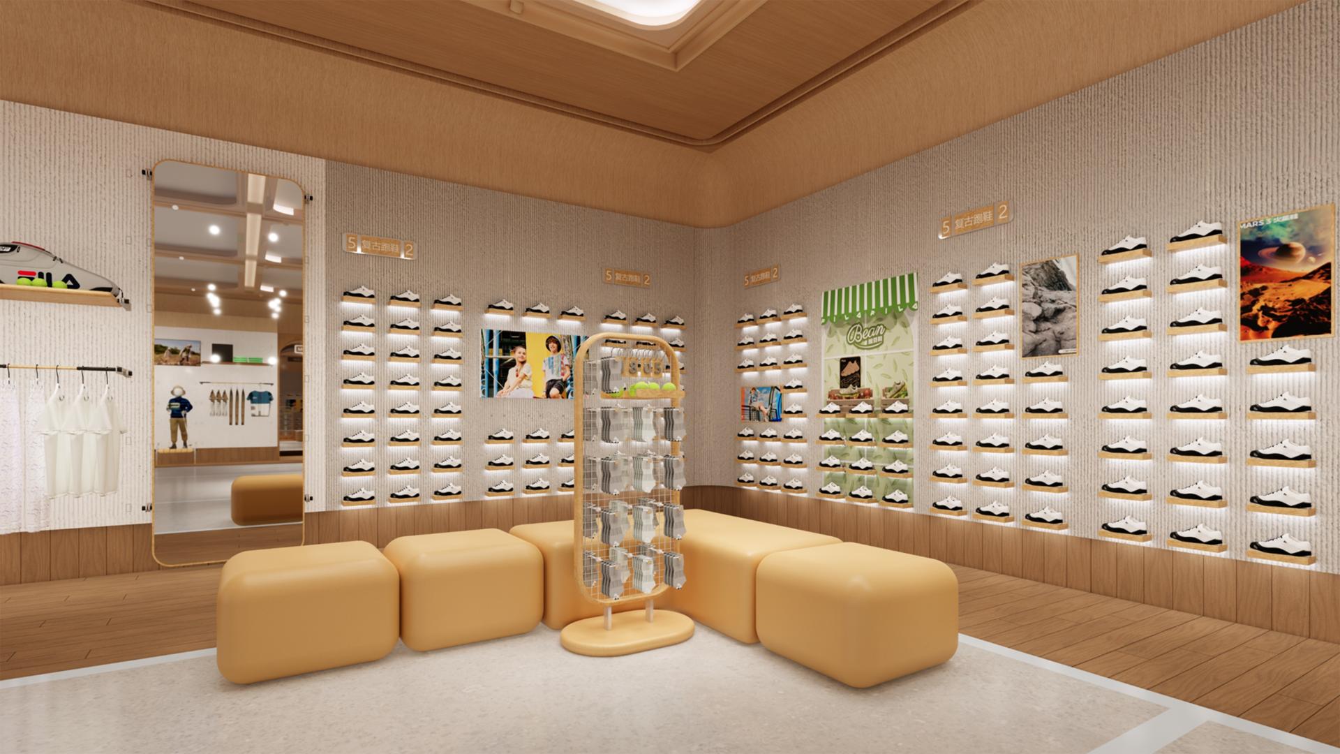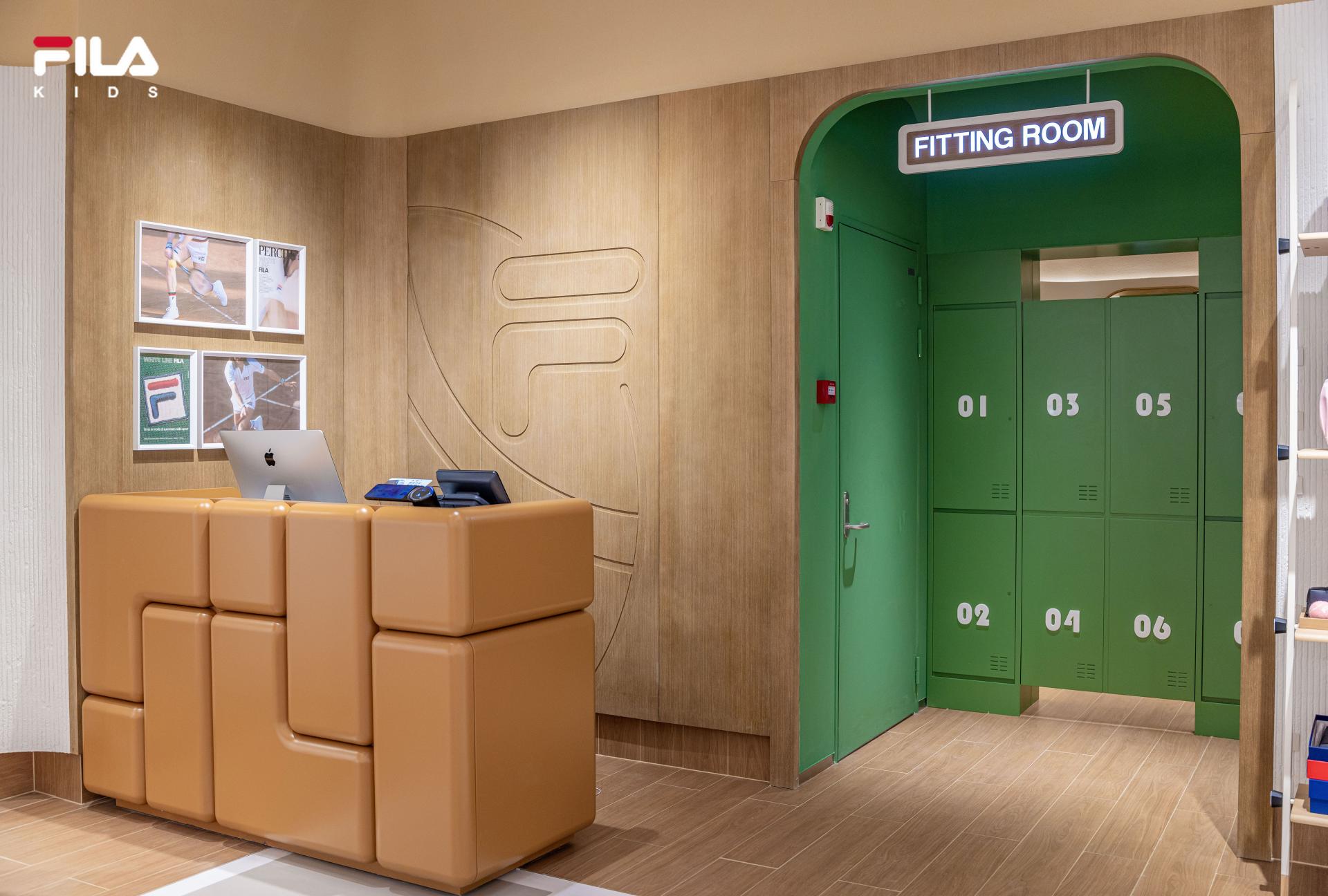 The store layout is clear and playful. Tennis court lines run across the sales floor to add fun, while the cashier area uses similar line patterns to highlight the brand logo. The fitting rooms follow a “LOCKER ROOM” theme, incorporating tennis-themed stories to make the experience more immersive. Child safety is a top priority: all furniture and island fixtures feature rounded edges to prevent children from getting hurt, creating a safe and worry-free shopping environment.