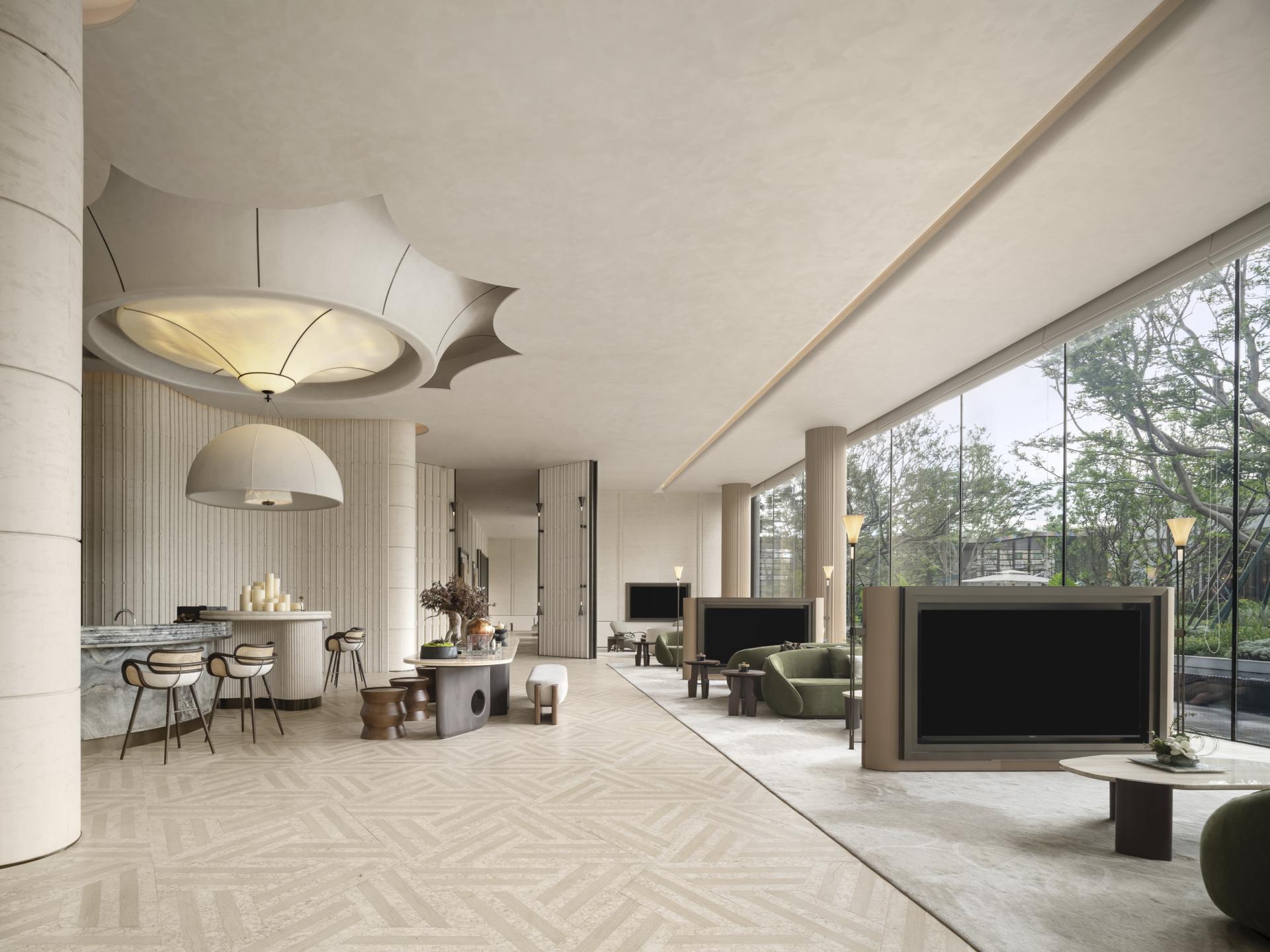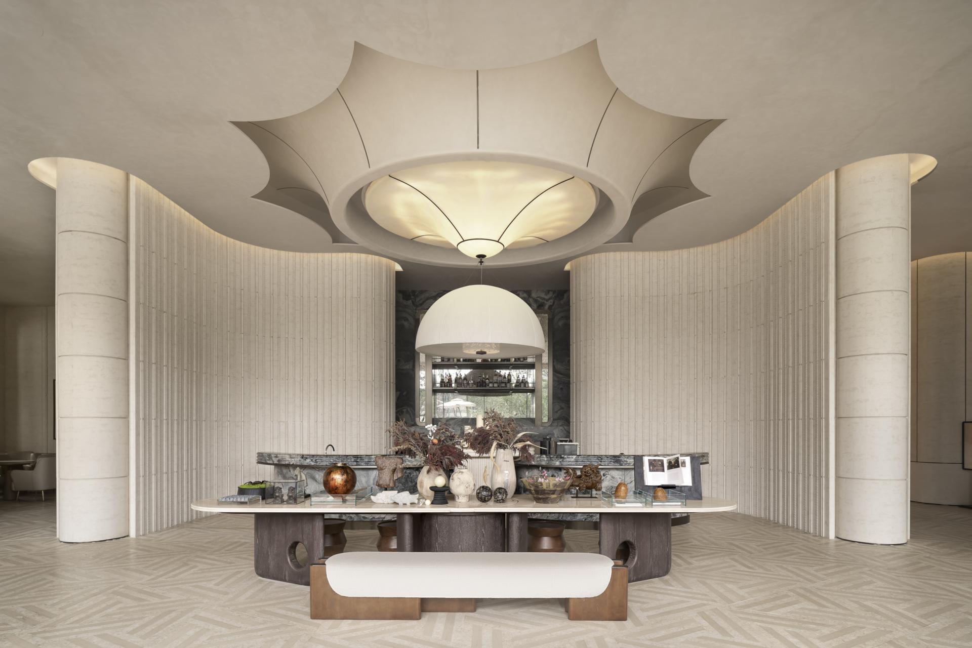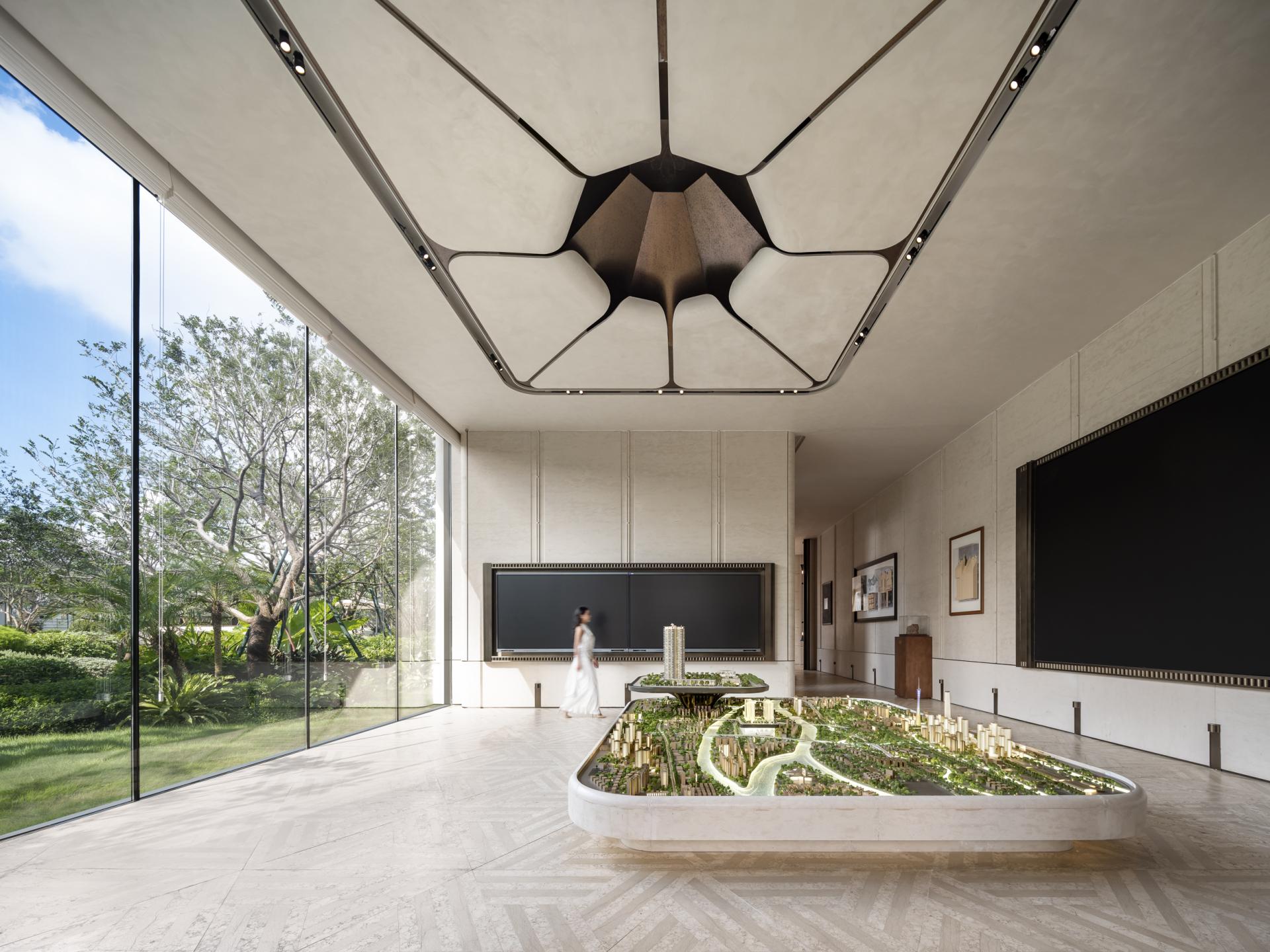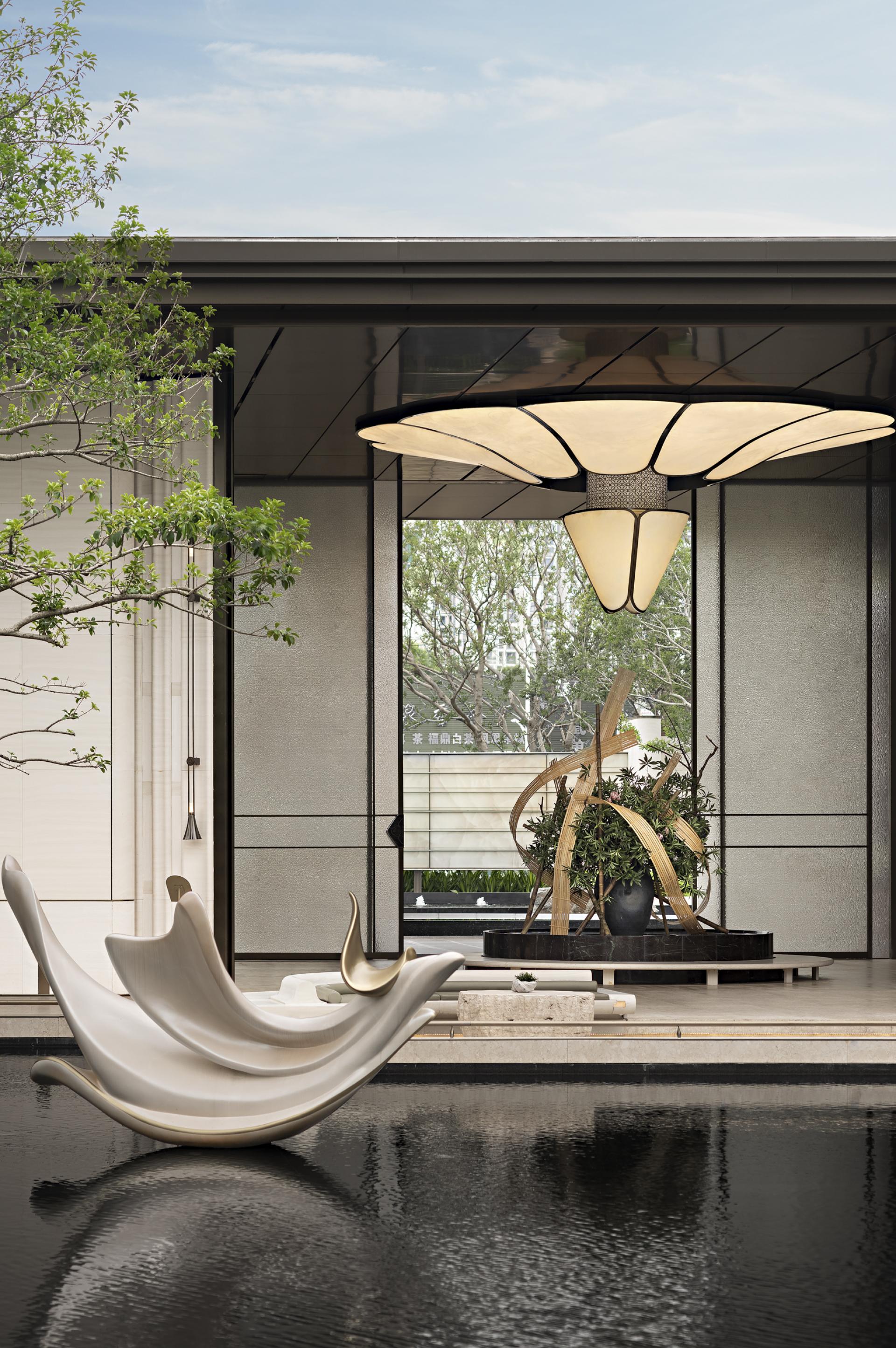 CENTRAL THRONE Marketing Centre draws inspiration from the Song Dynasty's ‘YU TANG ZHI LAN TU,’ blending the philosophical concept of ‘changing views with each step’ from Lingnan gardens with modern spatial aesthetics to create a flowing oriental lifestyle scroll. The design centres on the magnolia as the visual theme, using light and shadow narratives to construct a realm where reality and illusion intertwine.