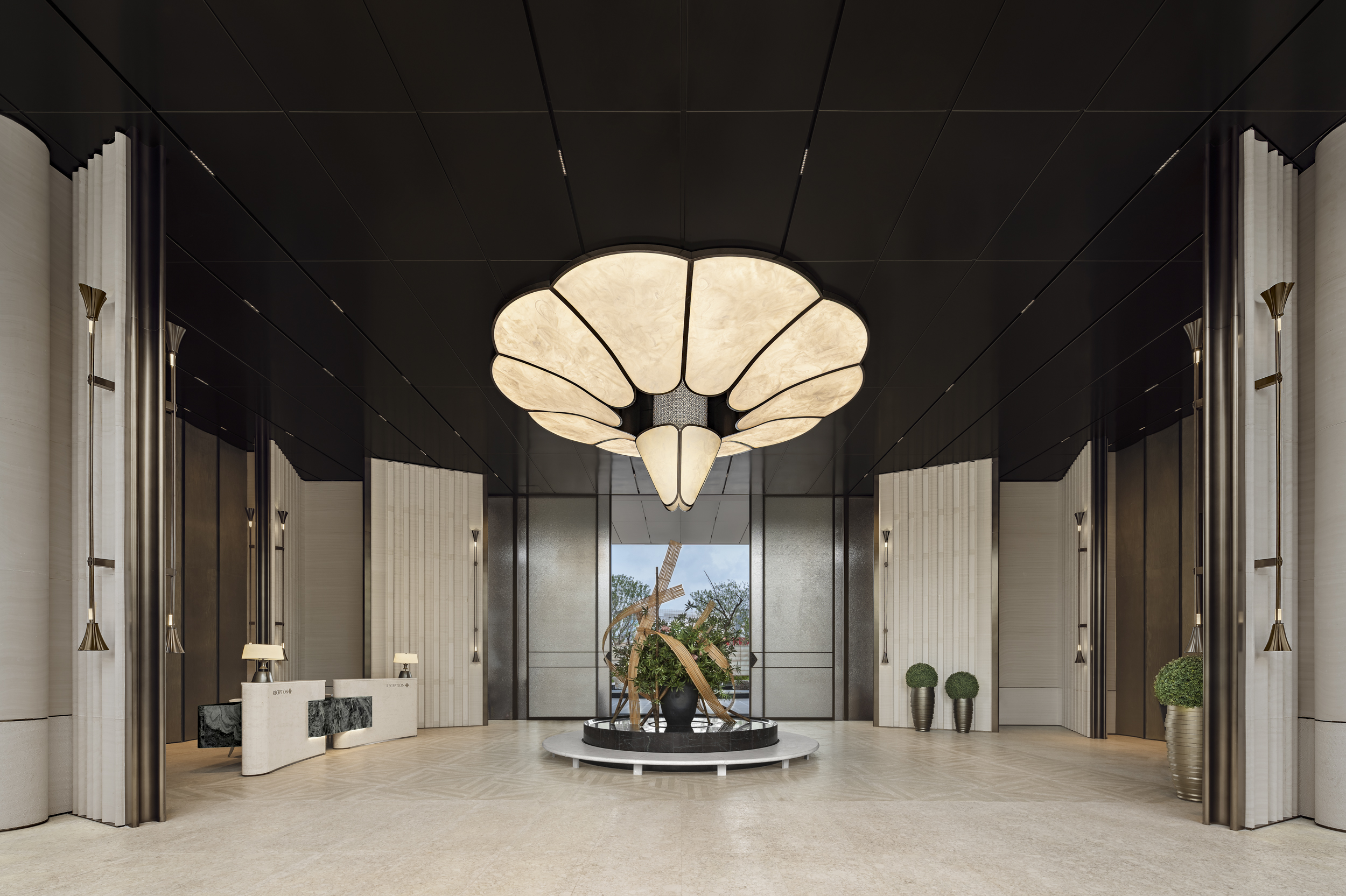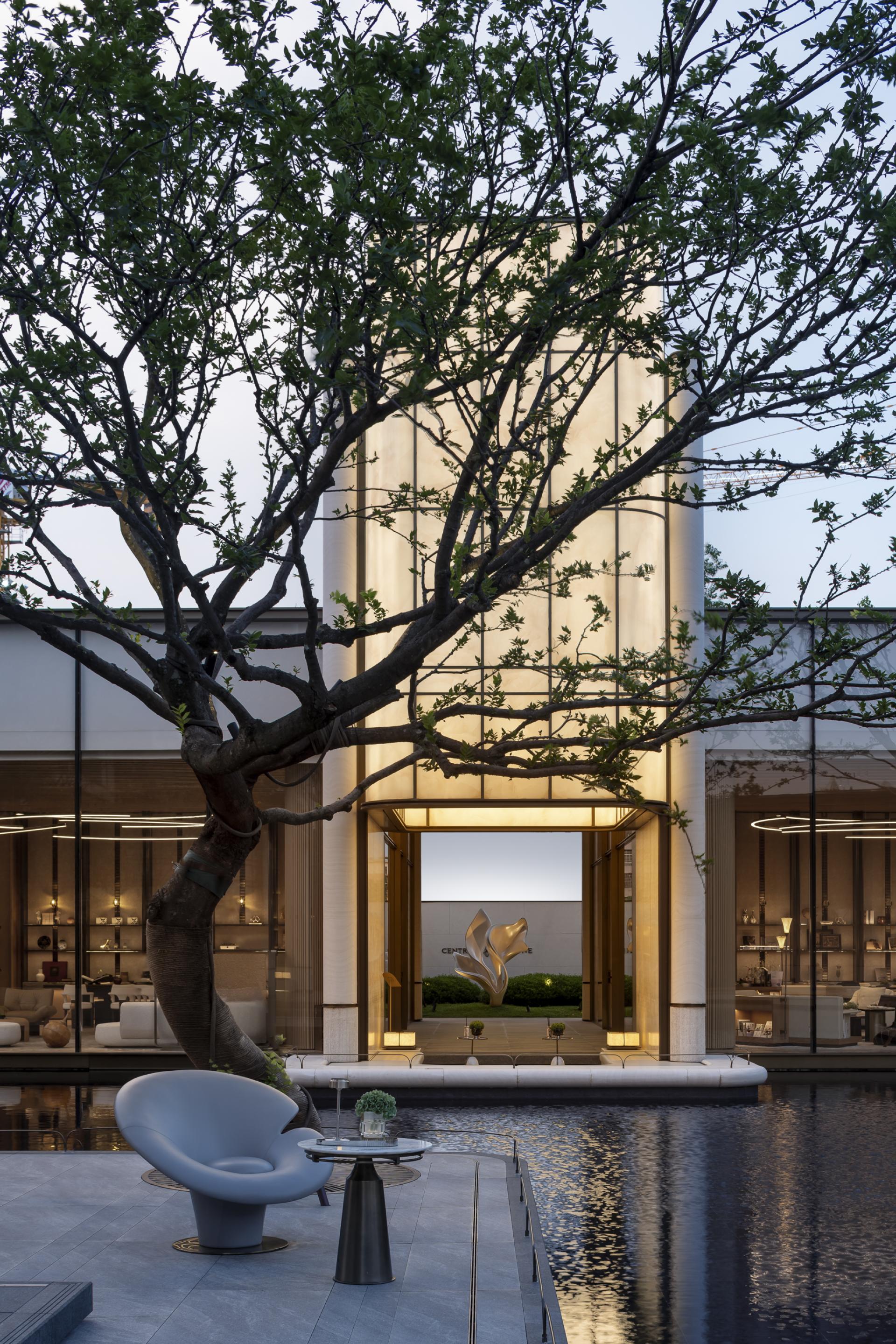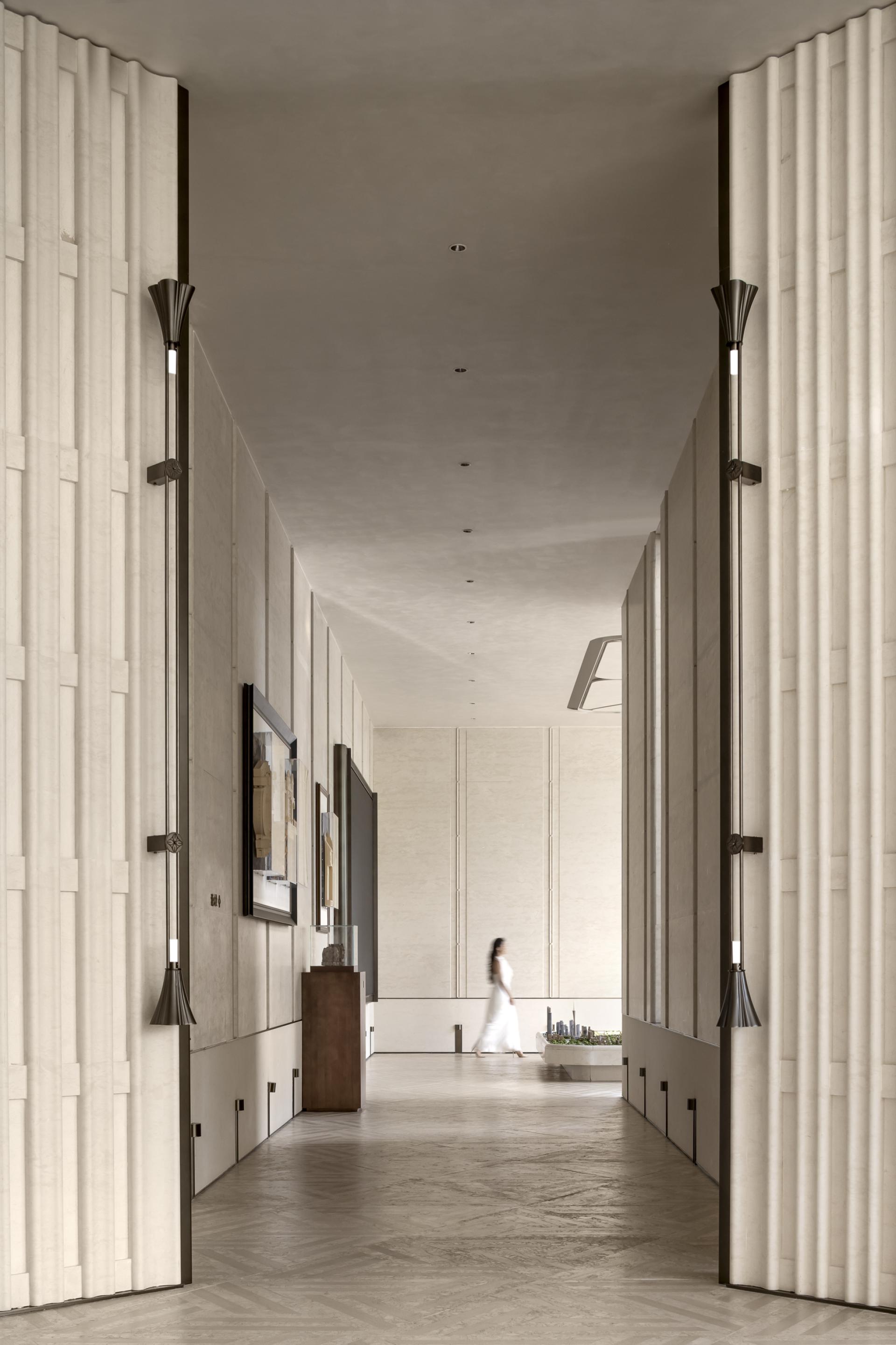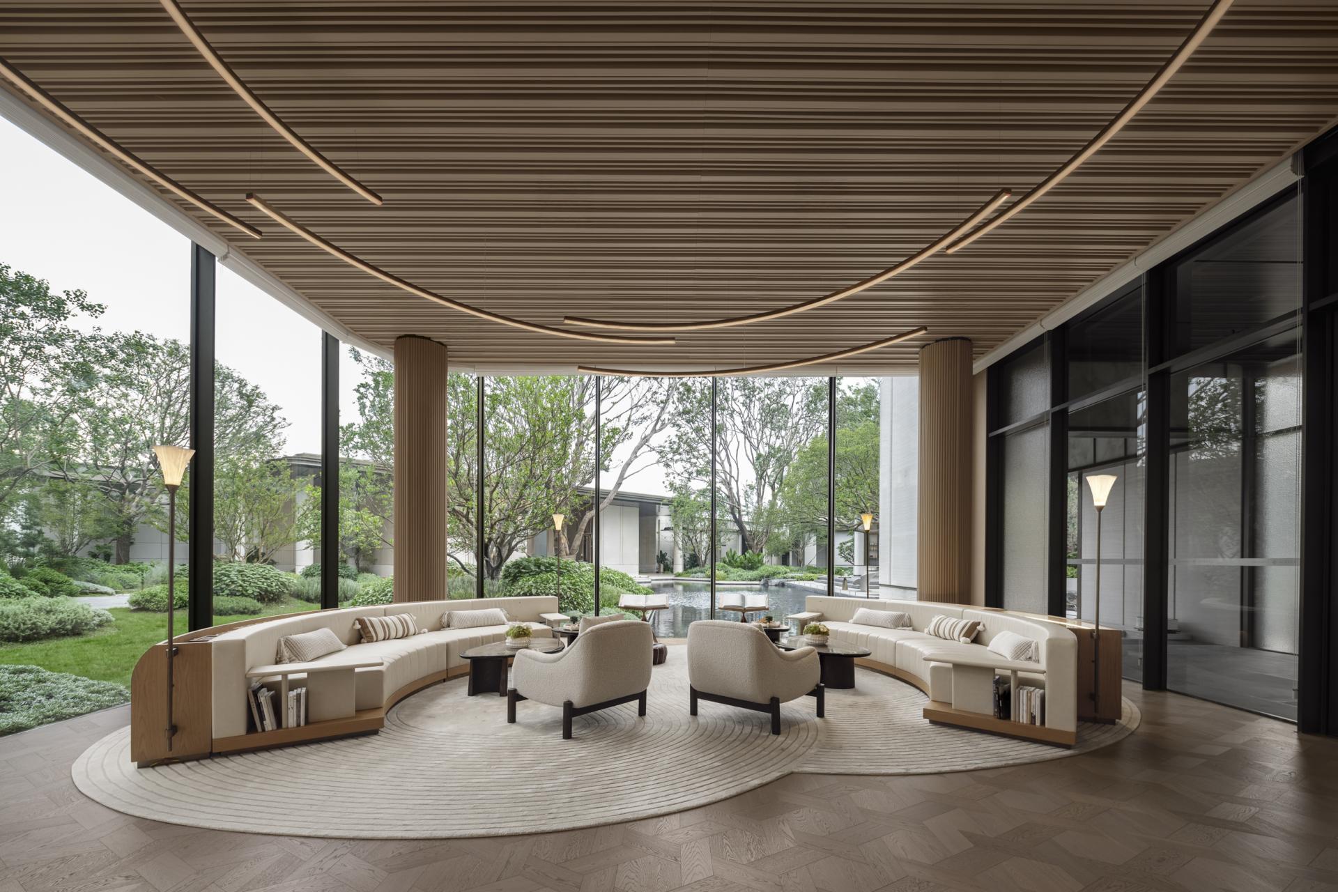 CENTRAL THRONE Marketing Centre draws inspiration from the Song Dynasty's ‘YU TANG ZHI LAN TU,’ blending the philosophical concept of ‘changing views with each step’ from Lingnan gardens with modern spatial aesthetics to create a flowing oriental lifestyle scroll. The design centres on the magnolia as the visual theme, using light and shadow narratives to construct a realm where reality and illusion intertwine.