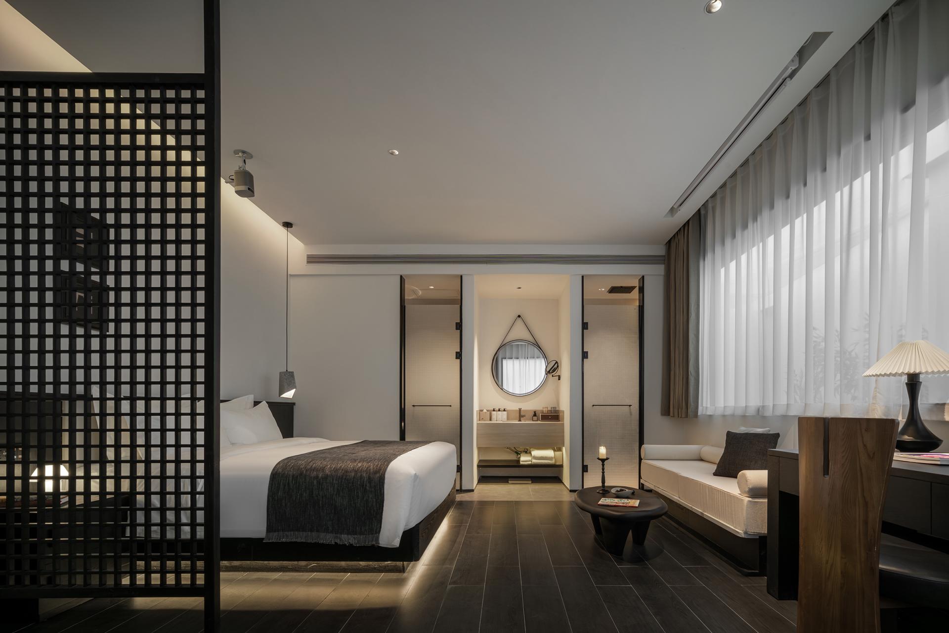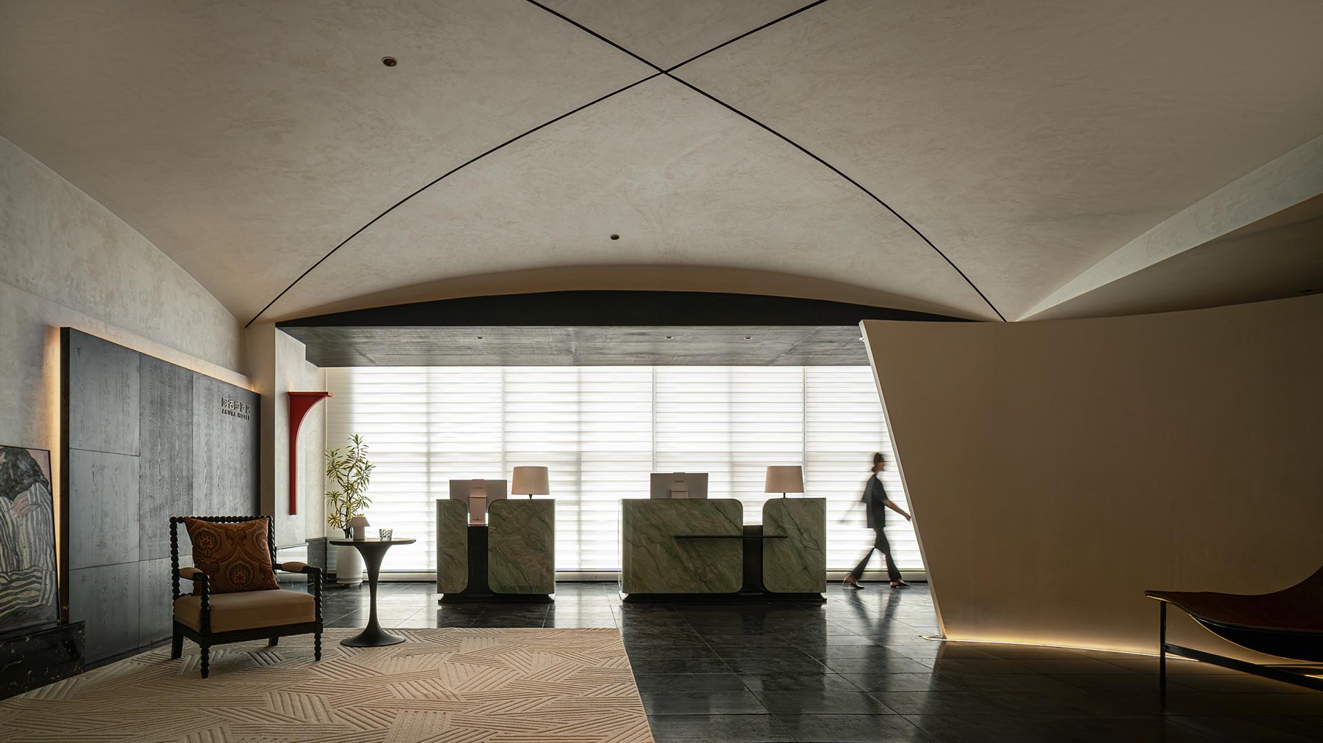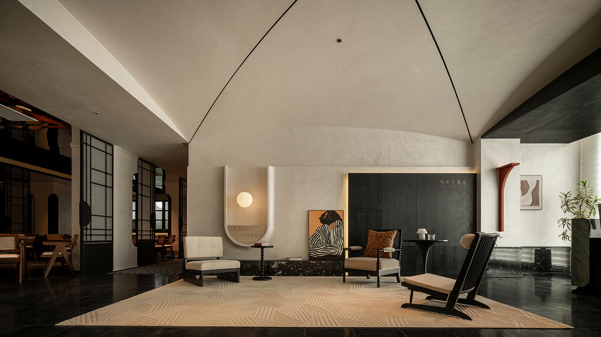 Compared with similar designs, its highlights are particularly distinct: the introverted courtyard design aligns with light and shadow control; the coarse-grained wall texture echoes the wind-eroded Yadan landform; the spatial negative space embodies the artistic charm of freehand brushwork in ink painting; the flexible lines interpret the softness and tenacity of silk; and the conical ceiling adds an extra touch of unique style.