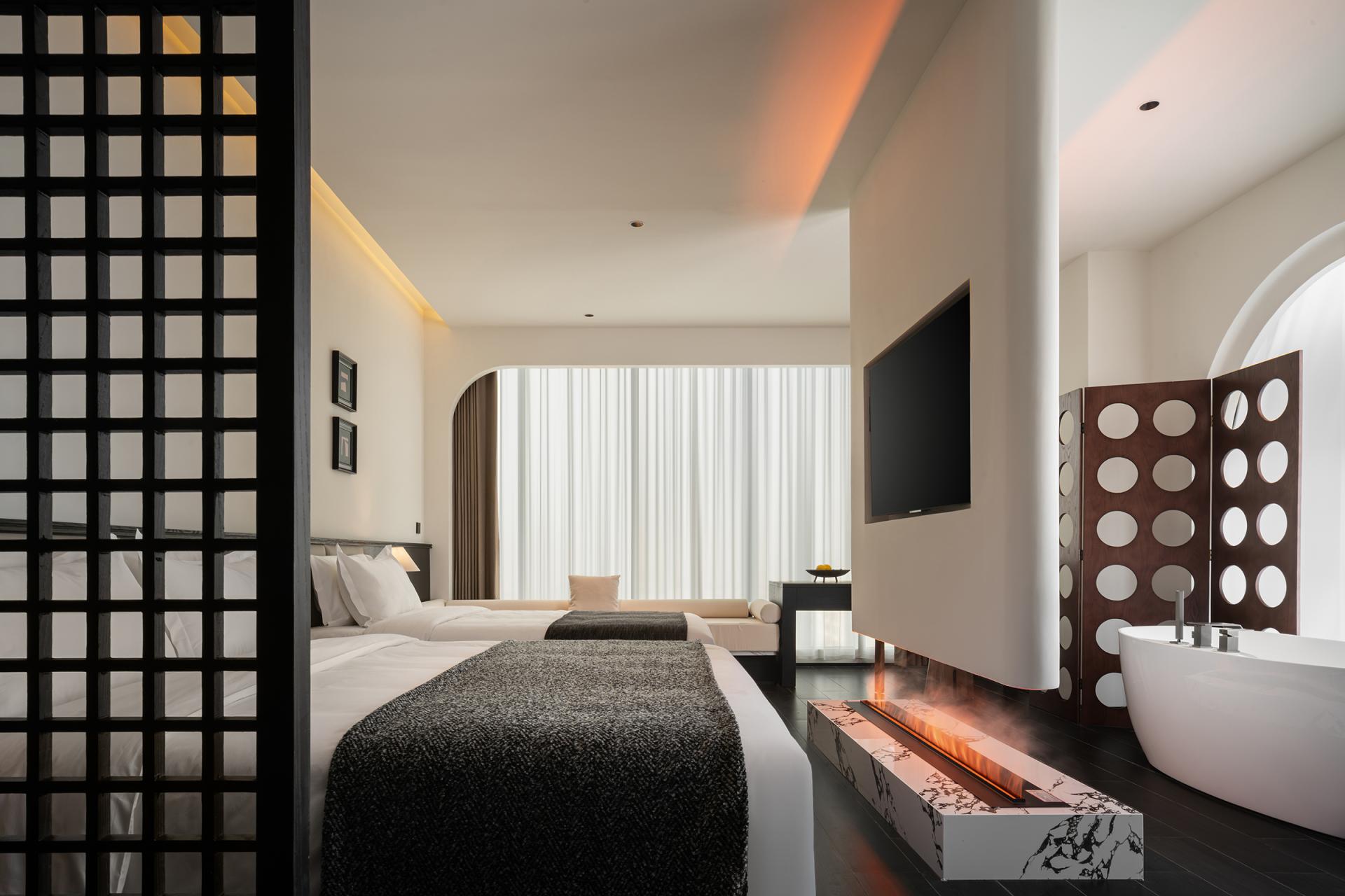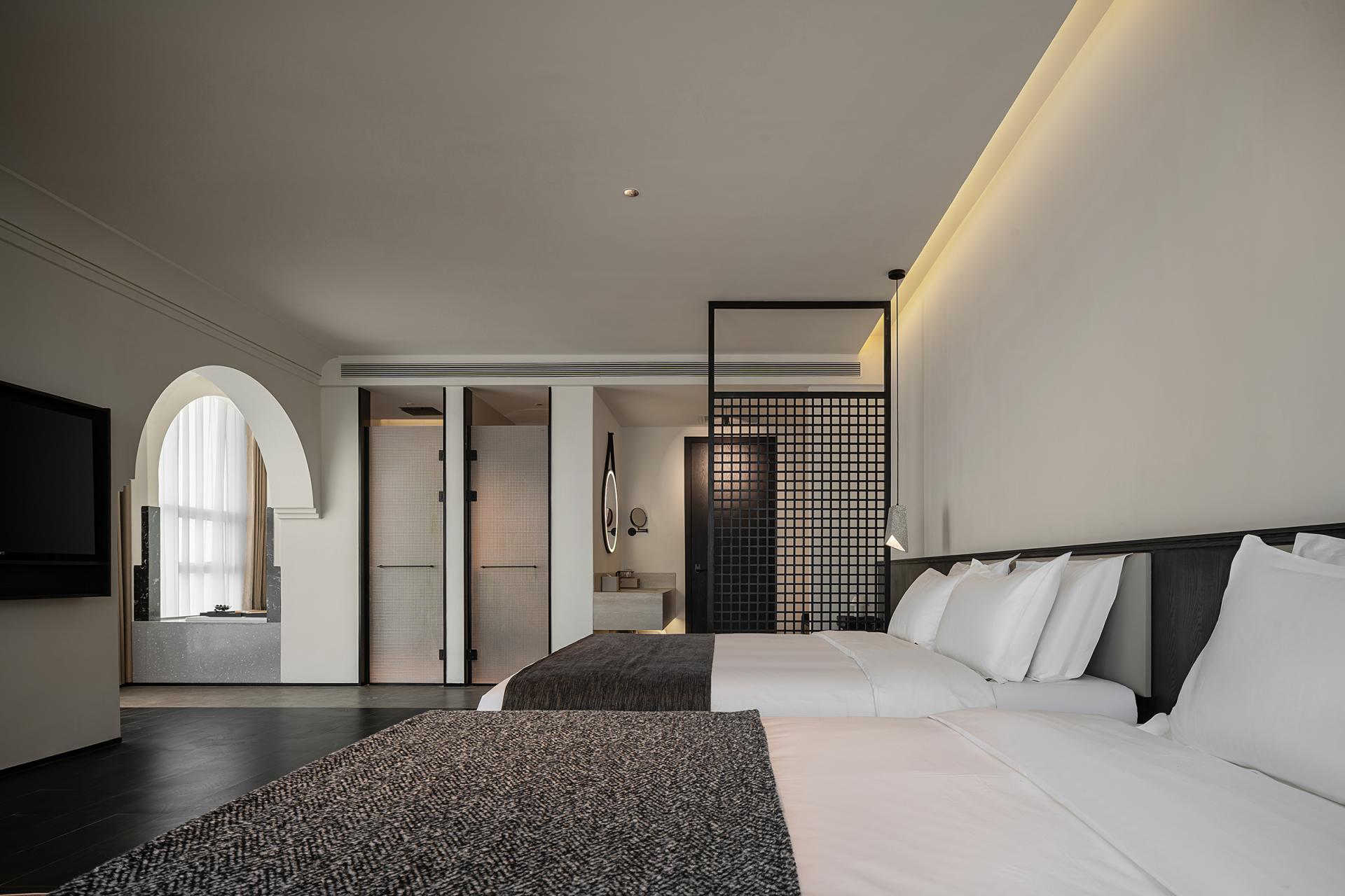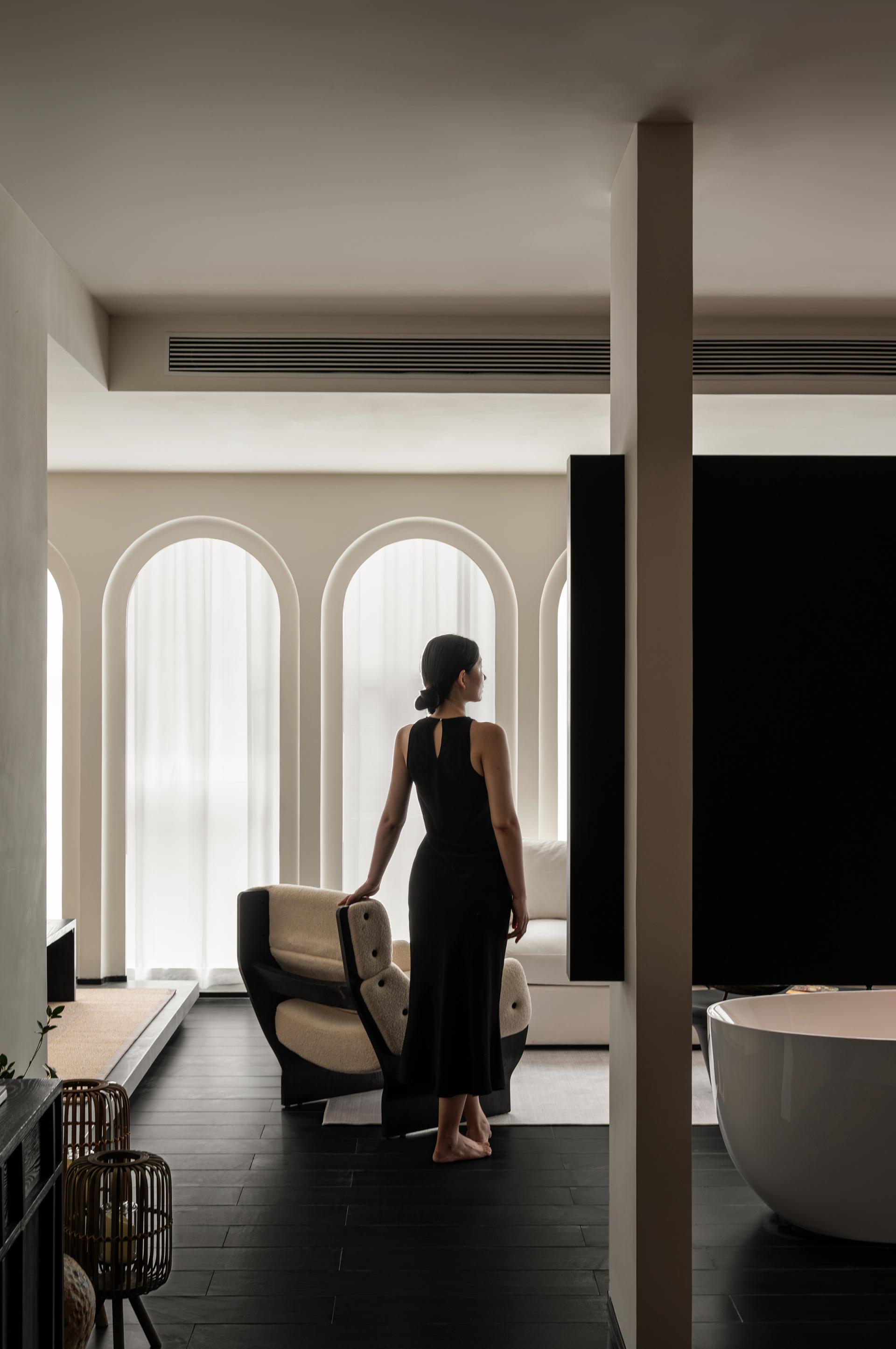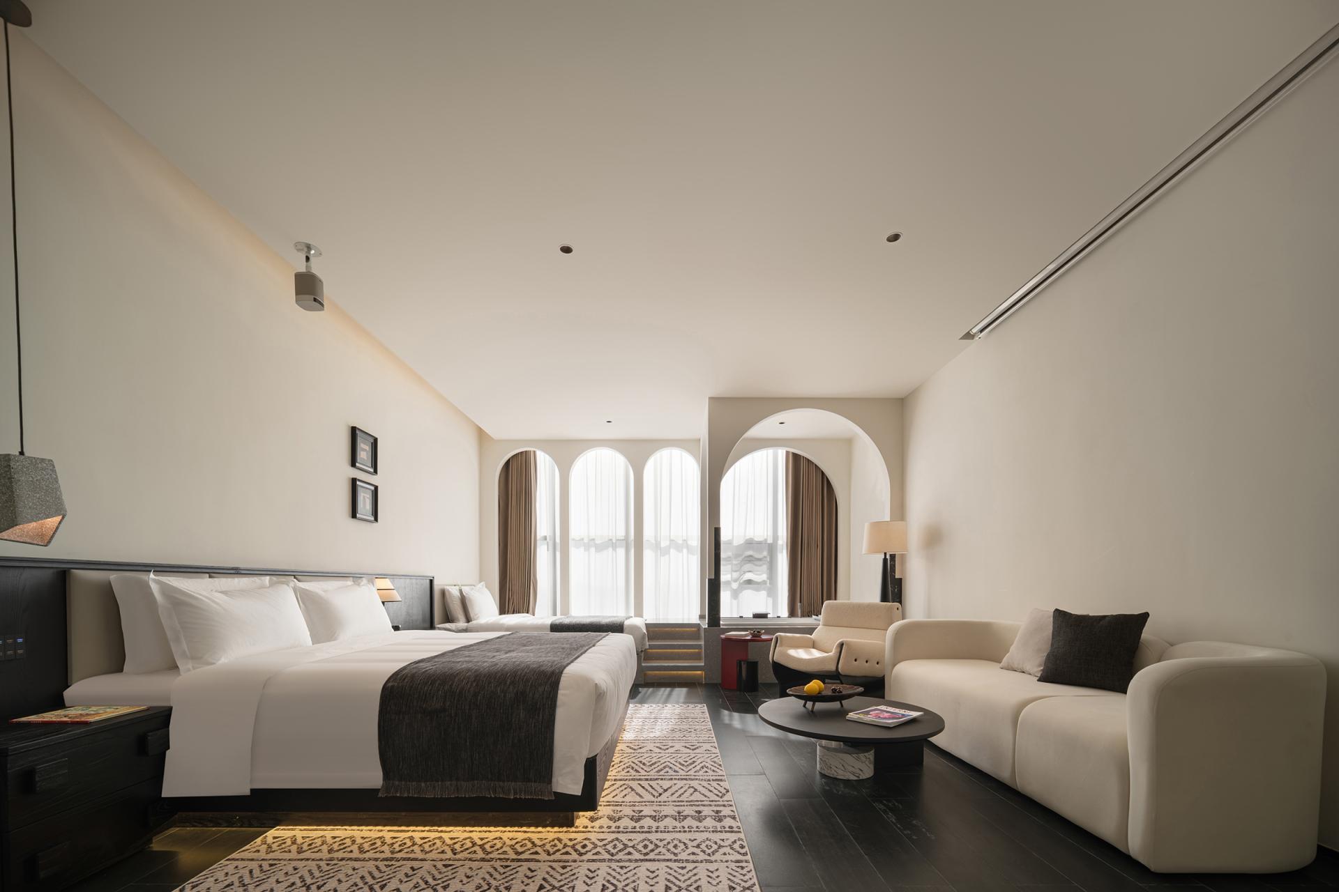 Compared with similar designs, its highlights are particularly distinct: the introverted courtyard design aligns with light and shadow control; the coarse-grained wall texture echoes the wind-eroded Yadan landform; the spatial negative space embodies the artistic charm of freehand brushwork in ink painting; the flexible lines interpret the softness and tenacity of silk; and the conical ceiling adds an extra touch of unique style.