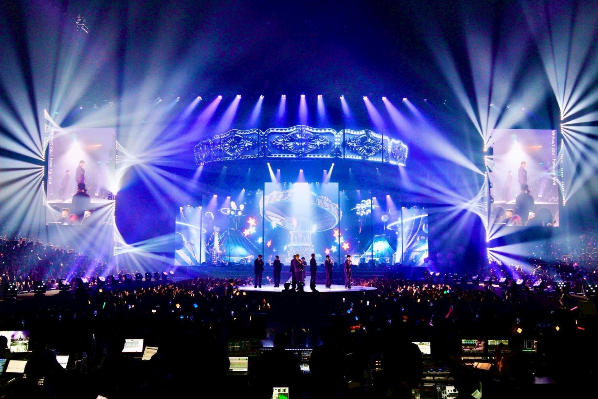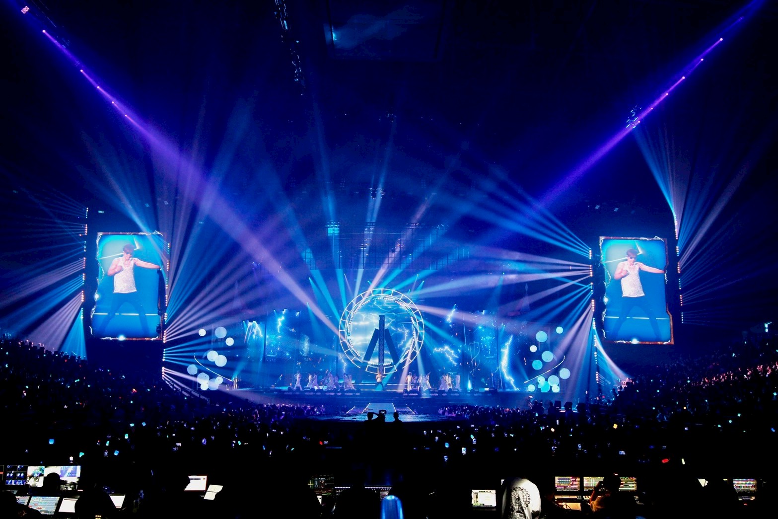 At the heart of the stage stood a custom Ferris wheel platform, symbolizing the cycles of thirty years and serving as the visual anchor. High-saturation neon tones conveyed the carnival-like vibrancy of the concept, while warm gradients and soft washes in ballads added layers of intimacy. In combination with lasers and video, the Ferris wheel became more than a scenic element—it was transformed into a luminous emblem of memory and connection.