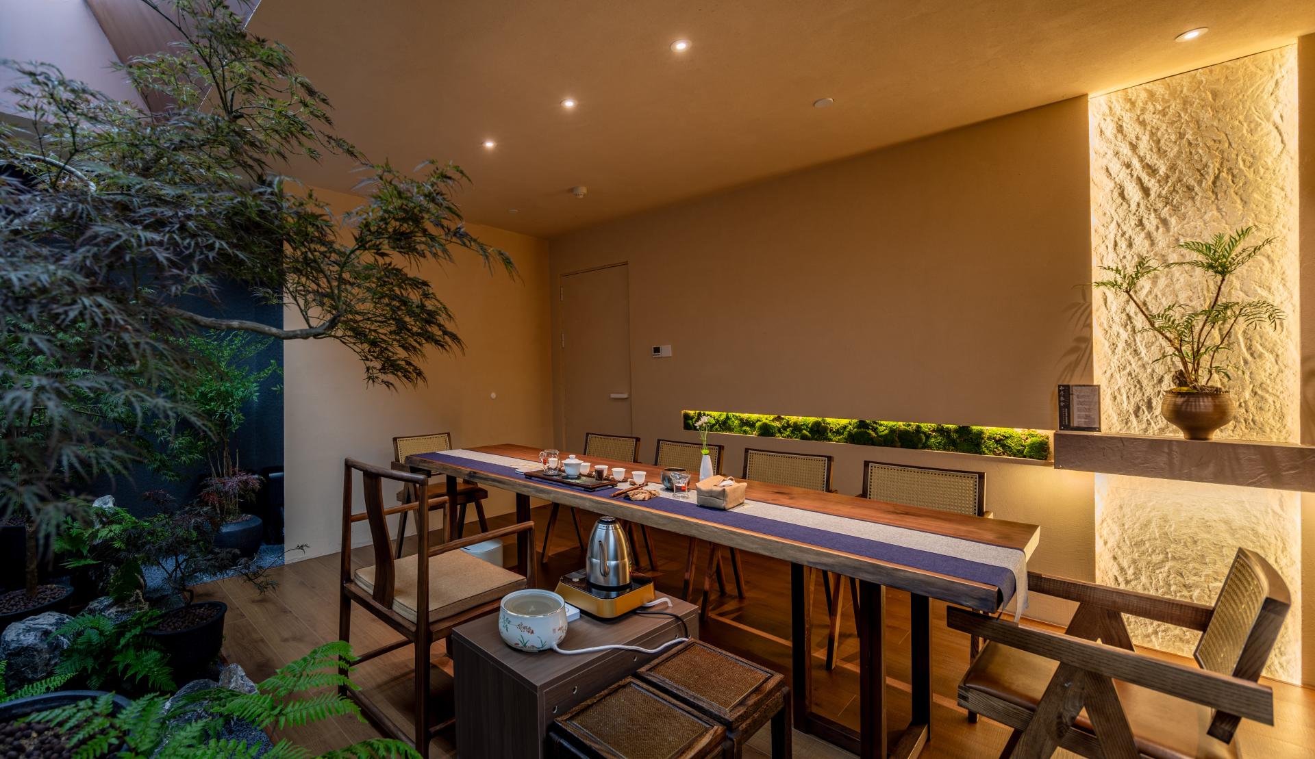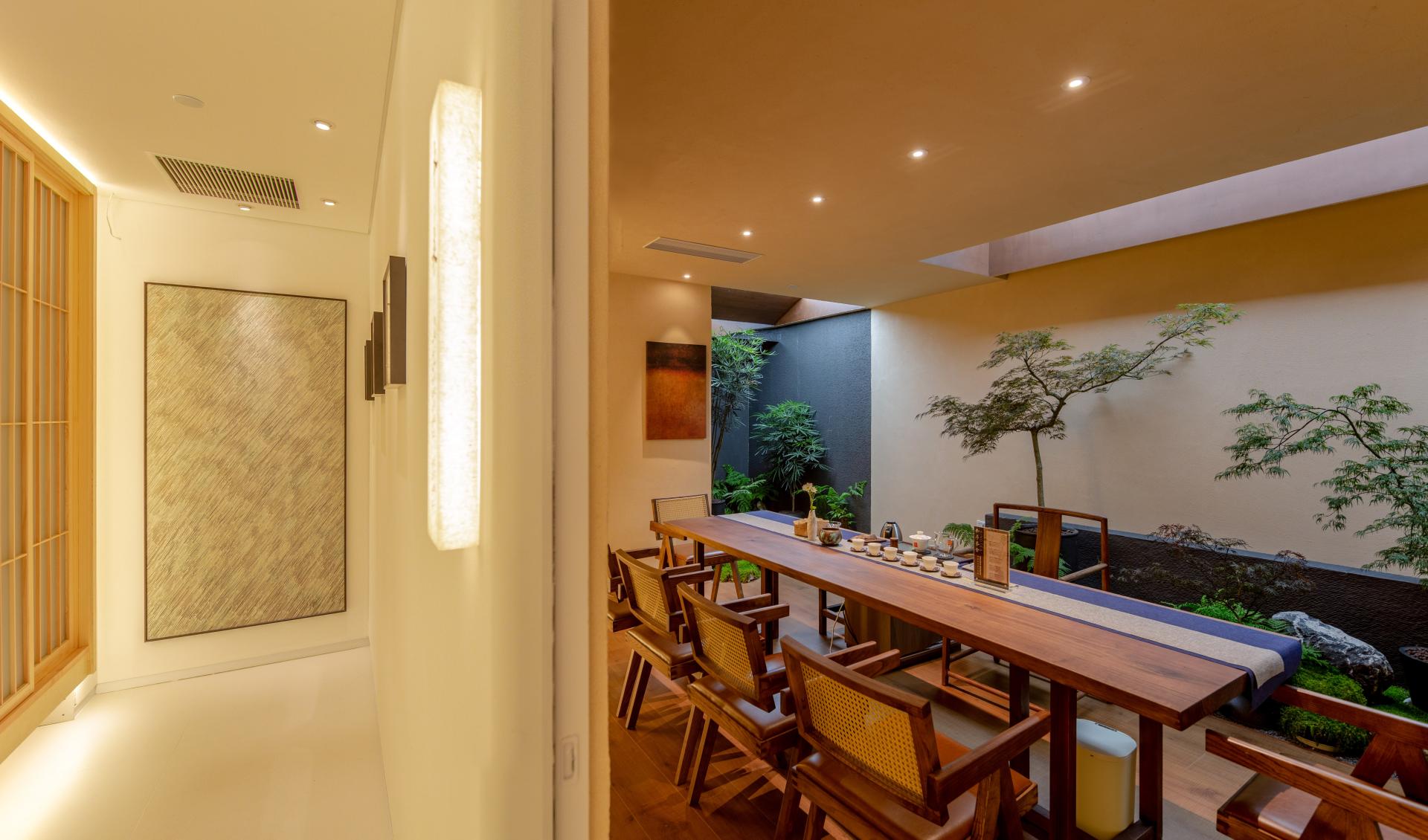 Within a limited 130-square-meter space, this project offers a modern interpretation of the traditional Chinese Taoist philosophy of Yin and Yang. The layout designates the central courtyard as "Yin" and the four private tea rooms as "Yang." Between them, six inner courtyards of varying scales are skillfully embedded, forming a spatial sequence where substance and void generate one another, creating a natural flow of energy.