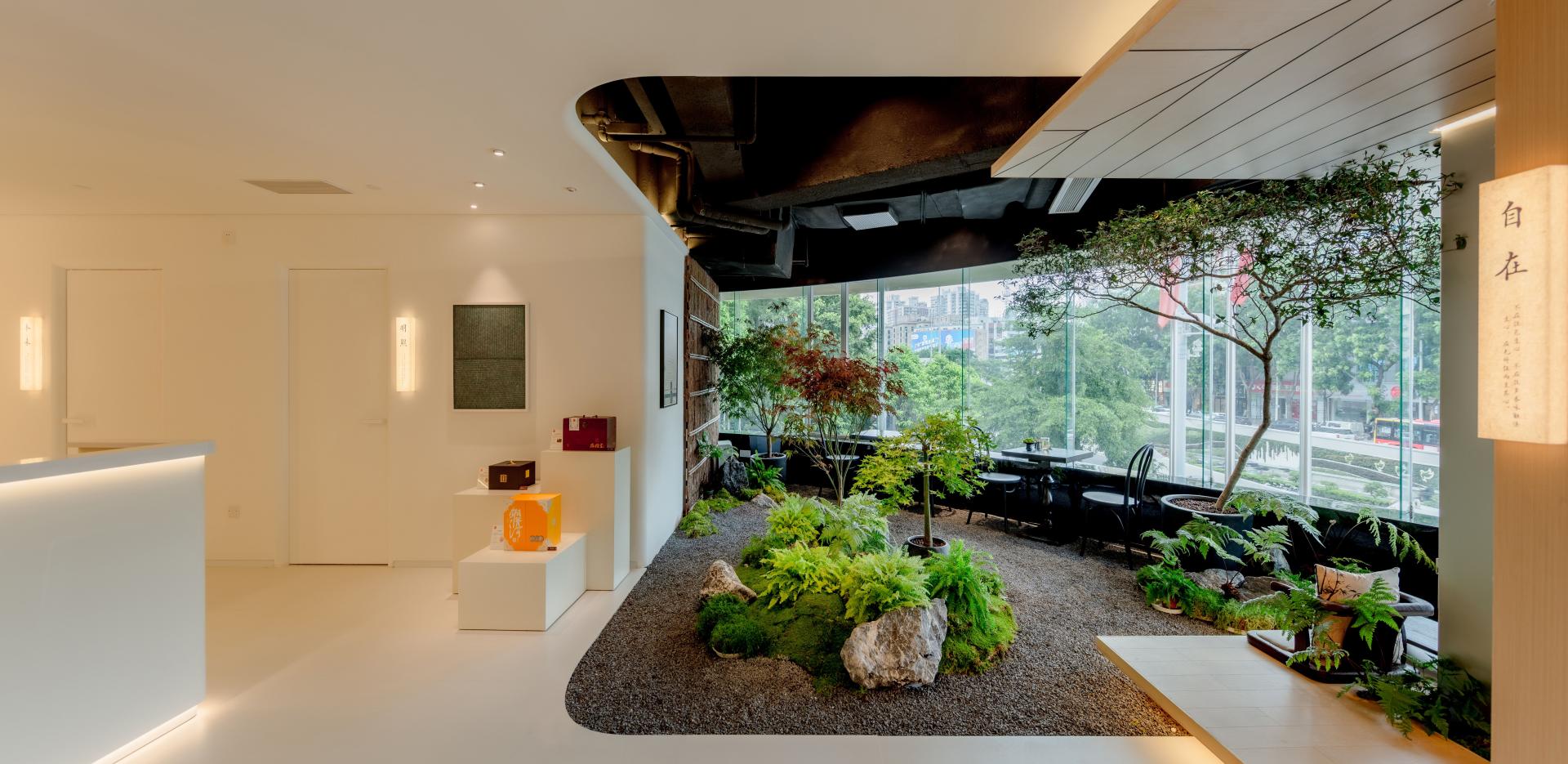 Eastern aesthetics champion the idea that "while words are finite, meaning is infinite." Grounded in the philosophy of Yin and Yang, the design unfolds boundless imaginative possibilities for life's atmosphere within a compact domain, distilling an Eastern spirit into a contemporary experience. We are dedicated to reinterpreting the spatial form of the Eastern teahouse through a contemporary aesthetic language. By combining traditional furniture design with modern spatial strategies, and setting eco-friendly materials against lush greenery, we have constructed a physical space that embodies both Eastern heritage and a modern spirit.