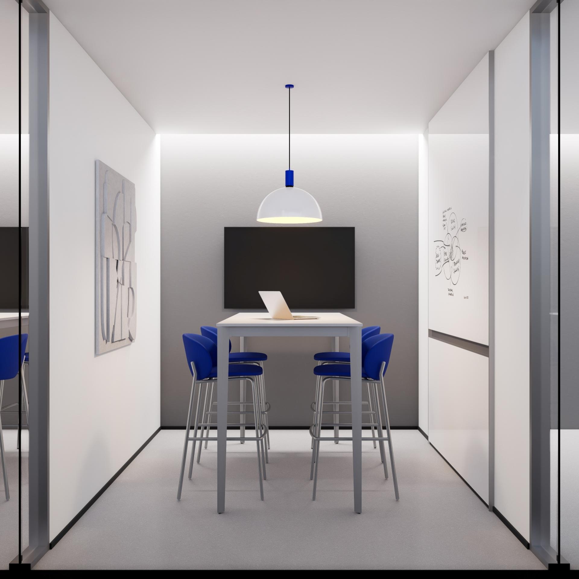Design Specifications: Rooted in KIMD’s products and corporate identity, this project aims to craft a minimalist, future-oriented interior. The spatial strategy relies on subtraction—pared-back forms and the most unadorned materials are used to reveal the space’s inherent tension. Extracted from the KIMD logo, accents of blue and orange punctuate the palette, providing striking focal points.