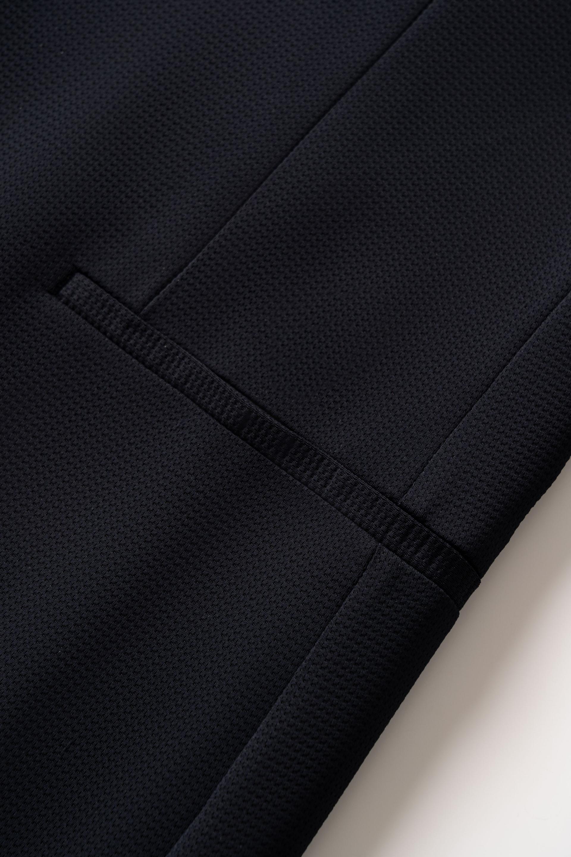 This high-stretch blazer strikes a perfect balance between wearing comfort and business elegance, which is adaptable to diverse scenarios such as meetings, business trips, and casual social engagements. Its innovative composite structure ingeniously combines the woven microporous mesh with the heat-activated fixing bands: the naturally textured woven microporous mesh presents an upscale aesthetic and features excellent breathability; inside, the heat-activated fixing bands replace traditional stitches to minimize friction and unevenness, ensuring wearing comfort and maintaining a crisp, sharp silhouette. The structure also eliminates the need for linings, breaking away from the limitation of traditional blazers relying on linings to maintain the original silhouette—further enhancing breathability and visual lightness. Such a product achieves the human-centric evolution from ‘aesthetic elegance’ to ‘comfortable elegance’.