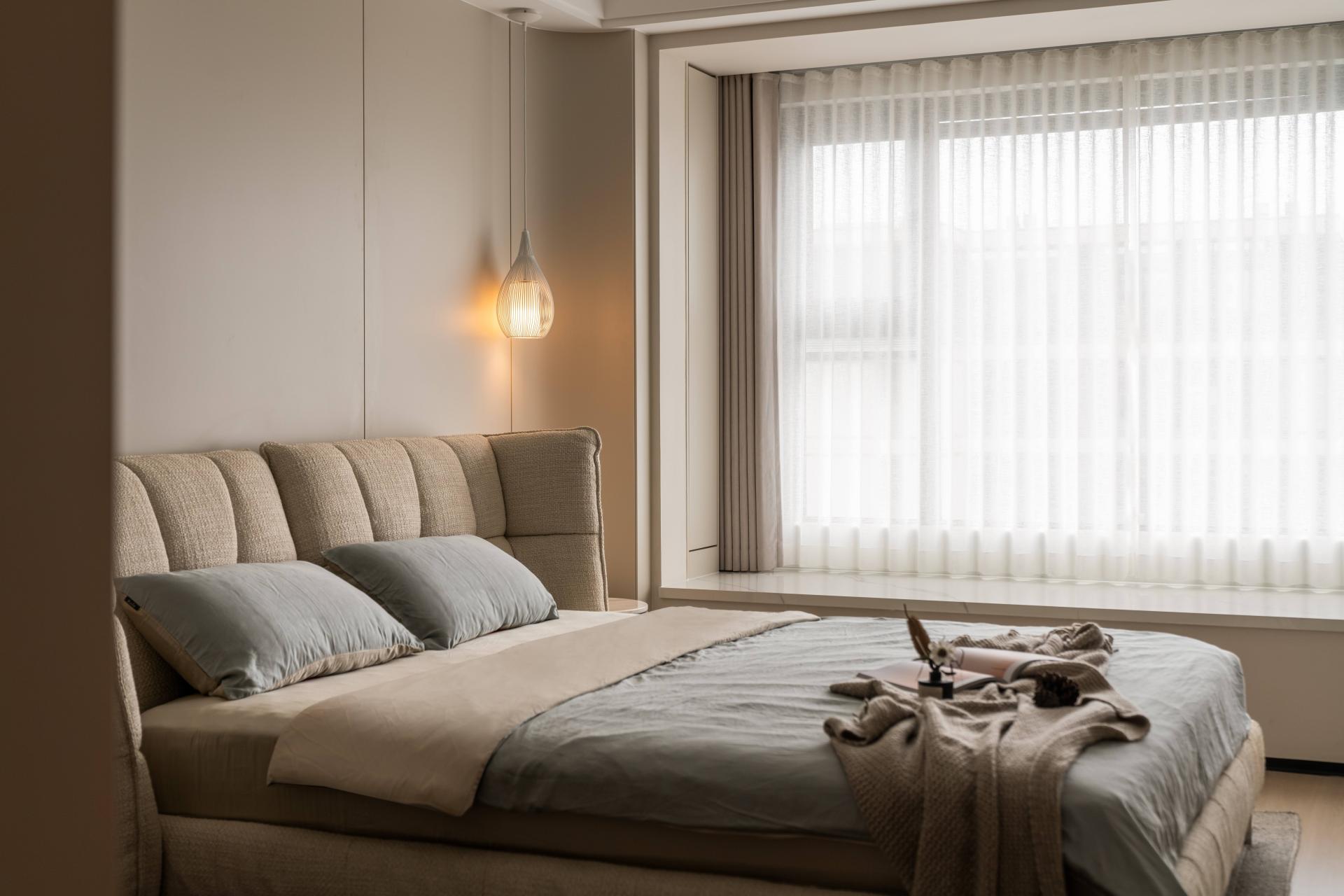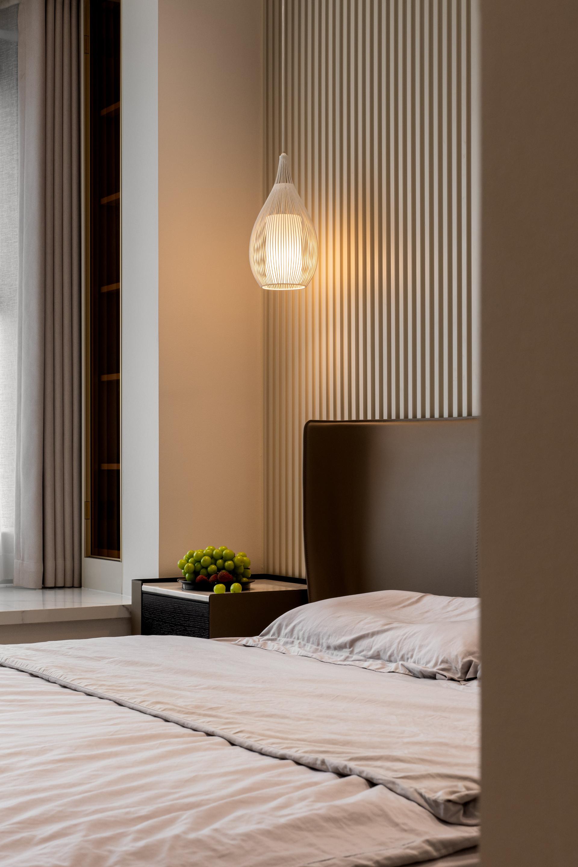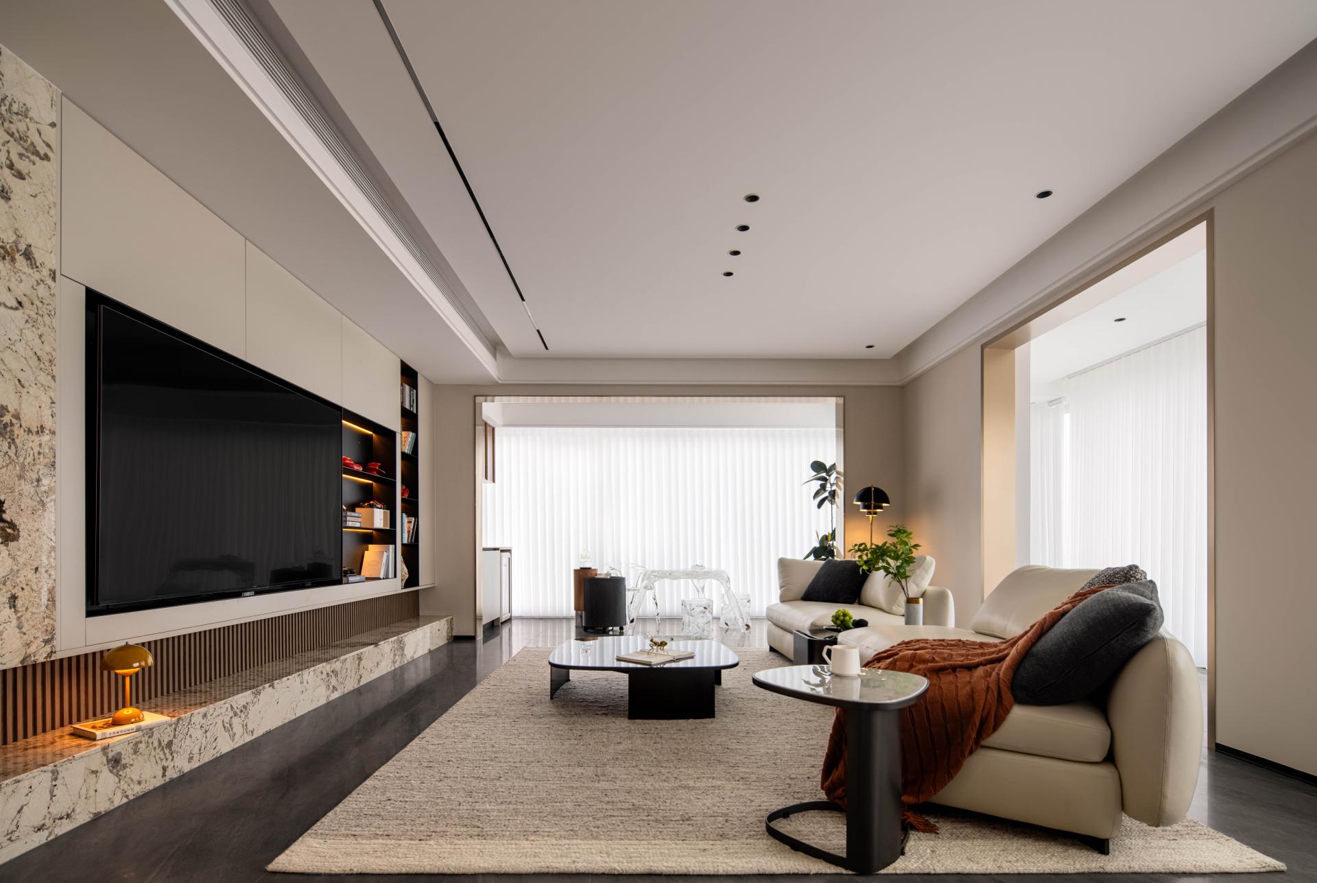 The kitchen employs hidden sliding glass partitions to switch between transparency and privacy, resolving the demands of open planning and Chinese cooking. The master suite integrates bedroom, wardrobe, and bathroom into one fluid sequence, anchored by a 12-meter custom storage system combining display and practicality. Bathrooms feature refined contrasts of stone and metal, echoing hotel-level sophistication. Secondary bedrooms and study areas maximize efficiency through multifunctional layouts that serve work, leisure, and guest accommodation.