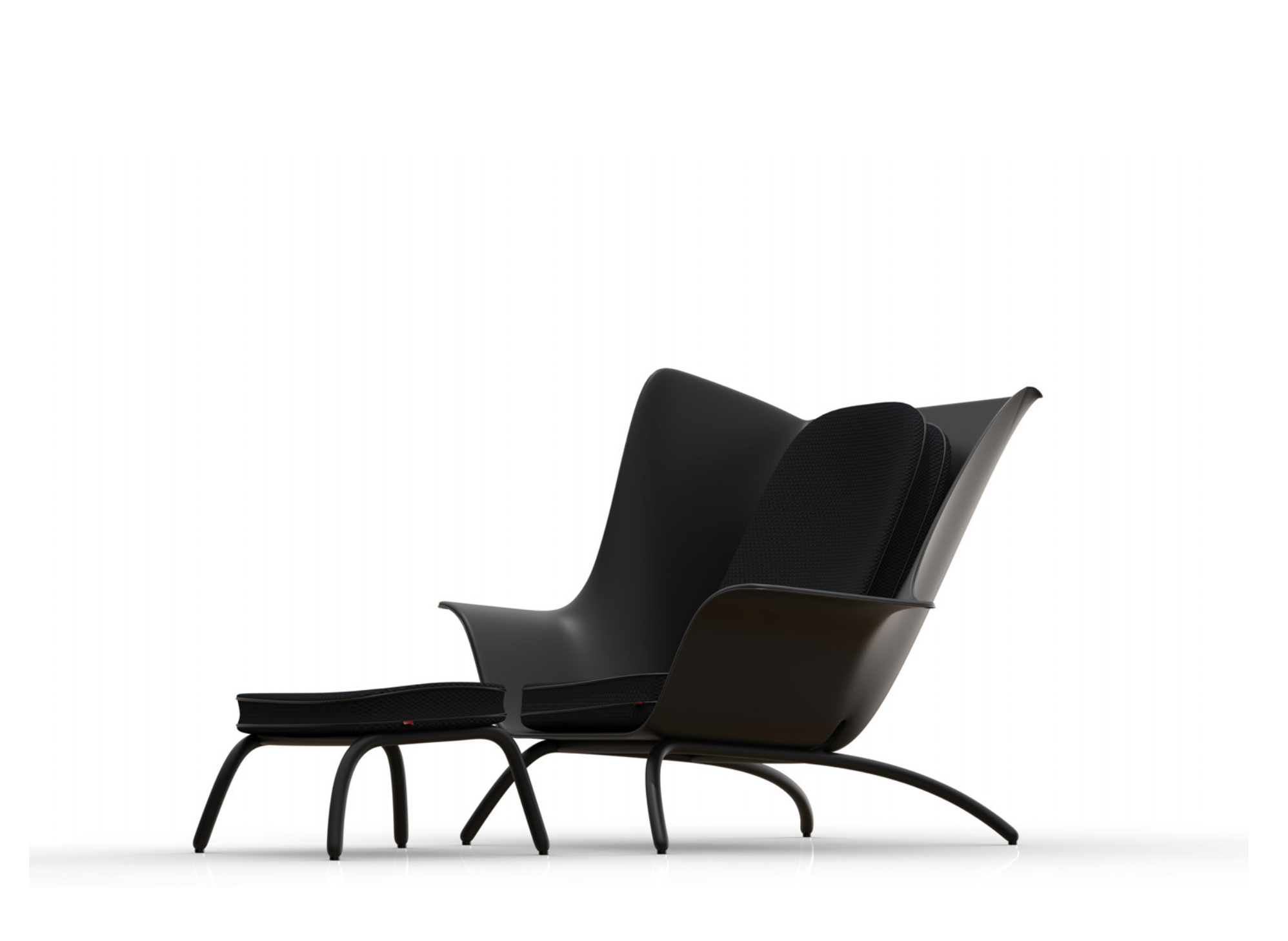 Calma is a sculptural lounge chair inspired by the fold of a leaf. Made from recycled plastic, aluminum, and high-performance fabrics, it blends sustainability, durability, and elegance for both indoor and outdoor living.