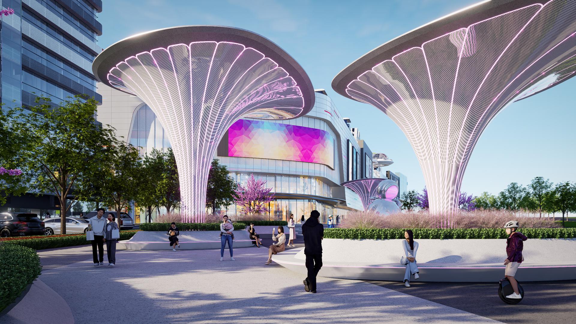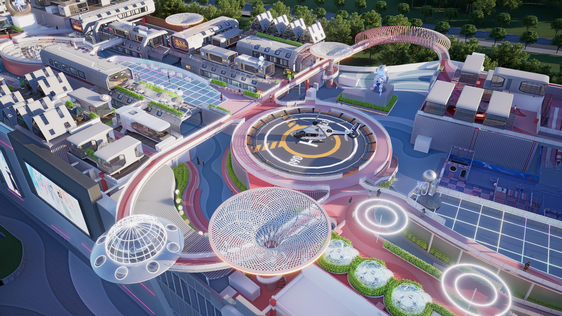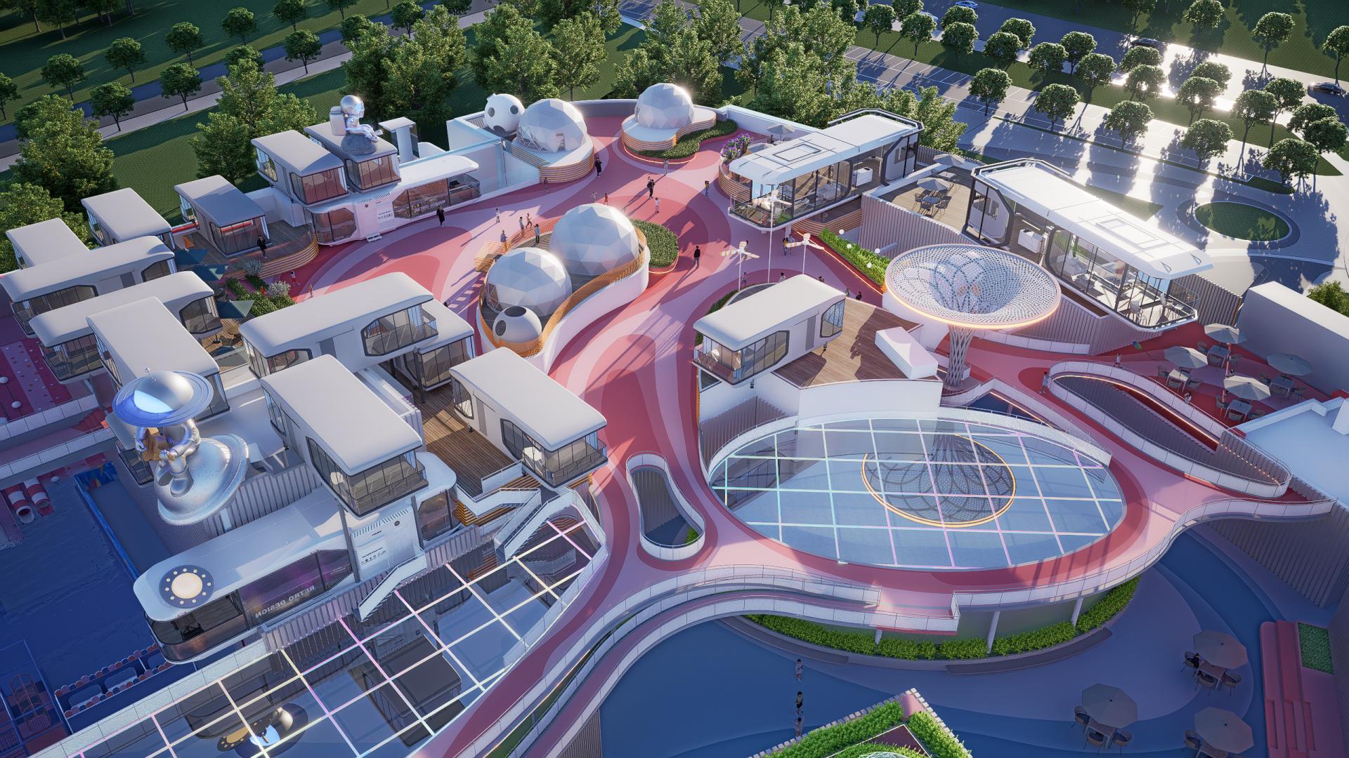 我们坚信,真正的未来感是人与自然的共生。项目将绿色生态理念植入“太空基地”的肌理: