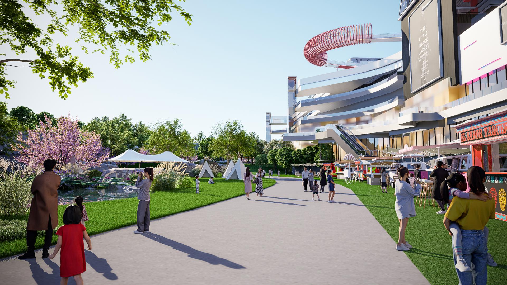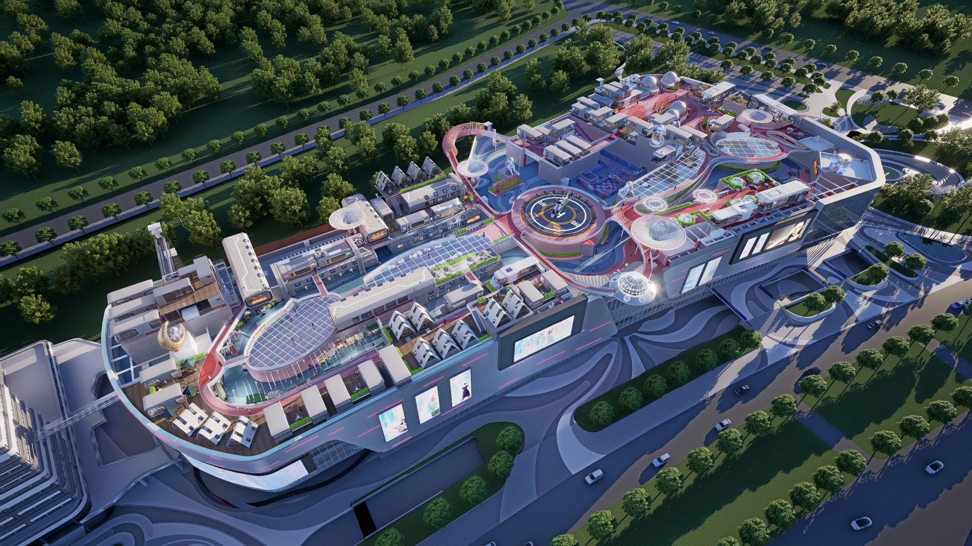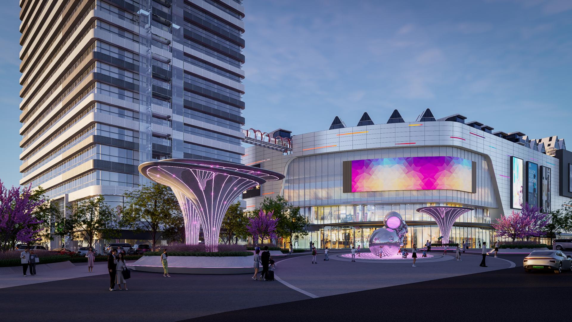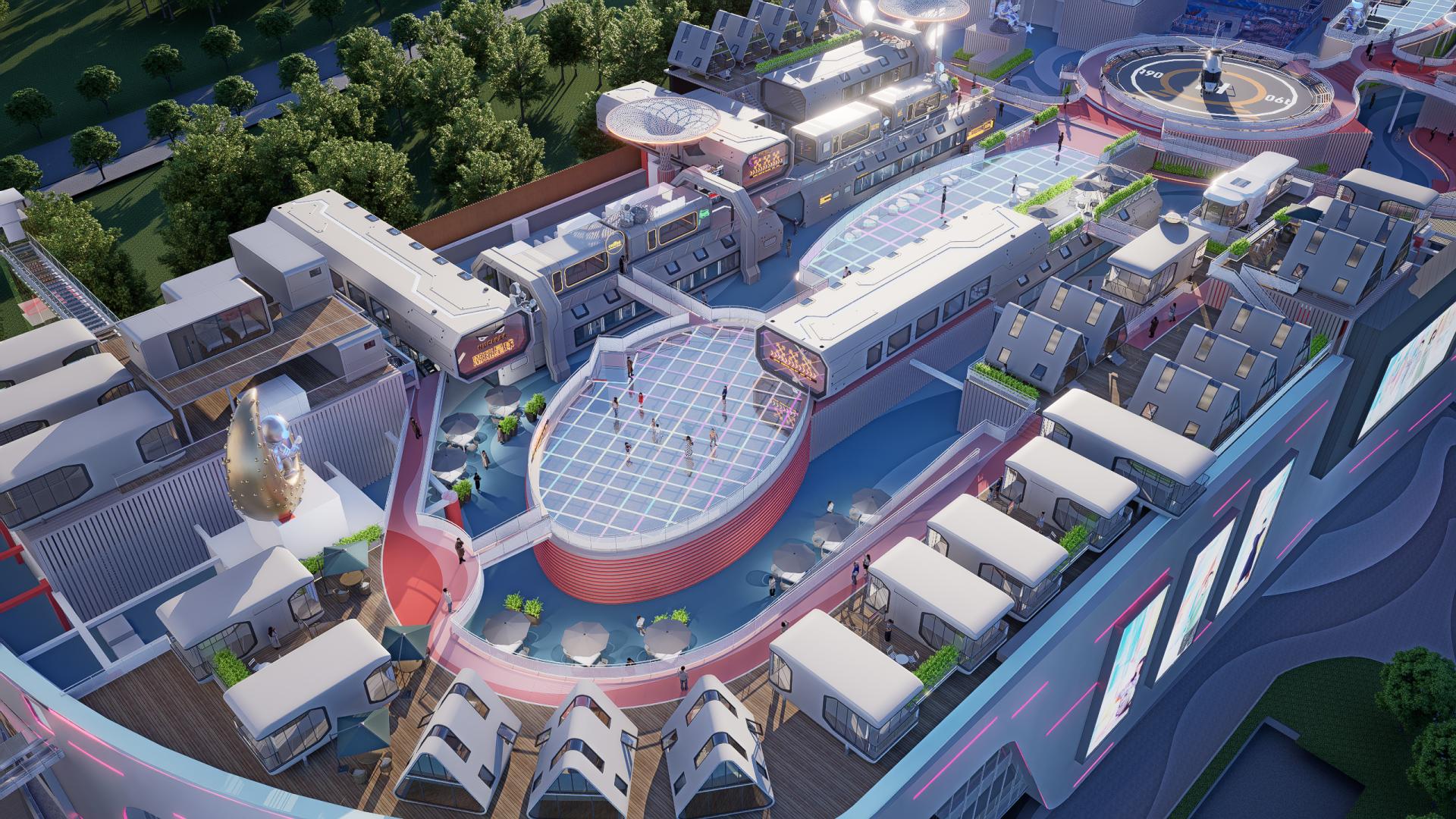 我们坚信,真正的未来感是人与自然的共生。项目将绿色生态理念植入“太空基地”的肌理: