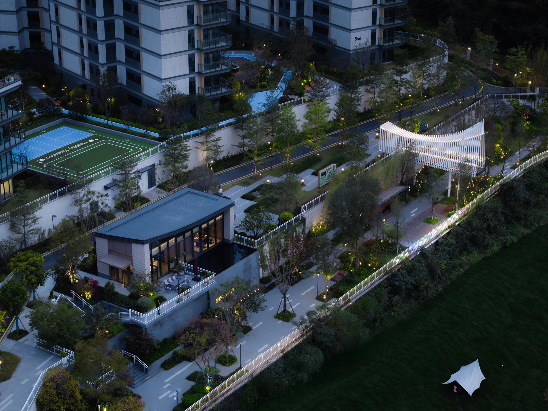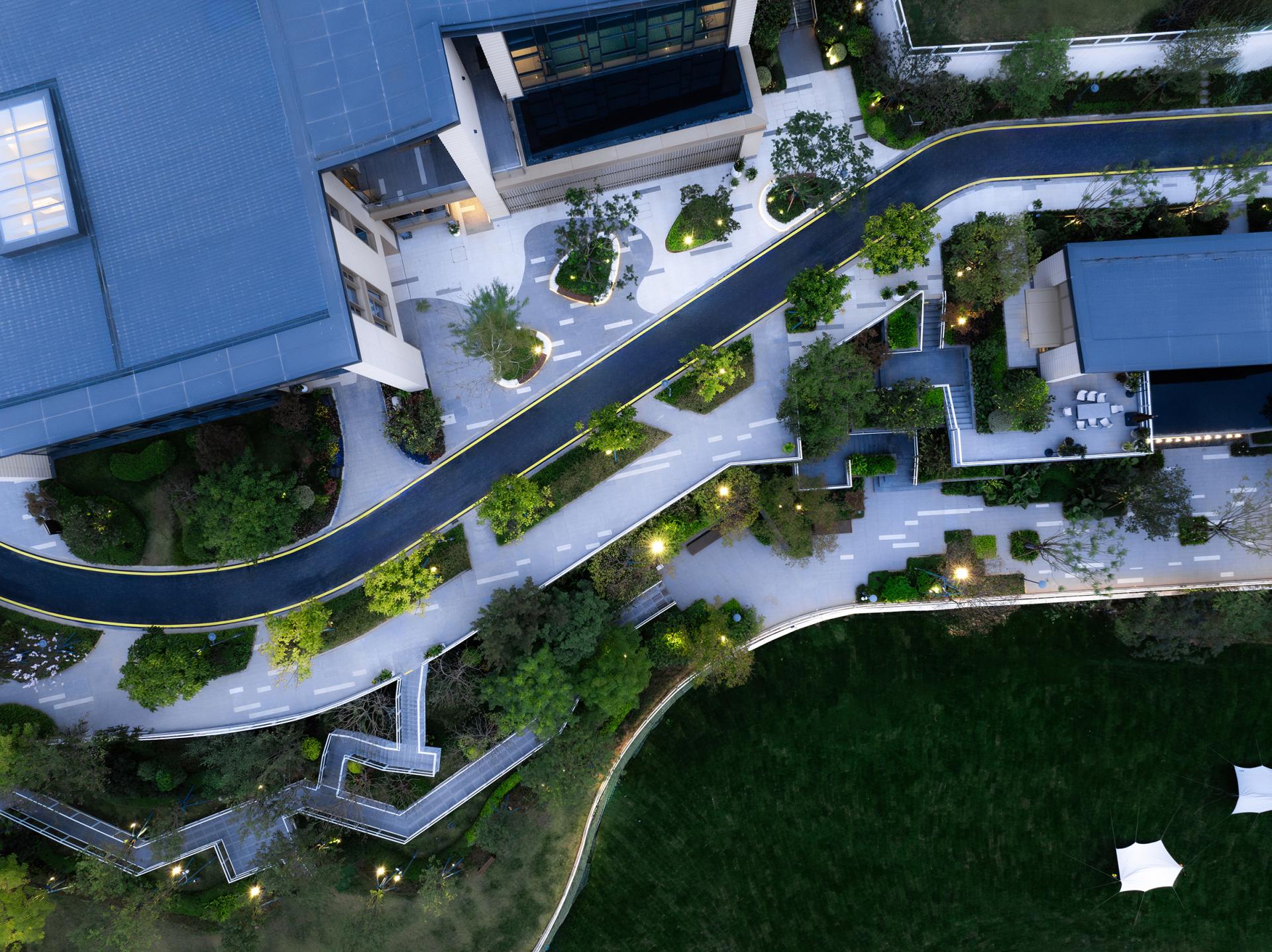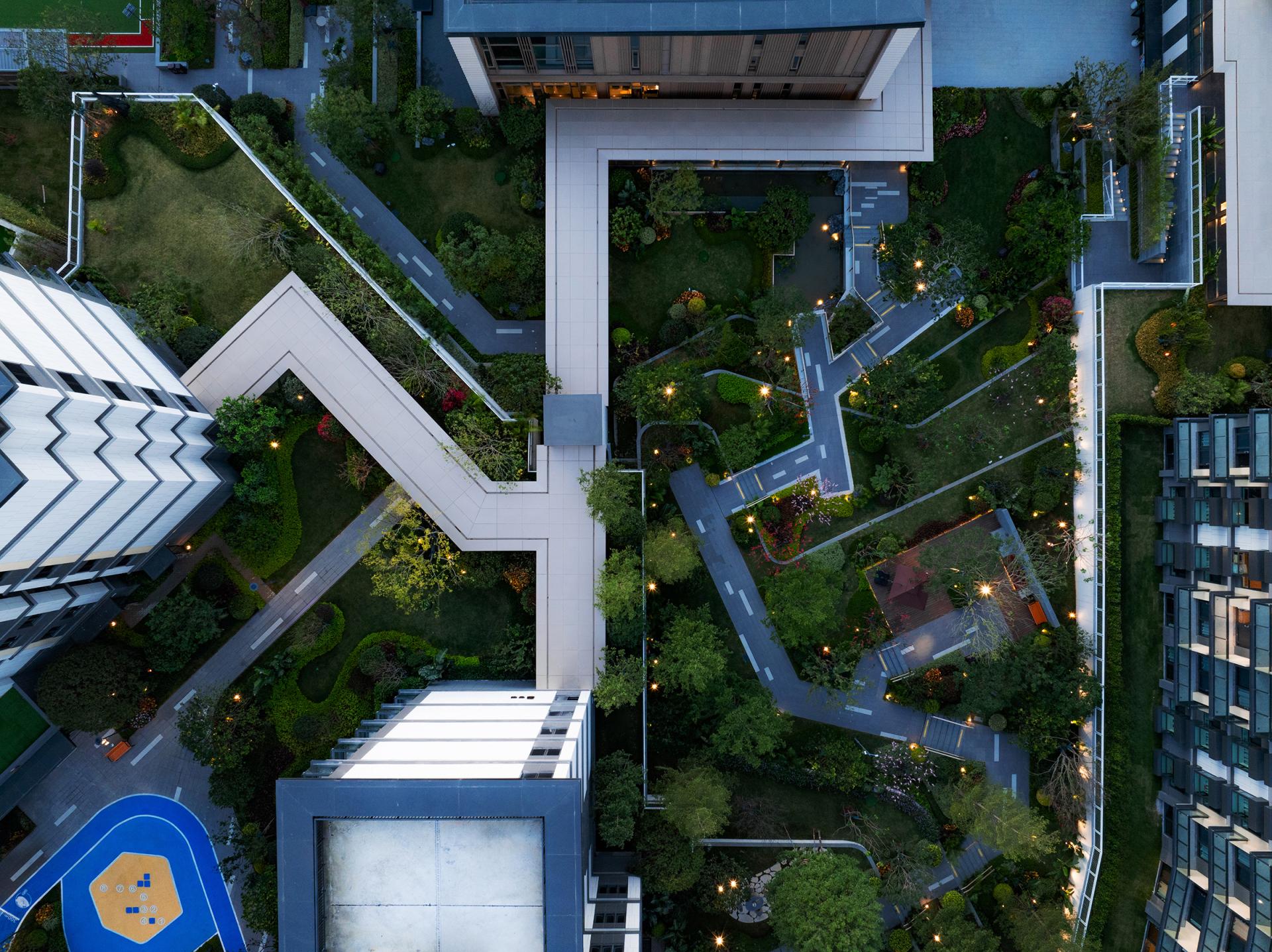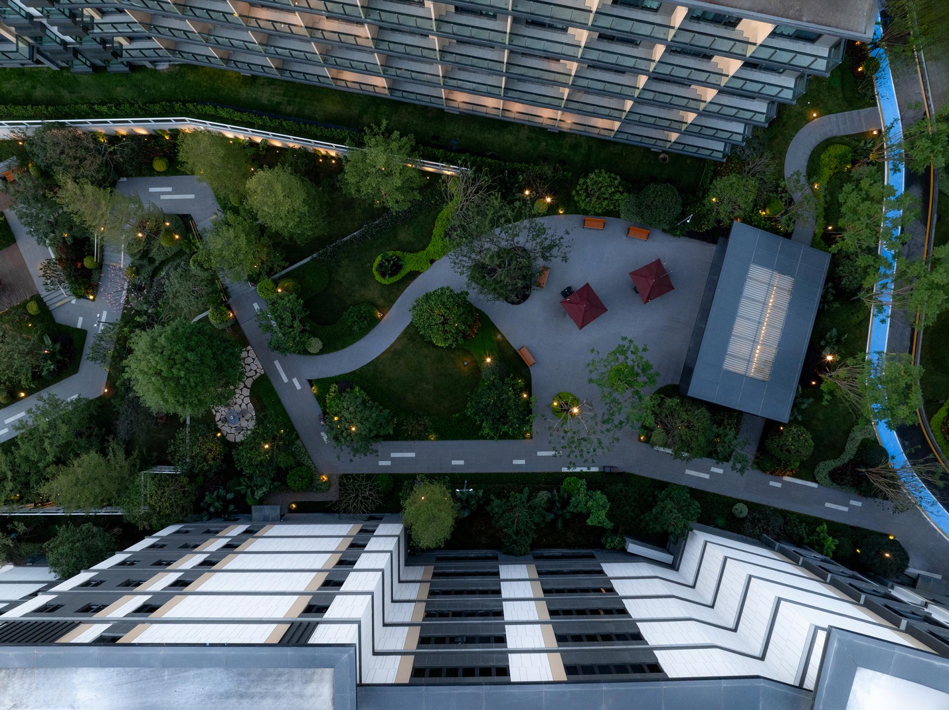 The design concept draws inspiration from Fuzhou’s historic Sanfang Qixiang, extracting the curve elements of the saddle wall and reinterpreting them with modern design language. This approach not only pays tribute to the city’s cultural roots but also reconstructs the courtyard pattern and architectural texture of “Old Fuzhou.” Landscape design echoes the local narrative through the “Walking Nine Blessings” system, which transforms Fuzhou’s cultural heritage—Mountain Blessing, Banyan Blessing, Lane Blessing, Martial Blessing, Opera Blessing, Flower Blessing, Art Blessing, Light Blessing, and Tea Blessing—into nine layers of spatial experience. Each step becomes a cultural pursuit, and every scene evokes emotional resonance, integrating tradition with daily life.