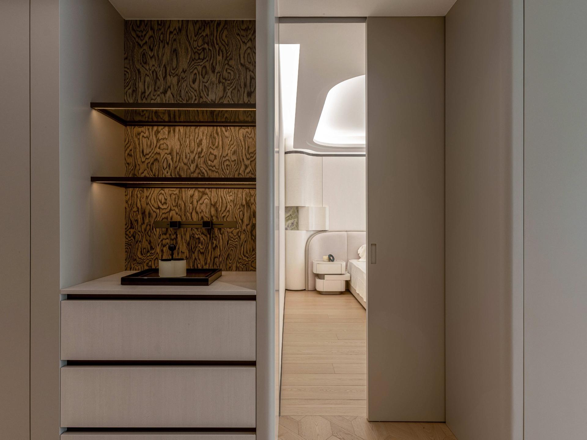 Material choices emphasize natural textures and harmonious tones, complemented by bespoke furniture for nuanced layering. Sustainable solutions incorporate premium eco-friendly materials, such as Spanish KRION surfaces and BLATEM Blaiette coatings, blending aesthetic refinement with environmental responsibility.