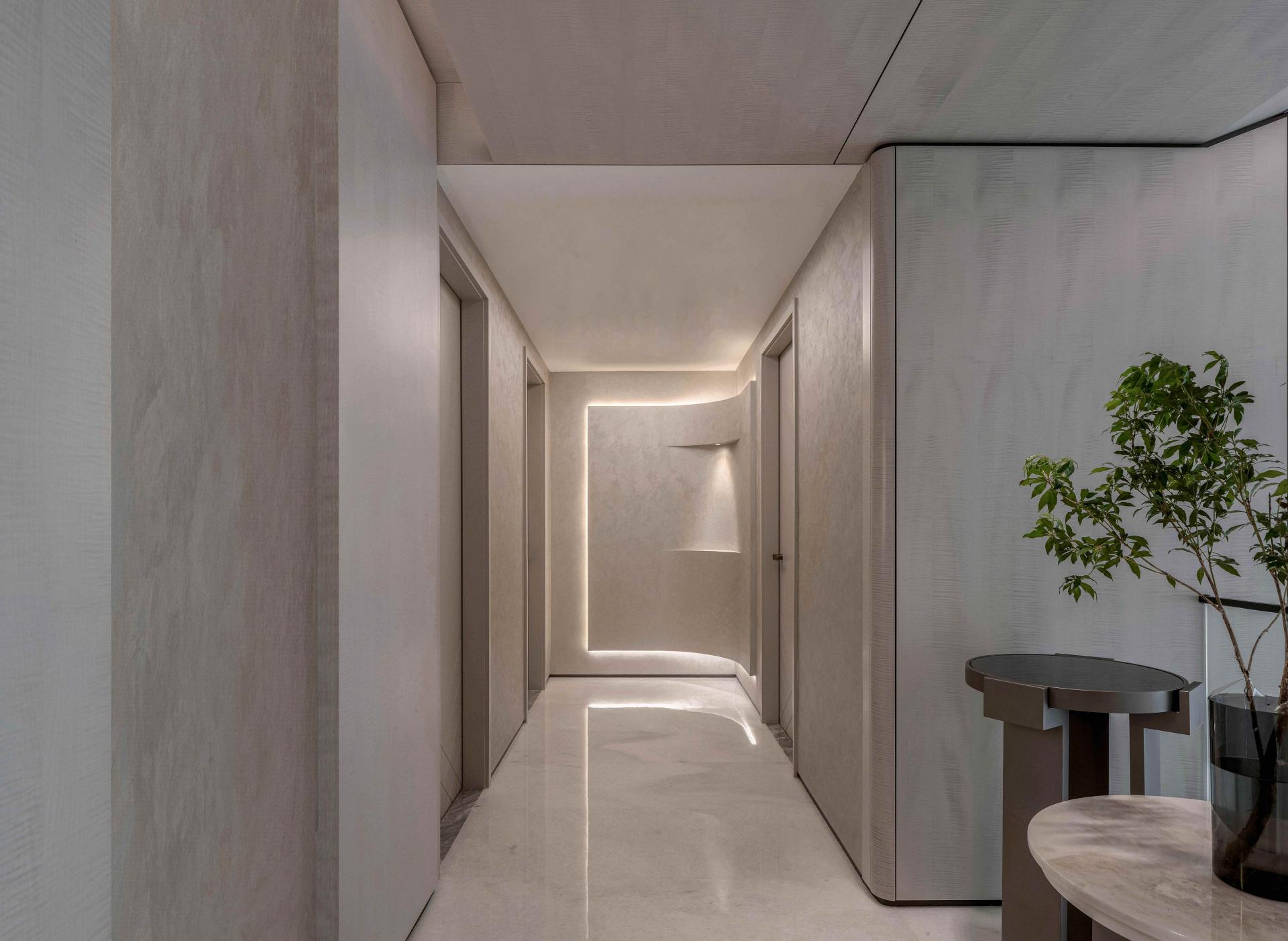 Inspiration emerged from the enduring warmth and openness between the owners, which informed a spatial language of enclosures, embracing forms, and soft contours. These elements shape serene, secure zones that function as temporal sanctuaries, preserving the home’s essence.