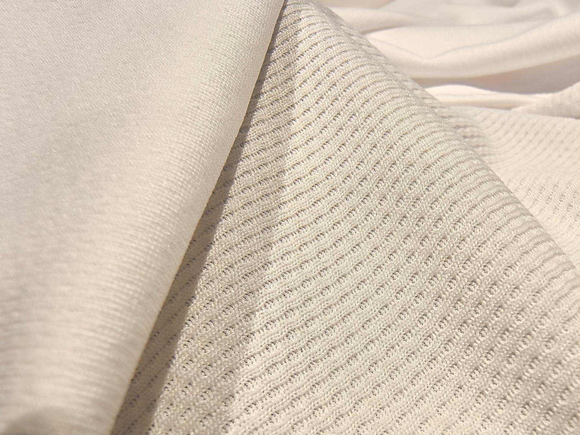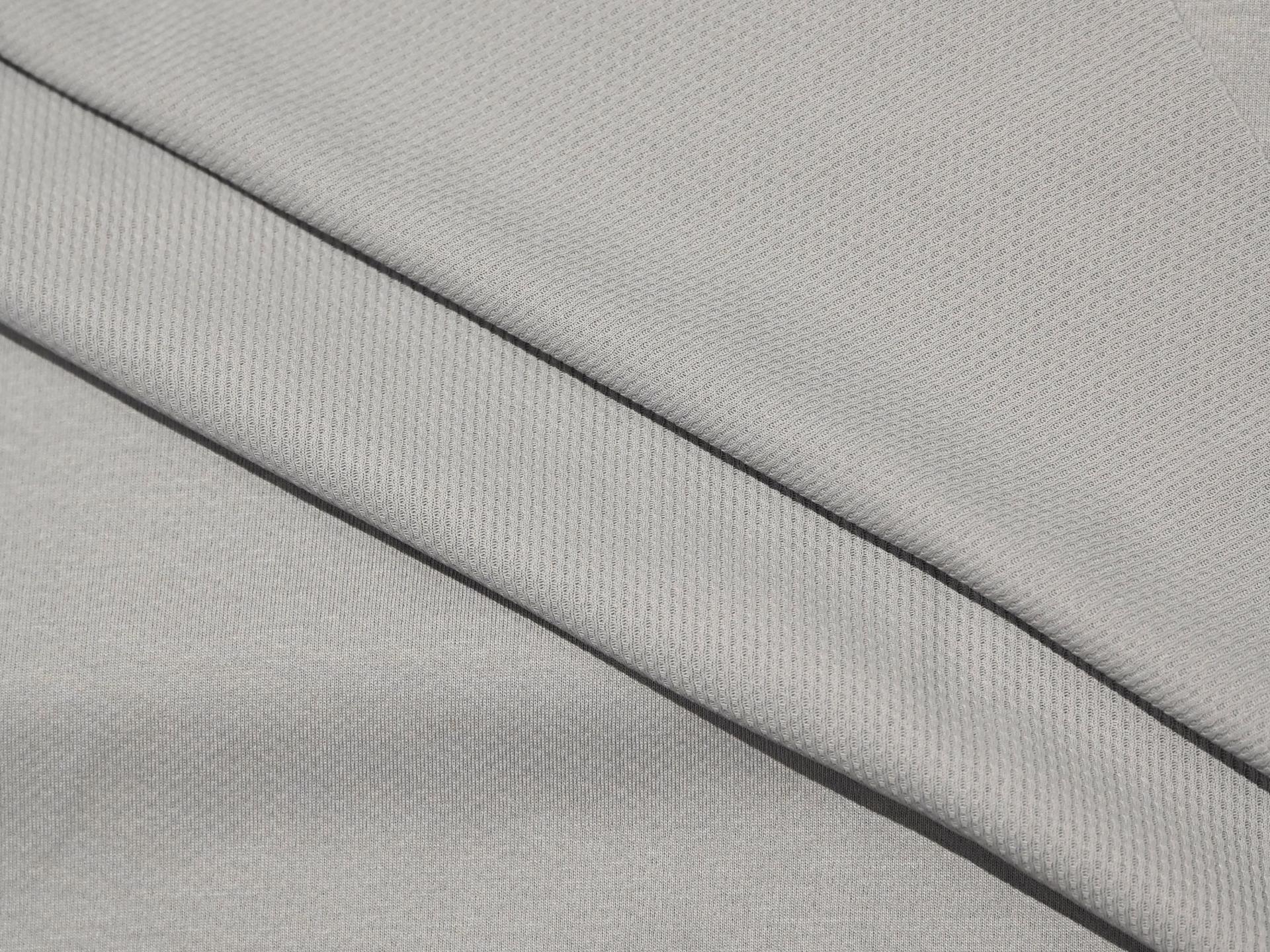 In terms of structural design, the fabric innovates 1-5MM grooves. Such an ingenious design effectively collects sweat and channels it away efficiently. At the same time, optimized yarn combination achieves unidirectional moisture-wicking properties: the hydrophilic outer layer the hydrophobic inner layer work in tandem to create a distinct unidirectional moisture gradient. The yarns varying in moisture regain and fiber fineness are treated with different finishing processes, significantly enhancing sweat management efficiency. In everyday wear, the product forms micro-circulation channels with the skin, complemented by its unidirectional moisture-wicking properties, rapidly transferring moisture to keep the skin dry and comfortable; during intense exercise, the grooves reduce the contact area between the fabric and the skin by over 40%, whose combination with excellent unidirectional moisture-wicking properties efficiently directs and removes sweat to effectively prevent the fabric from clinging to the skin even when the wearer sweats heavily.