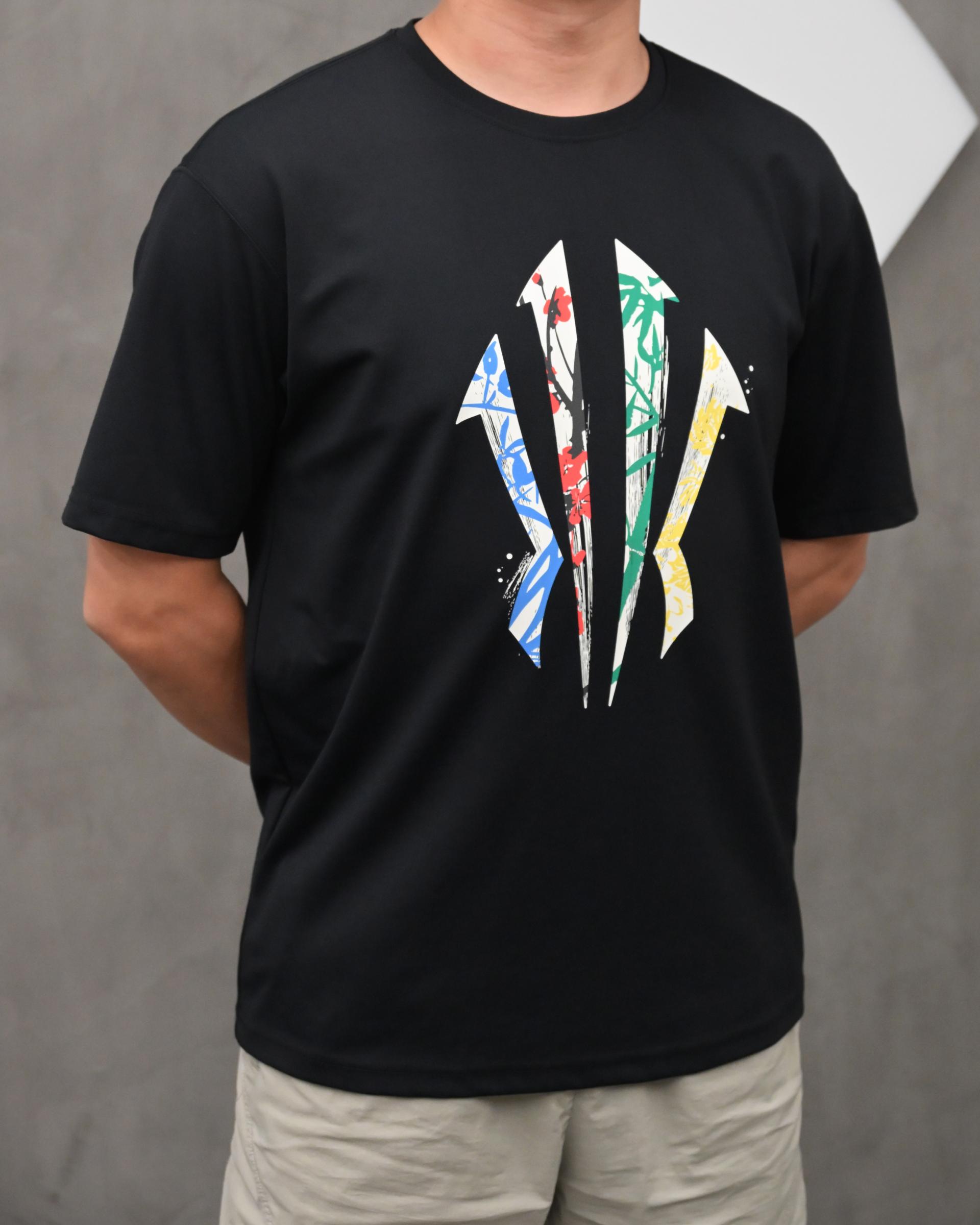 The design draws inspiration from multiple sources. First, Irving is celebrated for his curiosity about and openness to diverse cultures. During his visit to China, he developed a keen interest in Chinese calligraphy and even personally attempted to write his name in Chinese characters using a brush. This gesture reflects his willingness to embrace and explore Chinese culture, naturally evoking the iconic masterpiece of Chinese calligraphy, Lanting Xu (Preface to the Poems Collected from the Orchid Pavilion). Second, the designer integrates Chinese style and American aesthetics by cleverly fusing the “Irving Shield” with the traditional Chinese Four Gentlemen—plum blossoms, orchid, bamboo, and chrysanthemum. The noble spirit embodied by the Four Gentlemen perfectly mirrors Irving’s performance on the court, highly skilled, resilient, and courageous in guiding his team through challenges, while also capturing his identity as a true “artist” of the game. The T-shirt features fabrics enhanced with three advanced technologies: cooling technology for an immediate cooling sensation, 3A antibacterial treatment for the effective prevention of bacterial growth, and UPF 50+ sun protection to shield wearers from intense summer heat. Together, these innovations elevate both the fabric’s quality and the overall wearing experience.