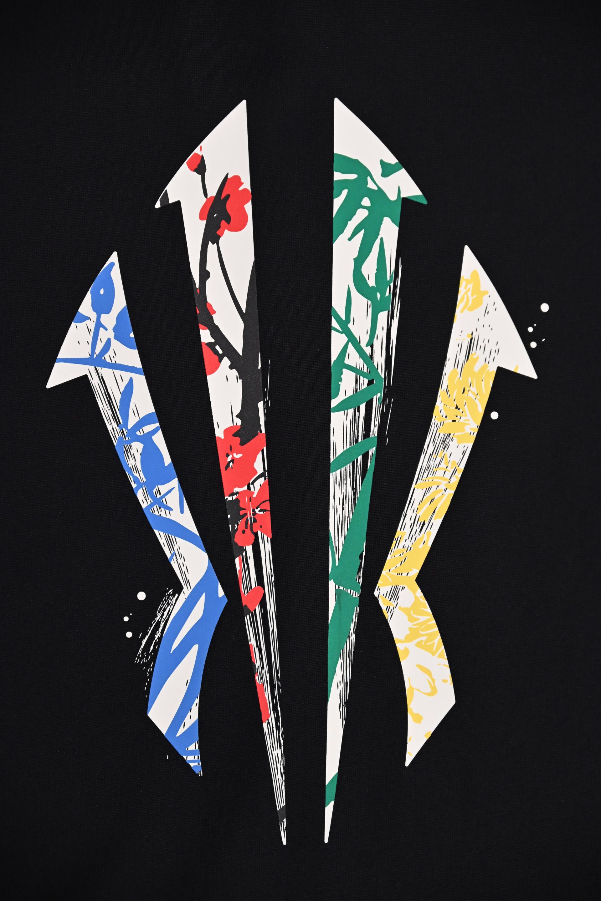The T-shirt integrates Chinese style and American aesthetics by connecting NBA star Kyrie Irving’s personal logo, the “Irving Shield”, with American basketball aesthetics and the traditional Chinese Four Gentlemen—plum blossoms, orchid, bamboo, and chrysanthemum, exemplifying a harmonious fusion of Eastern and Western cultures.
