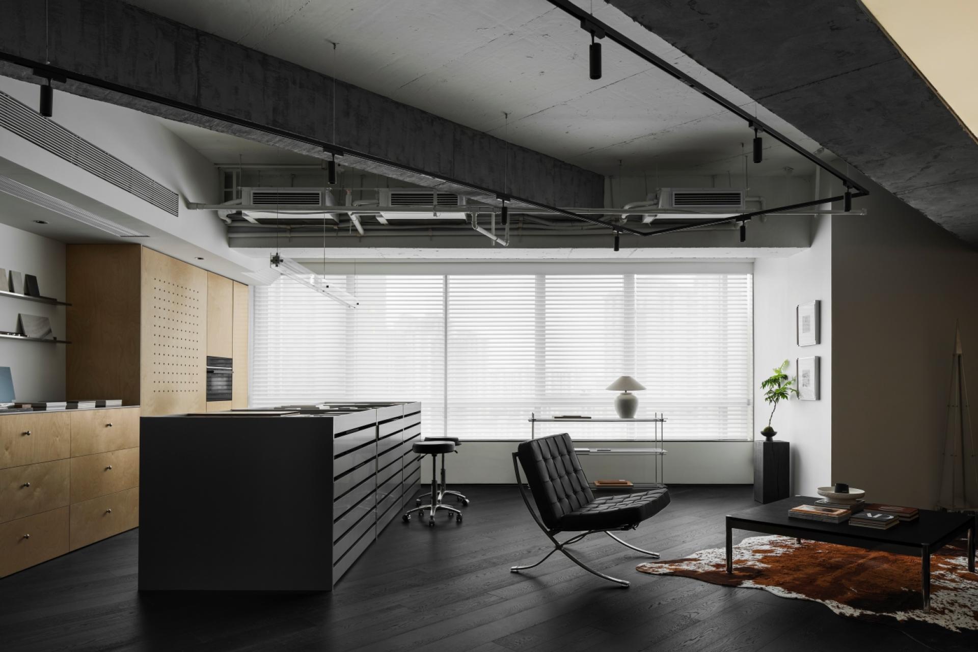 In the dense urban fabric of Shanghai's inner ring, Wuyi Design’s new studio takes the building’s structural skeleton as its starting point, dismantling conventional office zoning. By integrating exhibition, collaboration, and respite into a single continuum, the plan weaves open and semi-enclosed vol-umes that fold into one another, drawing daylight and exterior landscape as deep inside as possible to create a space that can truly breathe. Concrete, stainless steel, and birch-faced plywood form the outermost skin; the colli-sion of their textures delivers a rich interplay for both eye and hand. The result is an office environment that feels unmistakably singular, yet effort-lessly comfortable.