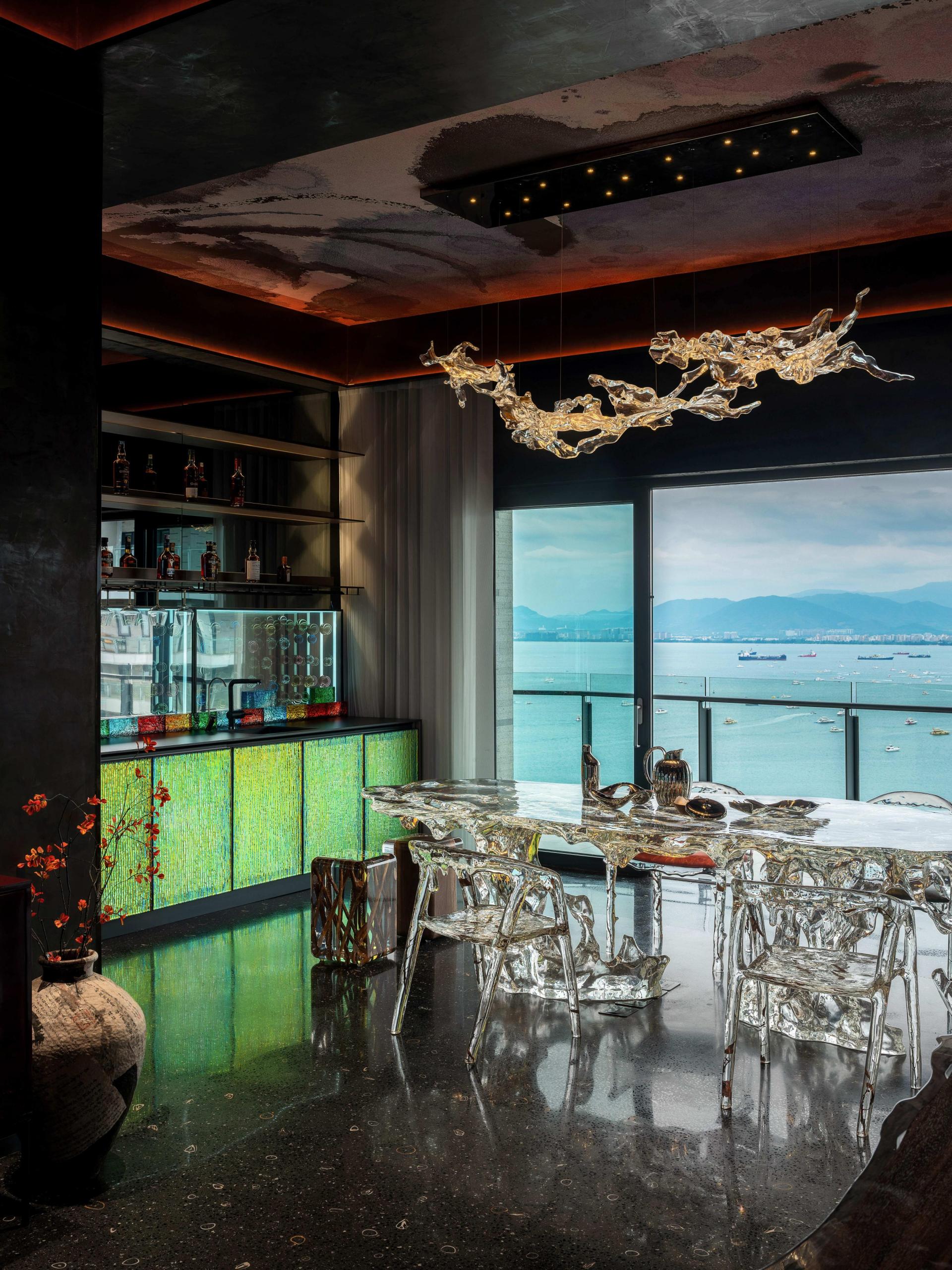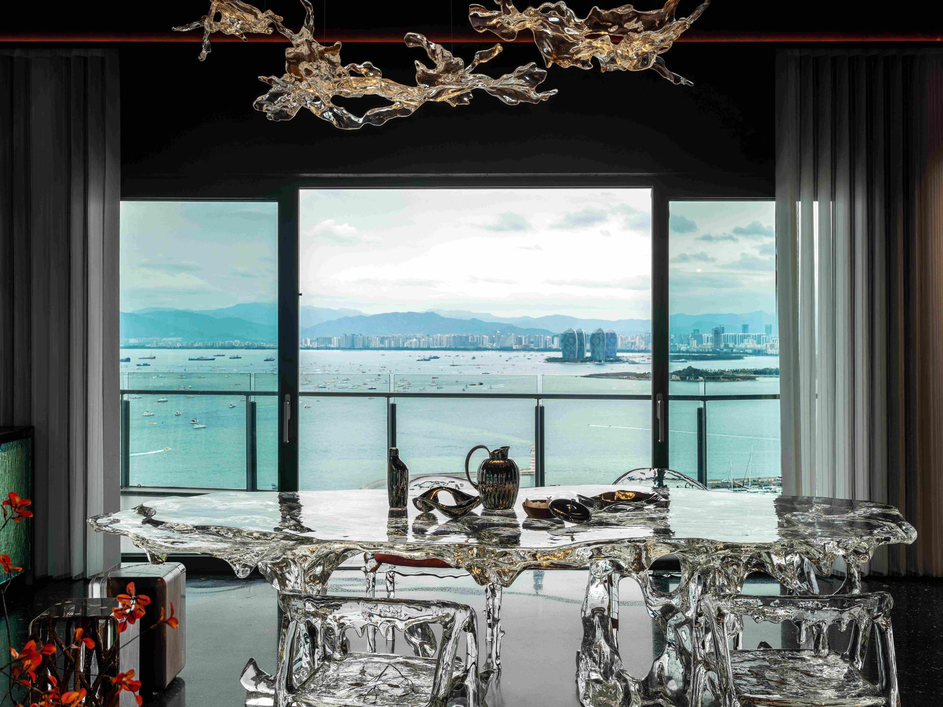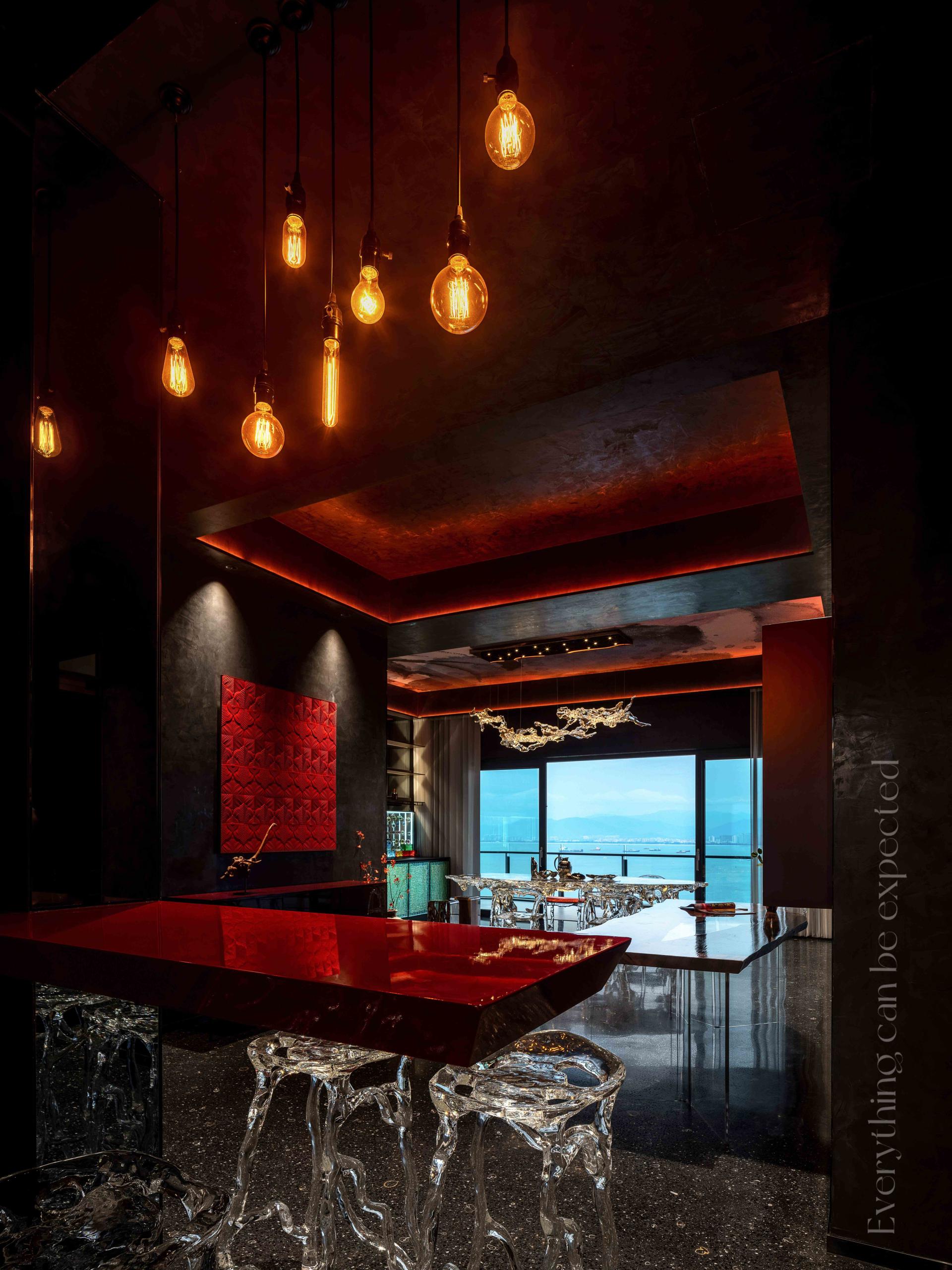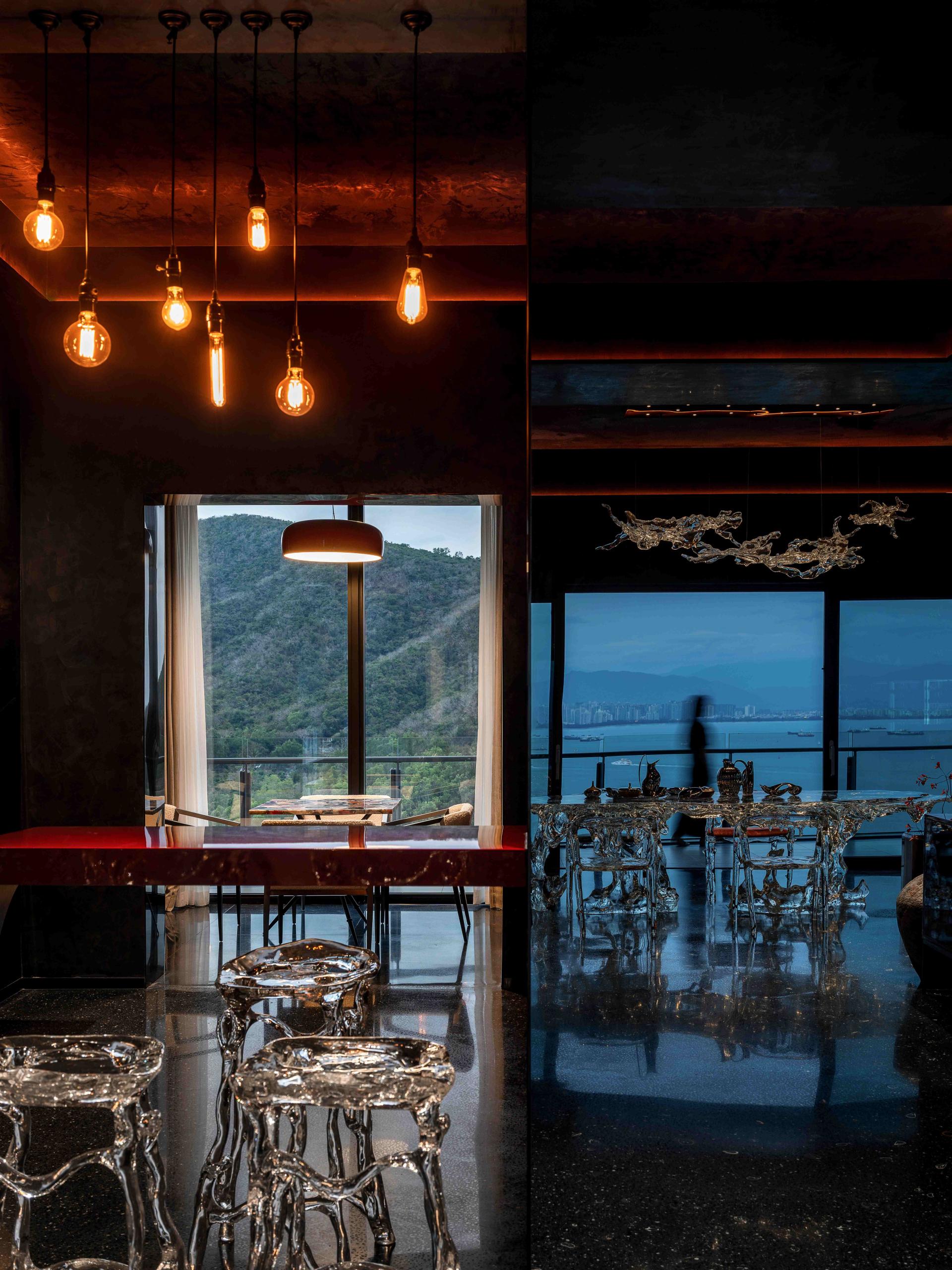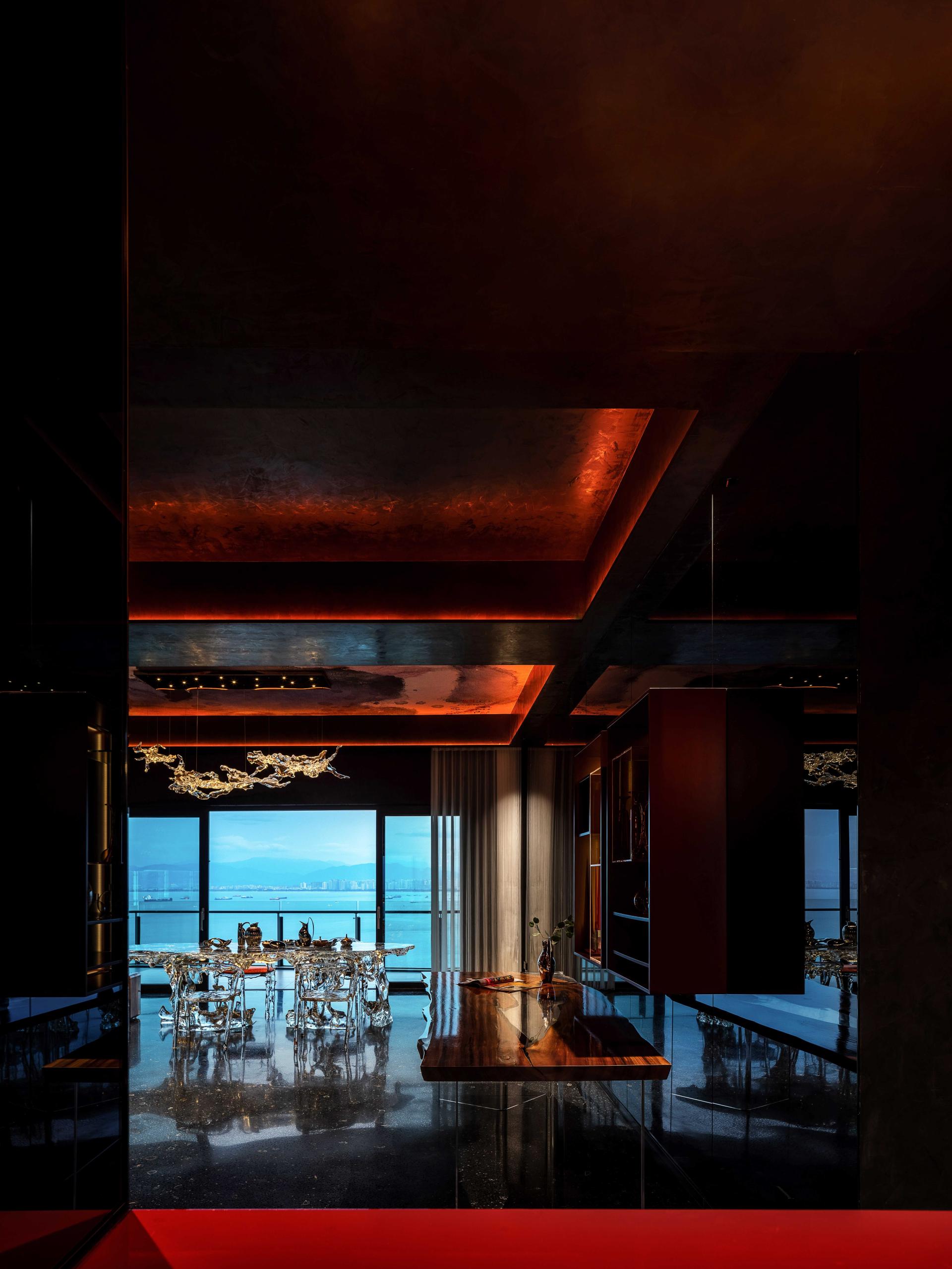 Breaking through tradition in spatial layout, with an open space view without obstruction. Using clever furniture and space to build a sea view focal line, step by step getting closer to the sea, strengthening the visual and emotional bond of the crowd.