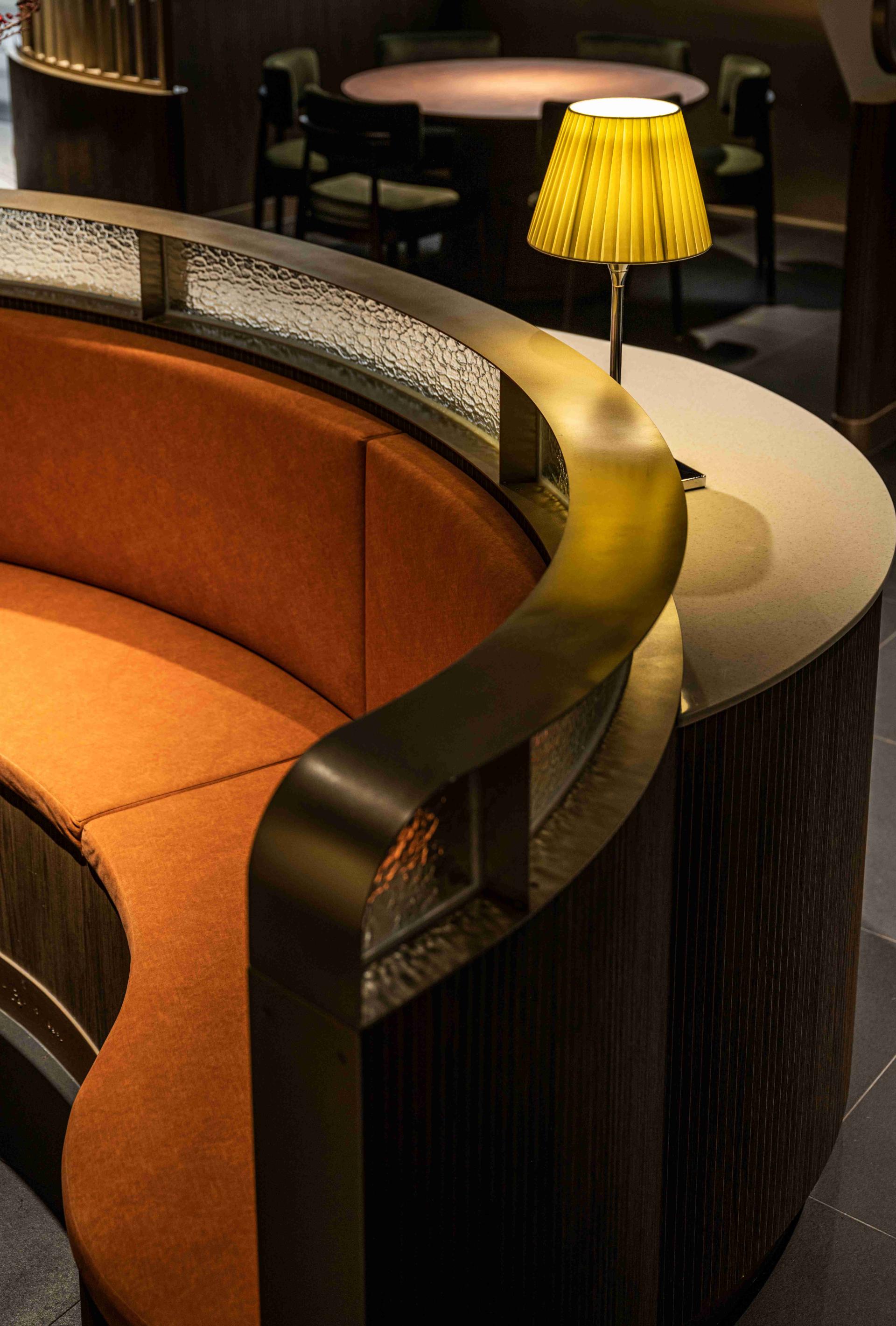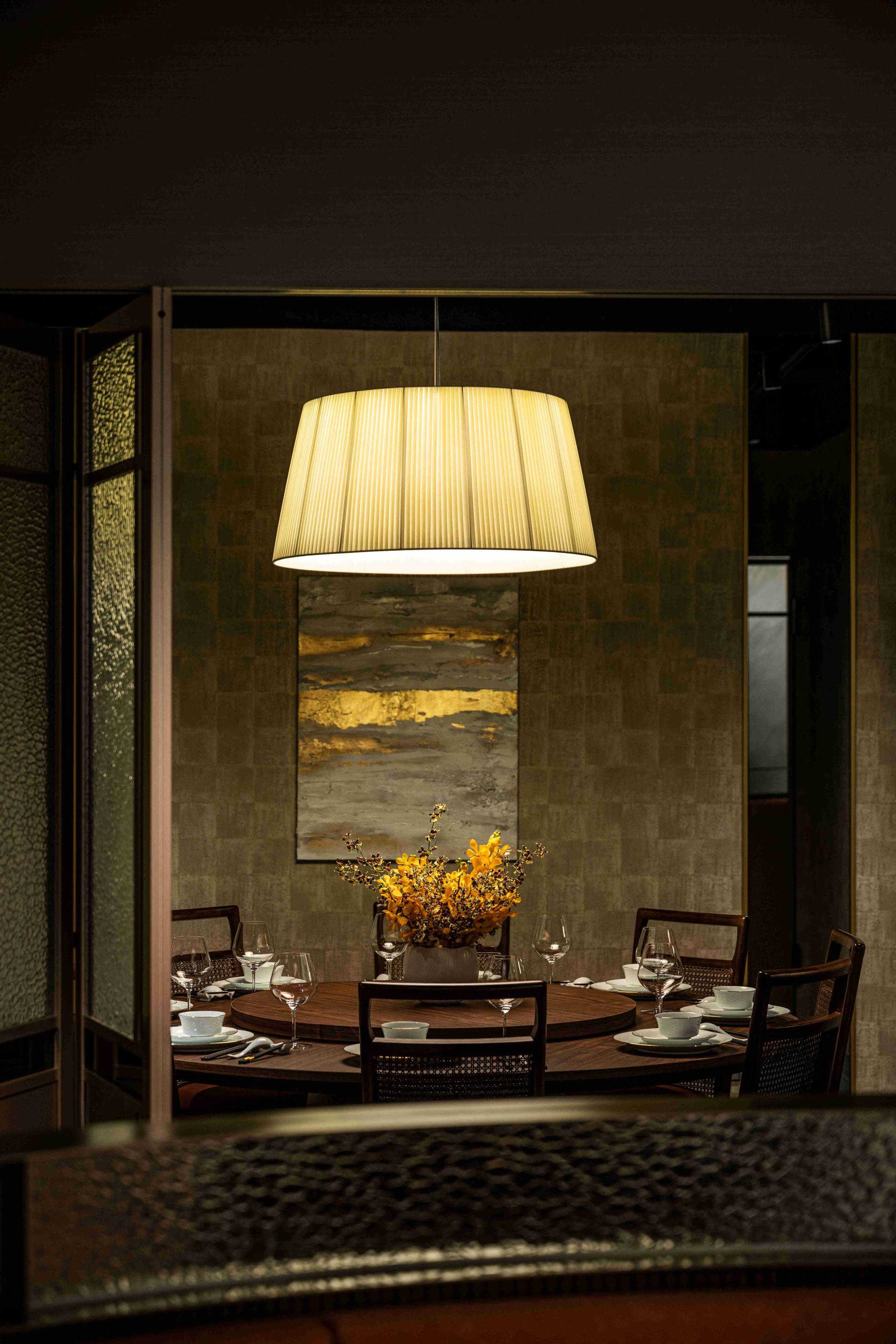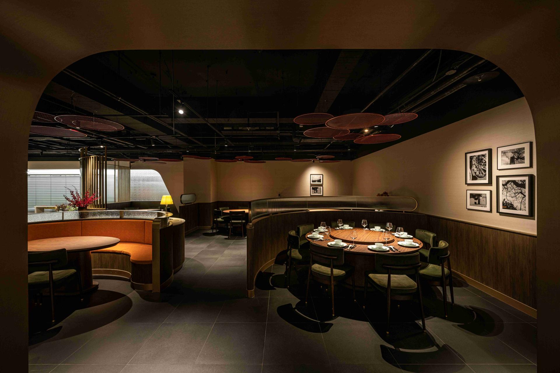 Lighting is paramount in defining the experience. Each table is treated as a stage, with a dedicated downlight focusing attention on the cuisine and company, while ambient lighting remains subdued. This creates intimate pockets of space within the larger open plan, giving every table a sense of privacy and occasion. Shan-Shin successfully redefines its brand, proving that heritage cuisine can thrive in a high-fashion, design-forward environment.